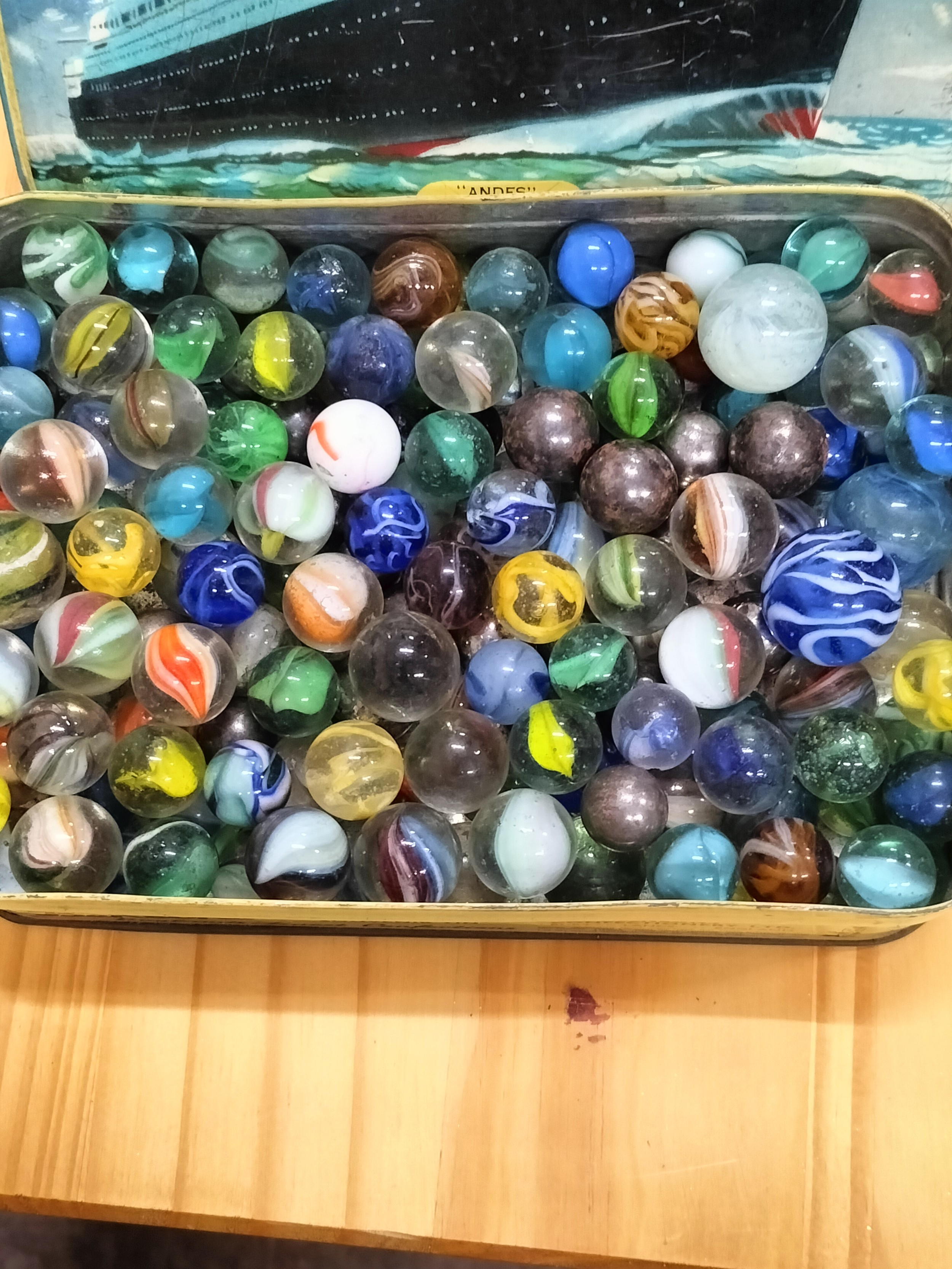 Vintage Bensons Biscuit tin containing Marbles