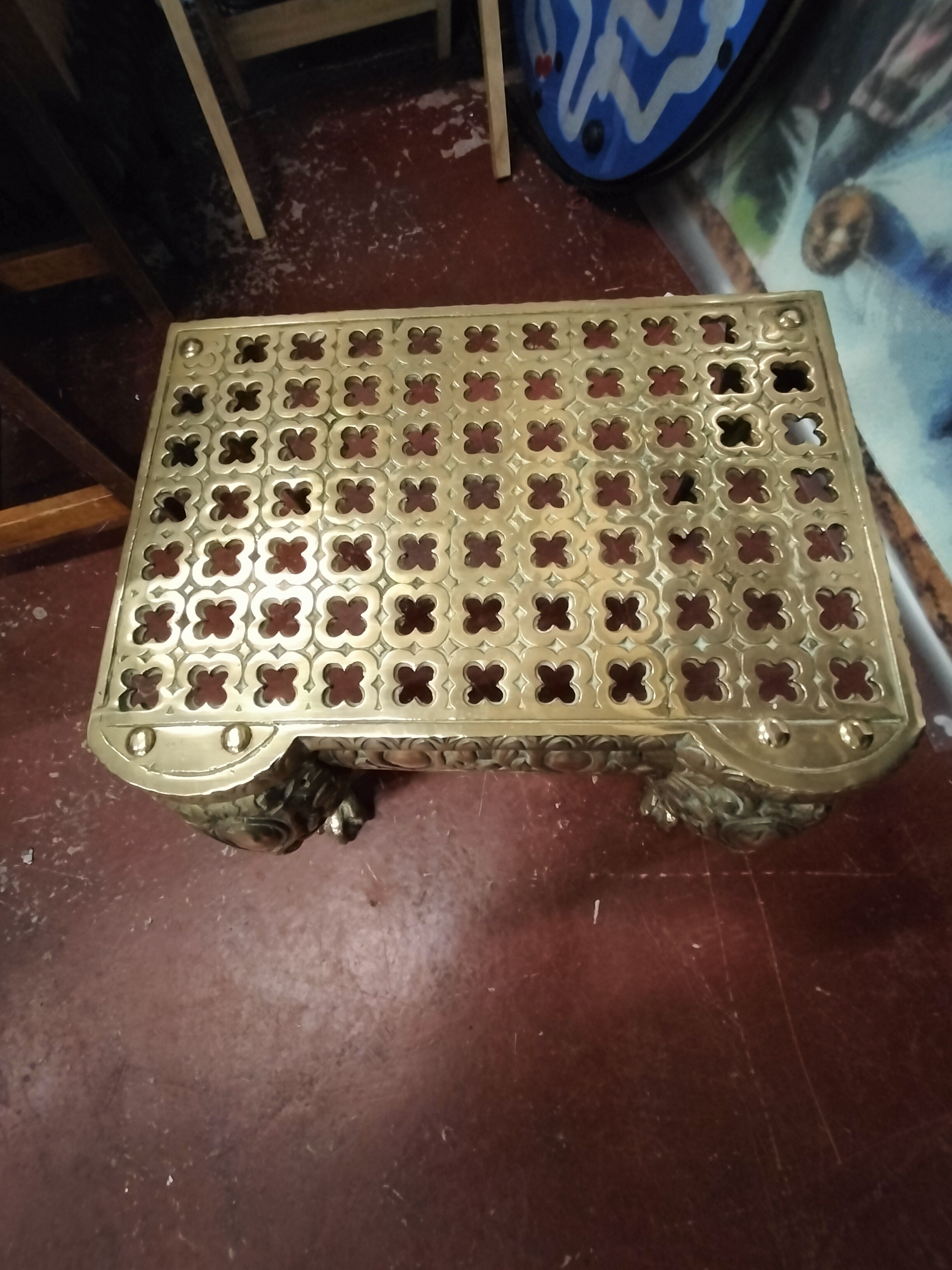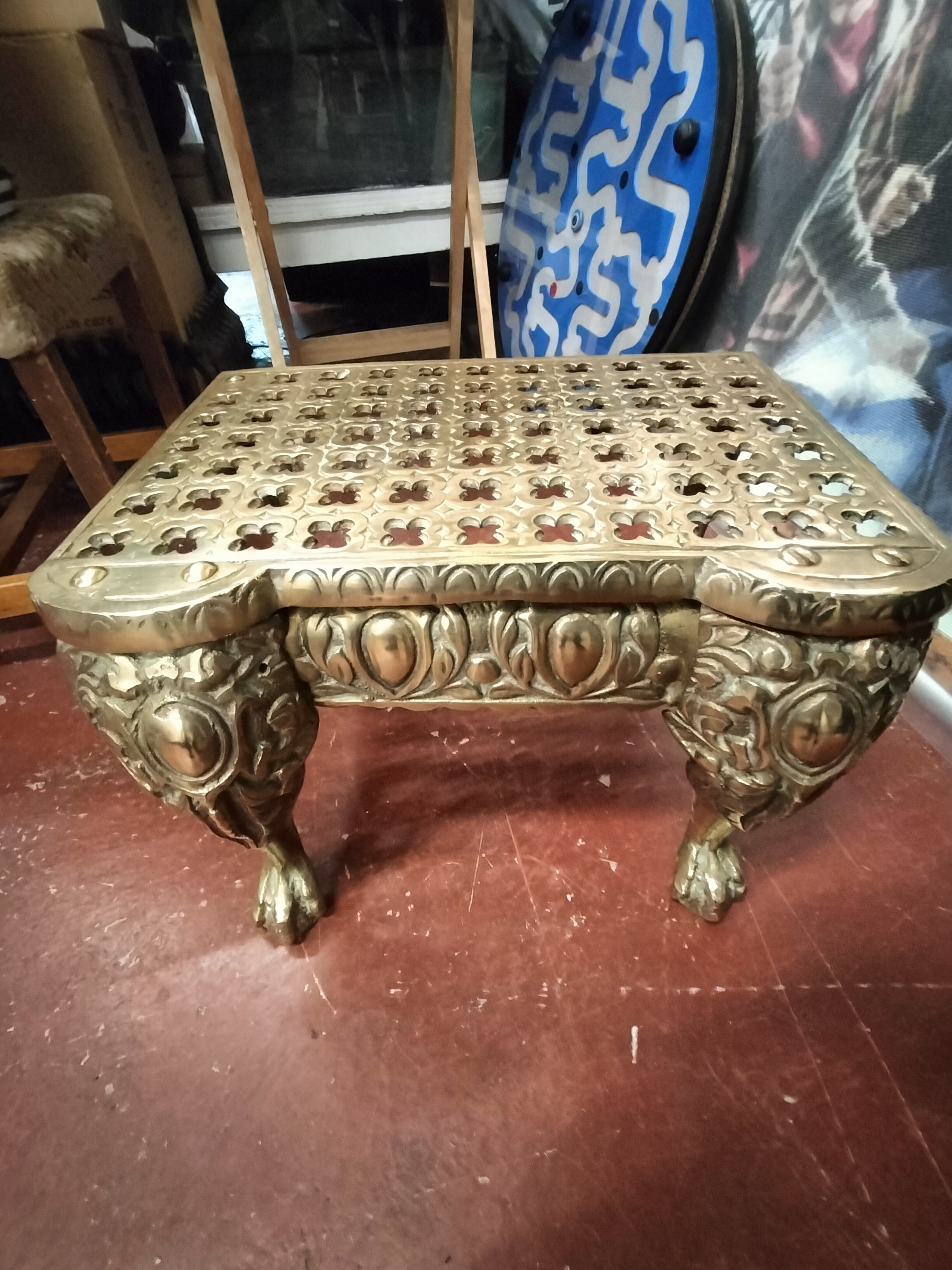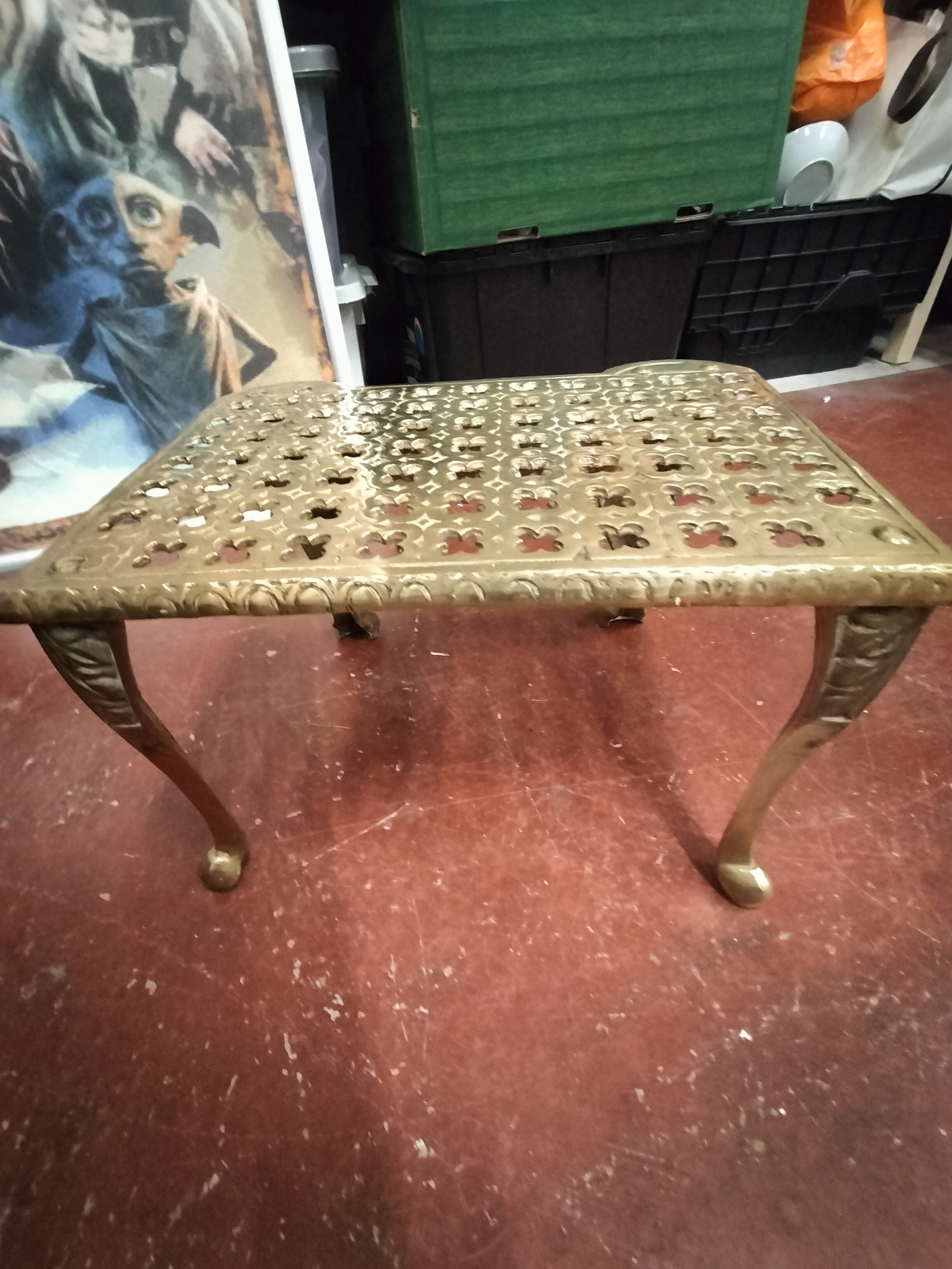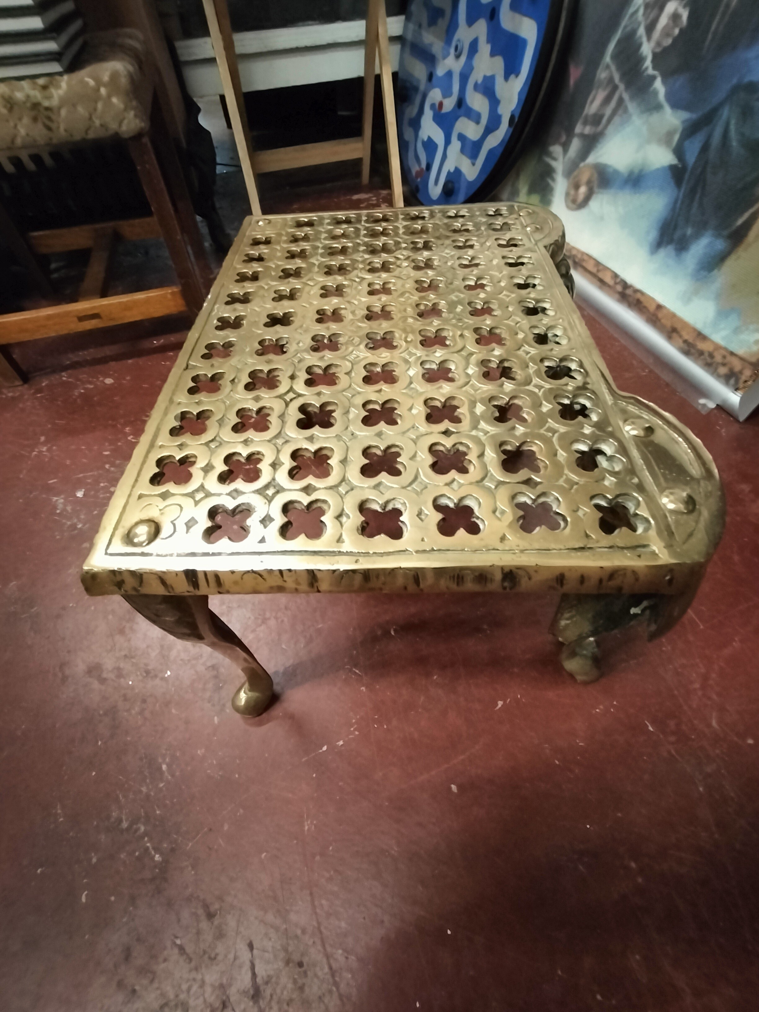 Large Heavy Brass Vintage Trivet with Ball and Claw Feet