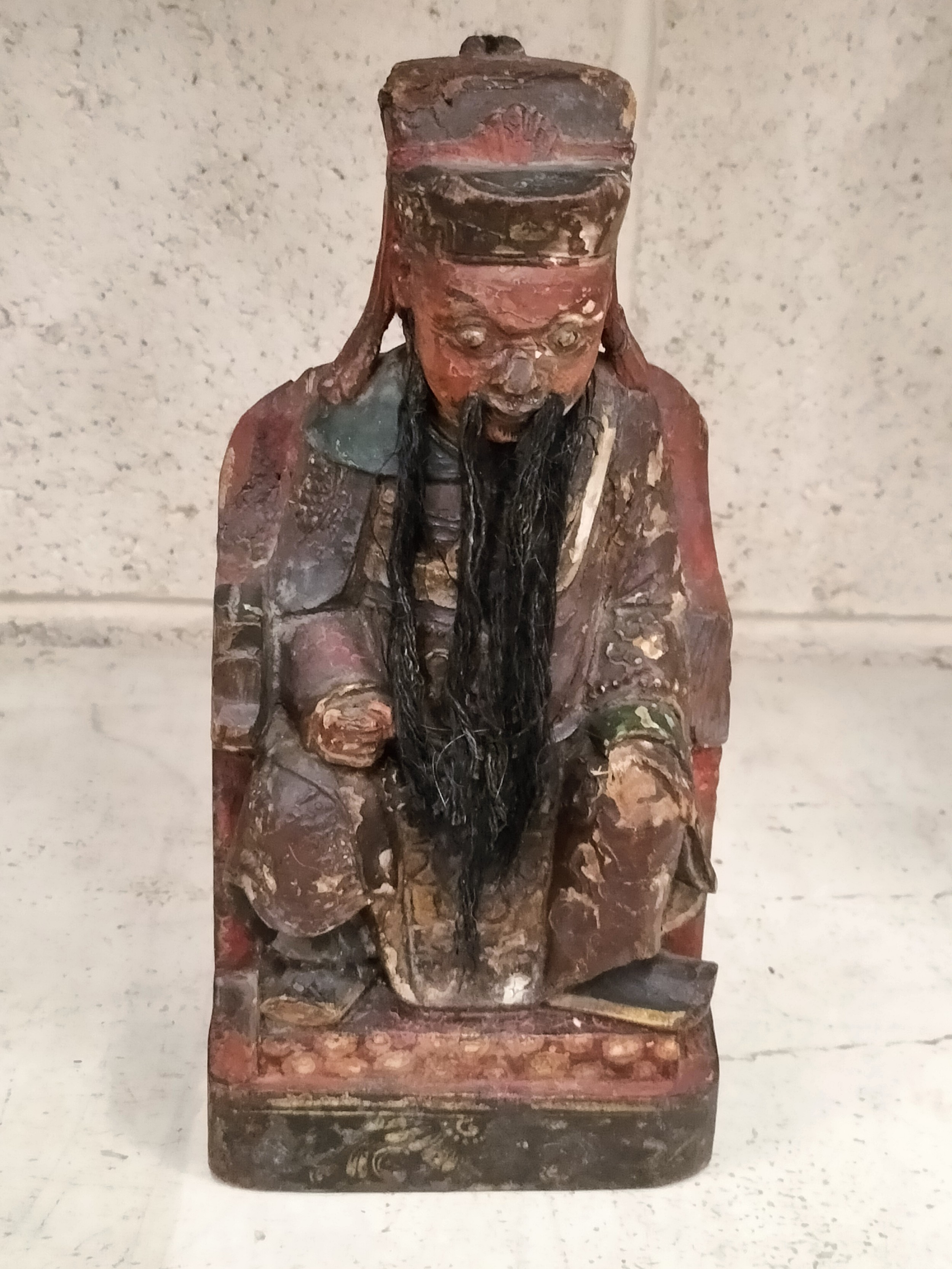 Antique Chinese carved wooden Statue of Tudigong The God Of The Land