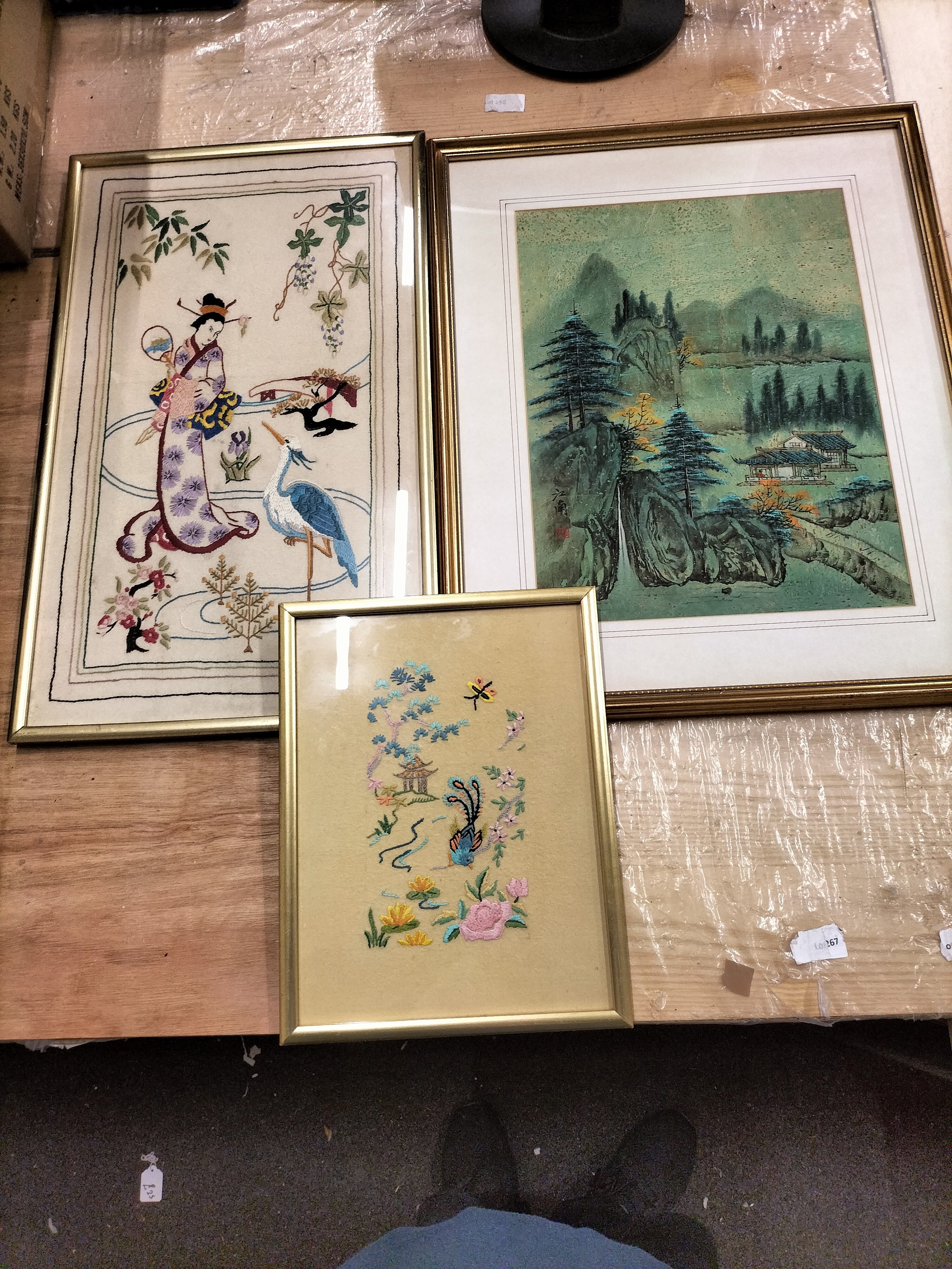 3 Assorted Pictures including Needlework