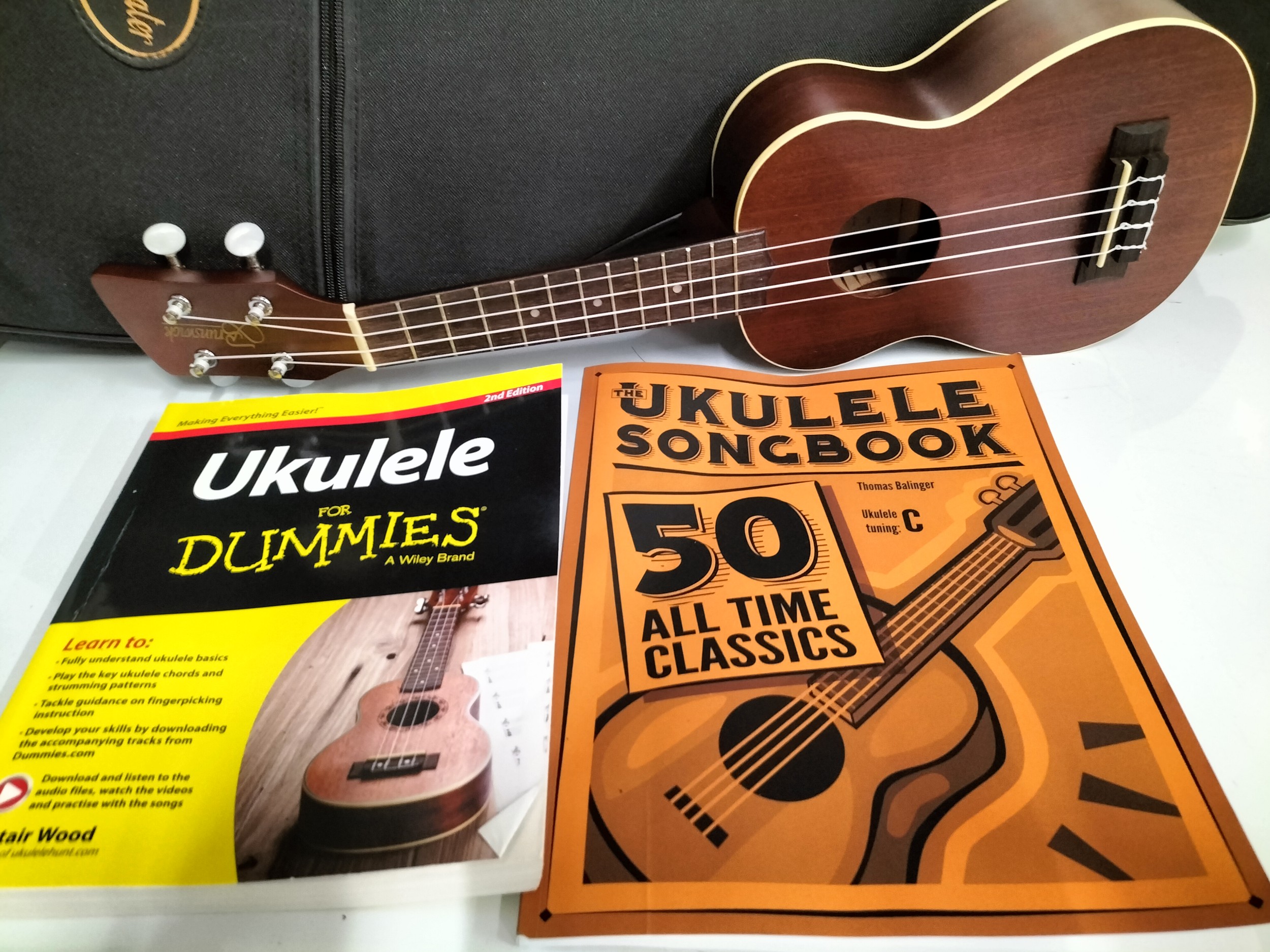Ukulele in Bag with Music Books