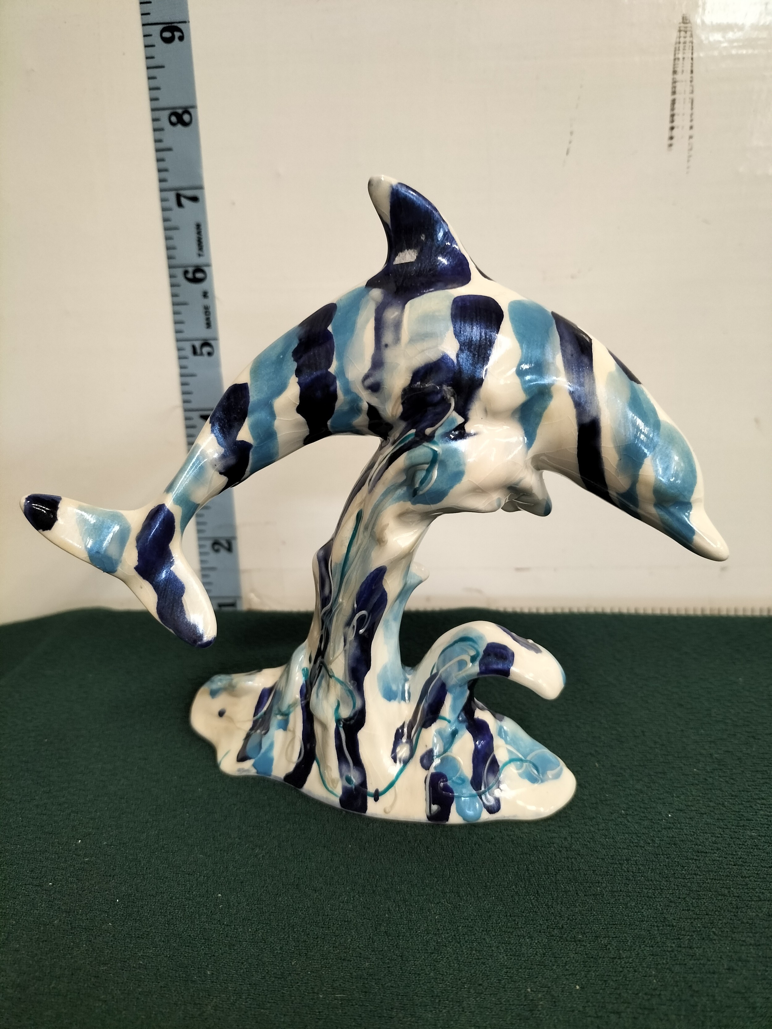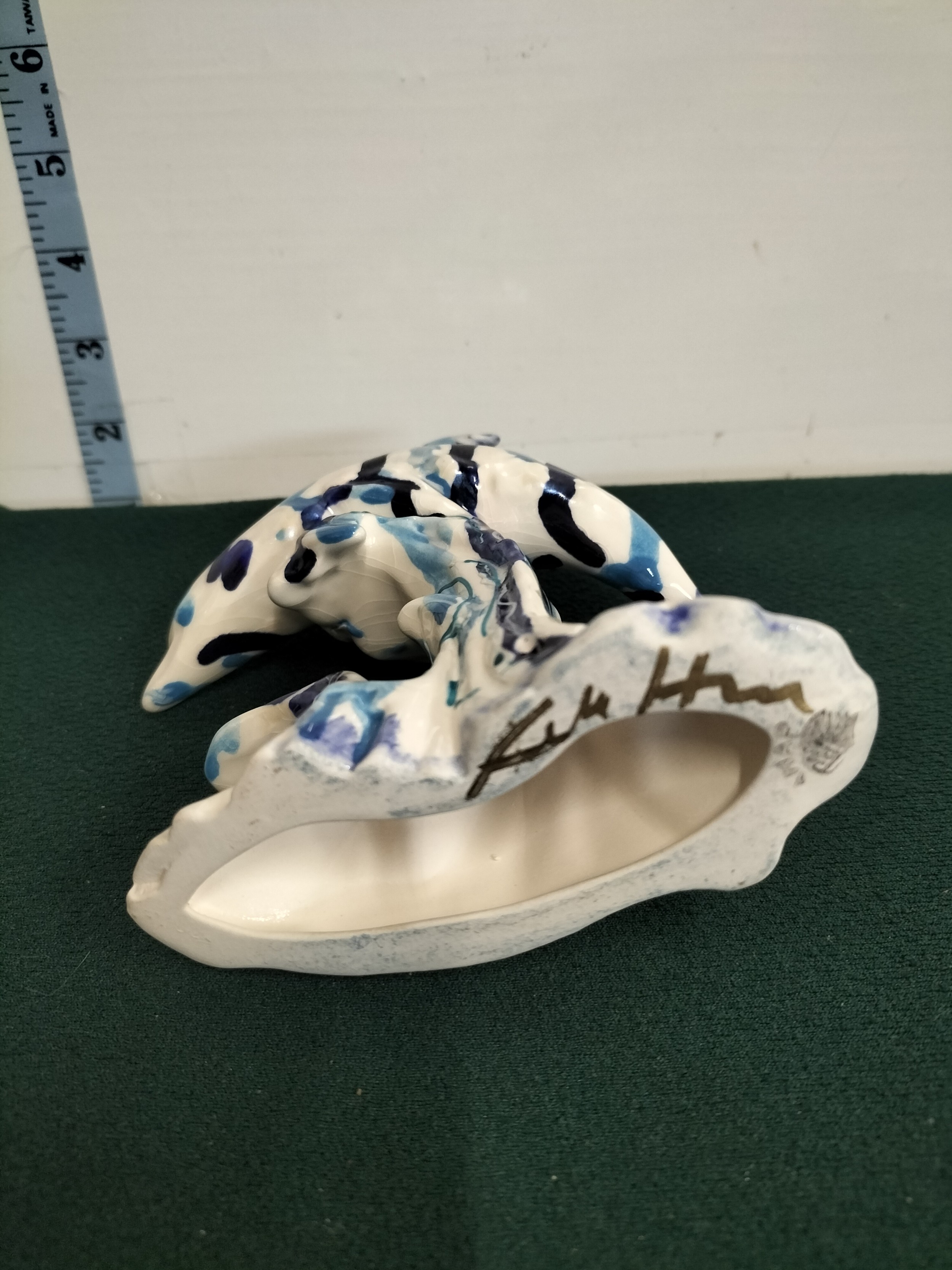 Anita Harris Blue and White Dolphins Signed