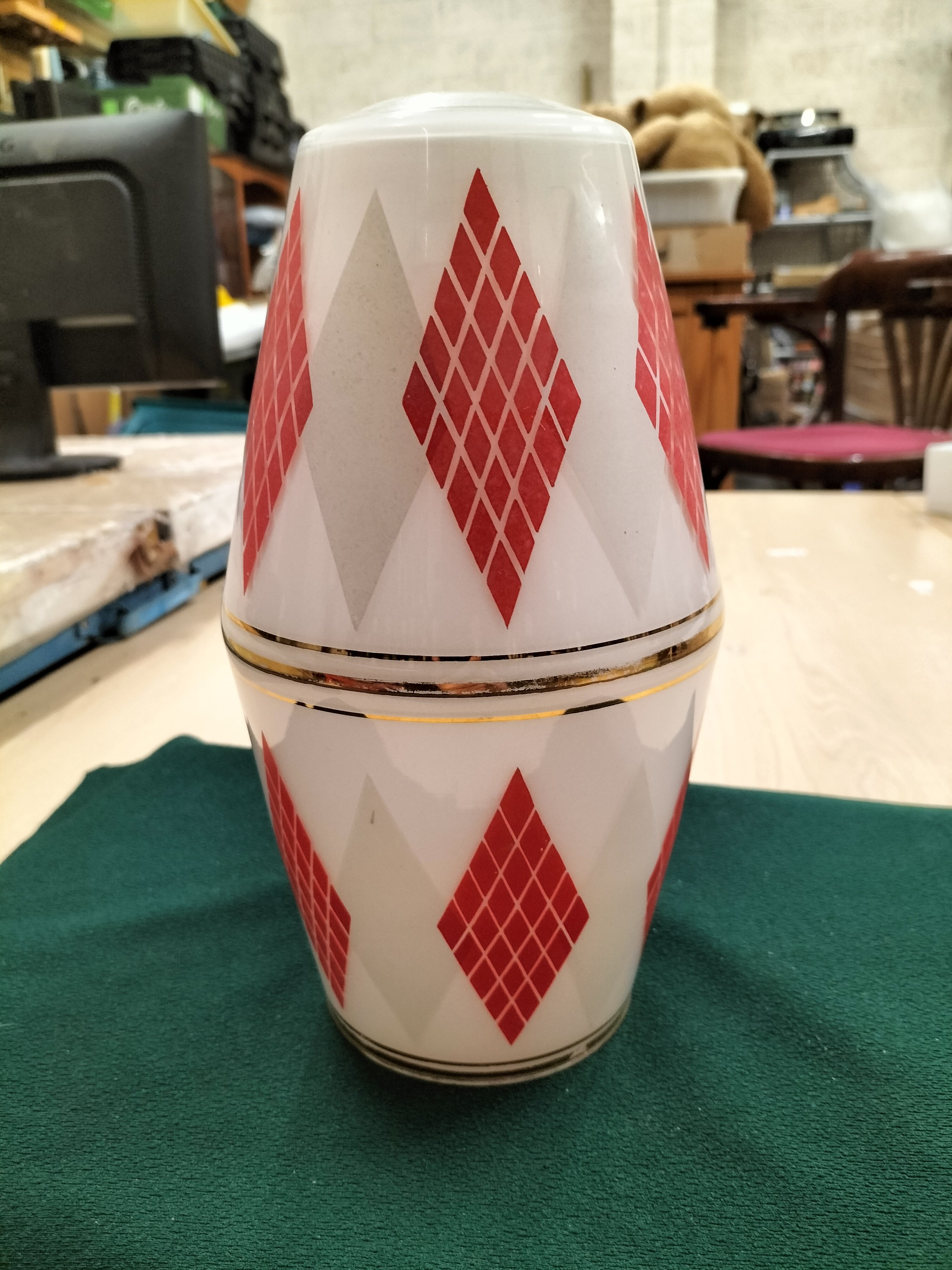 Mid Century White and red Ceiling light Shade 1960’s
