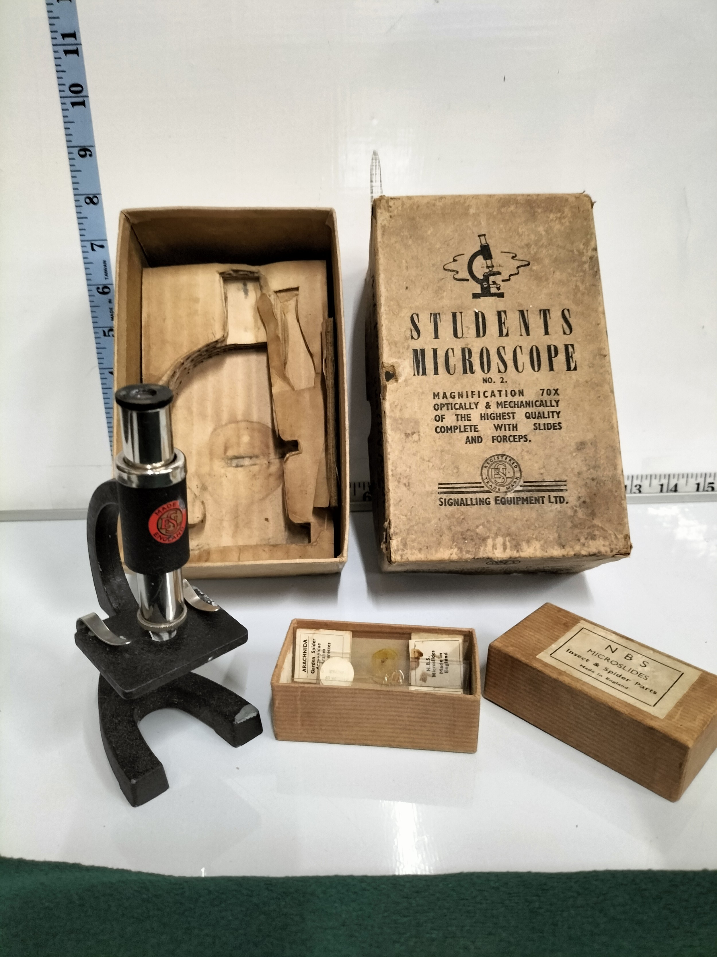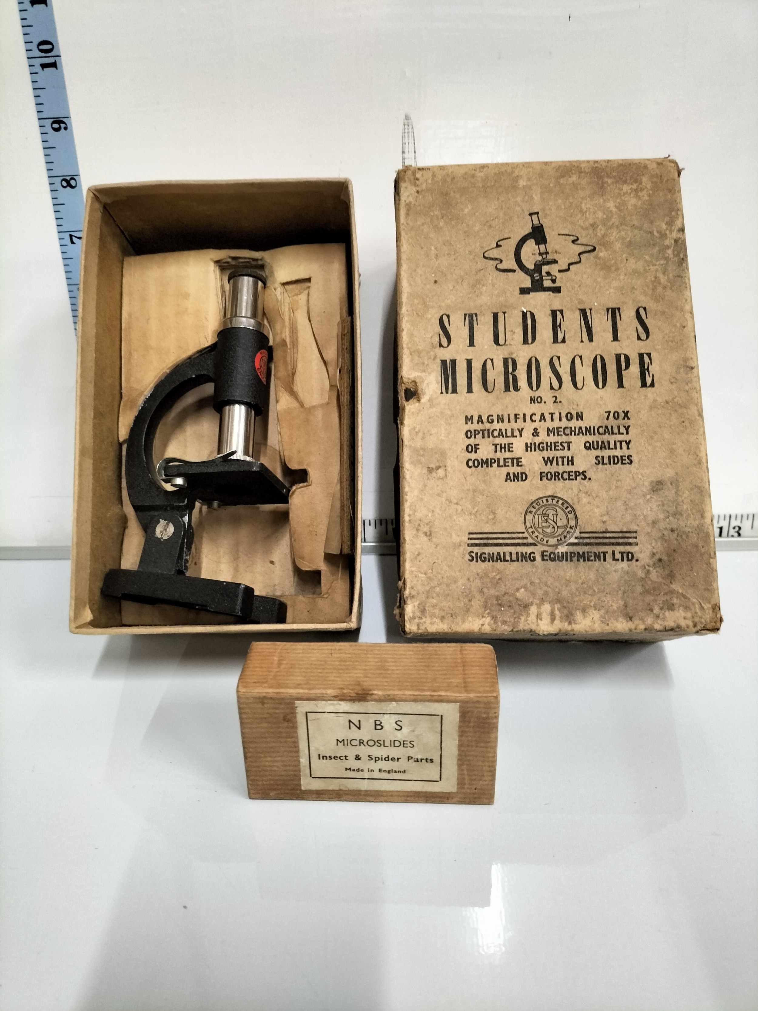 Vintage Students Microscope with slides Boxed