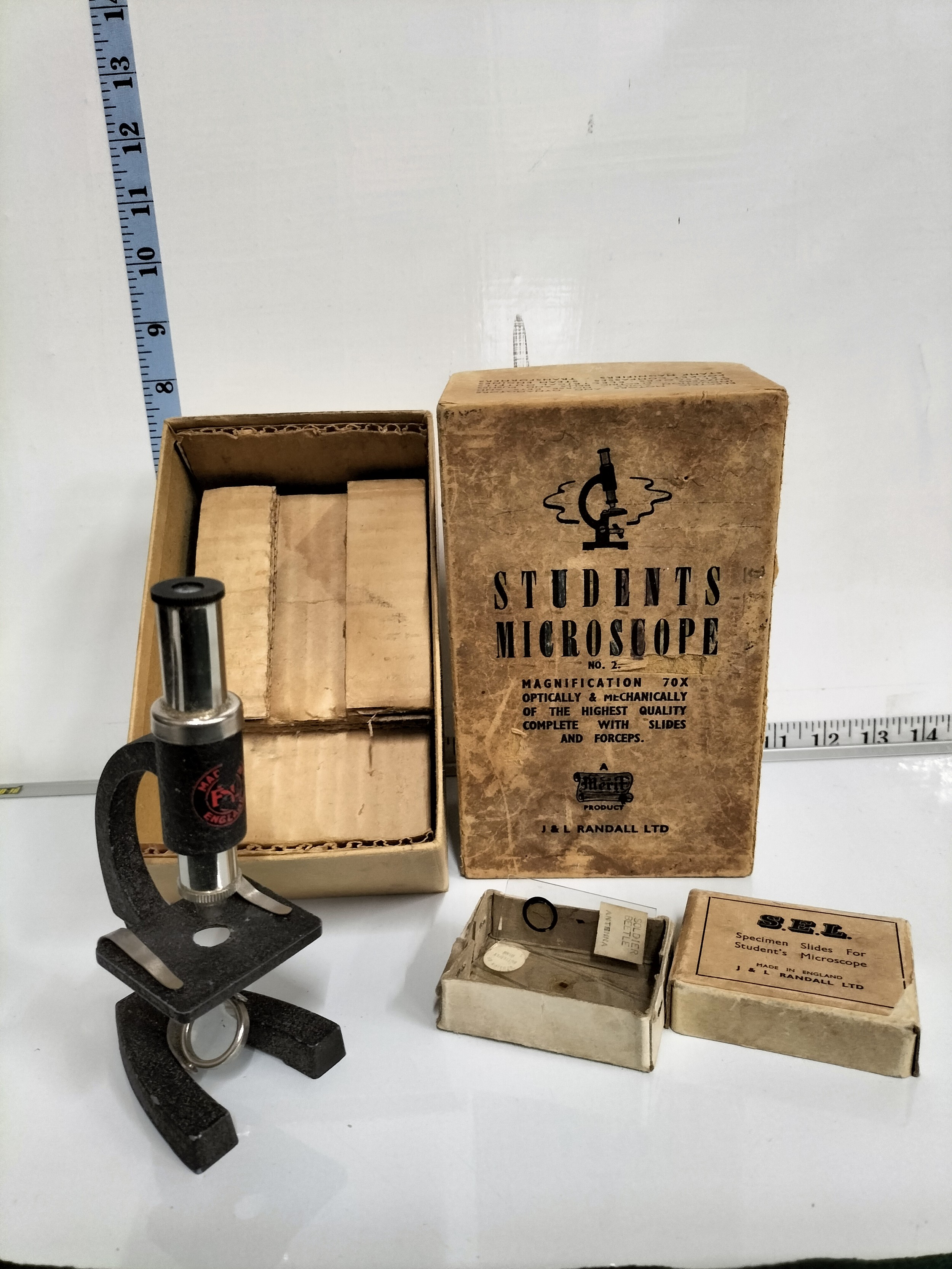 Vintage Students Microscope with slides Boxed