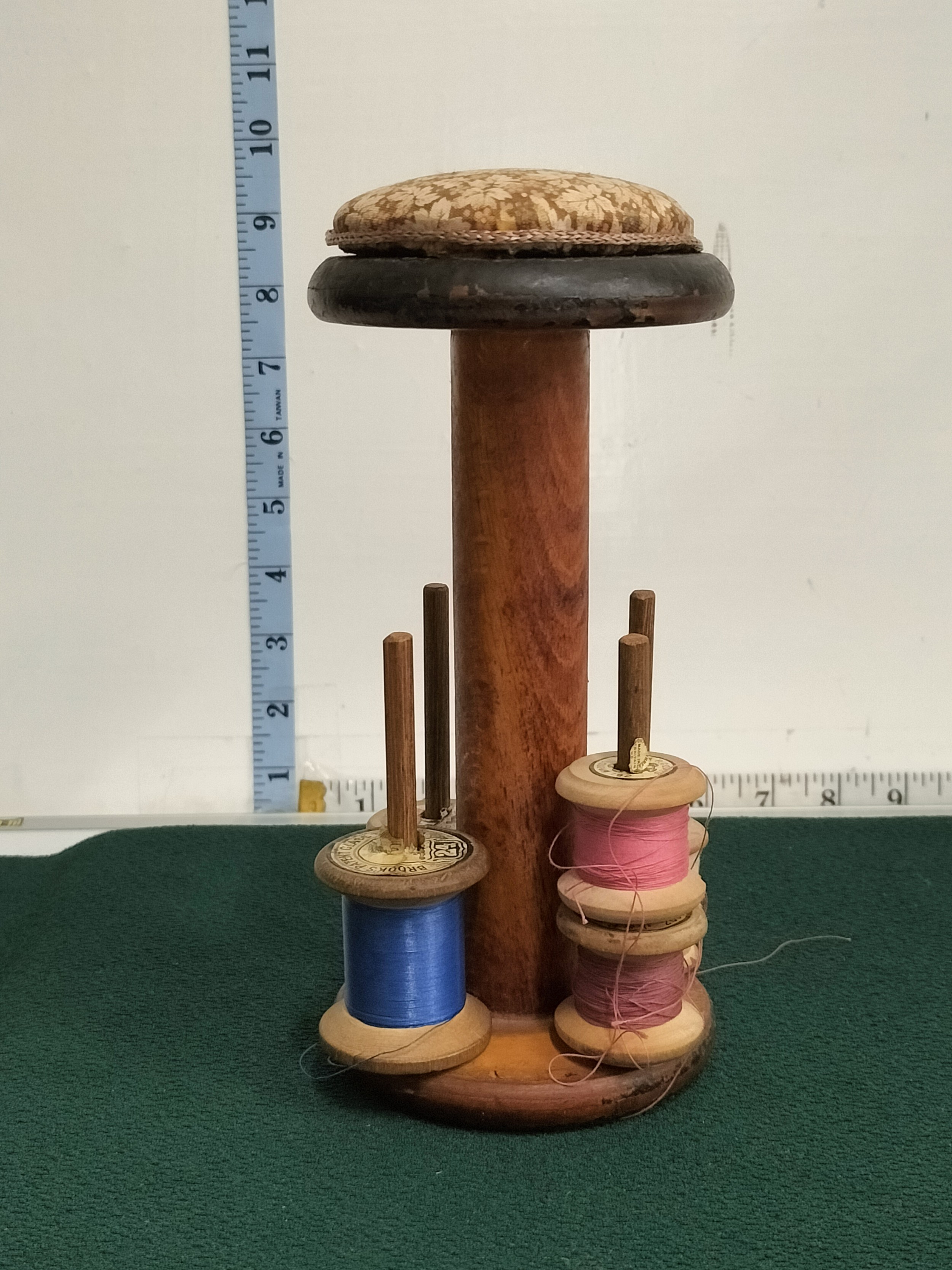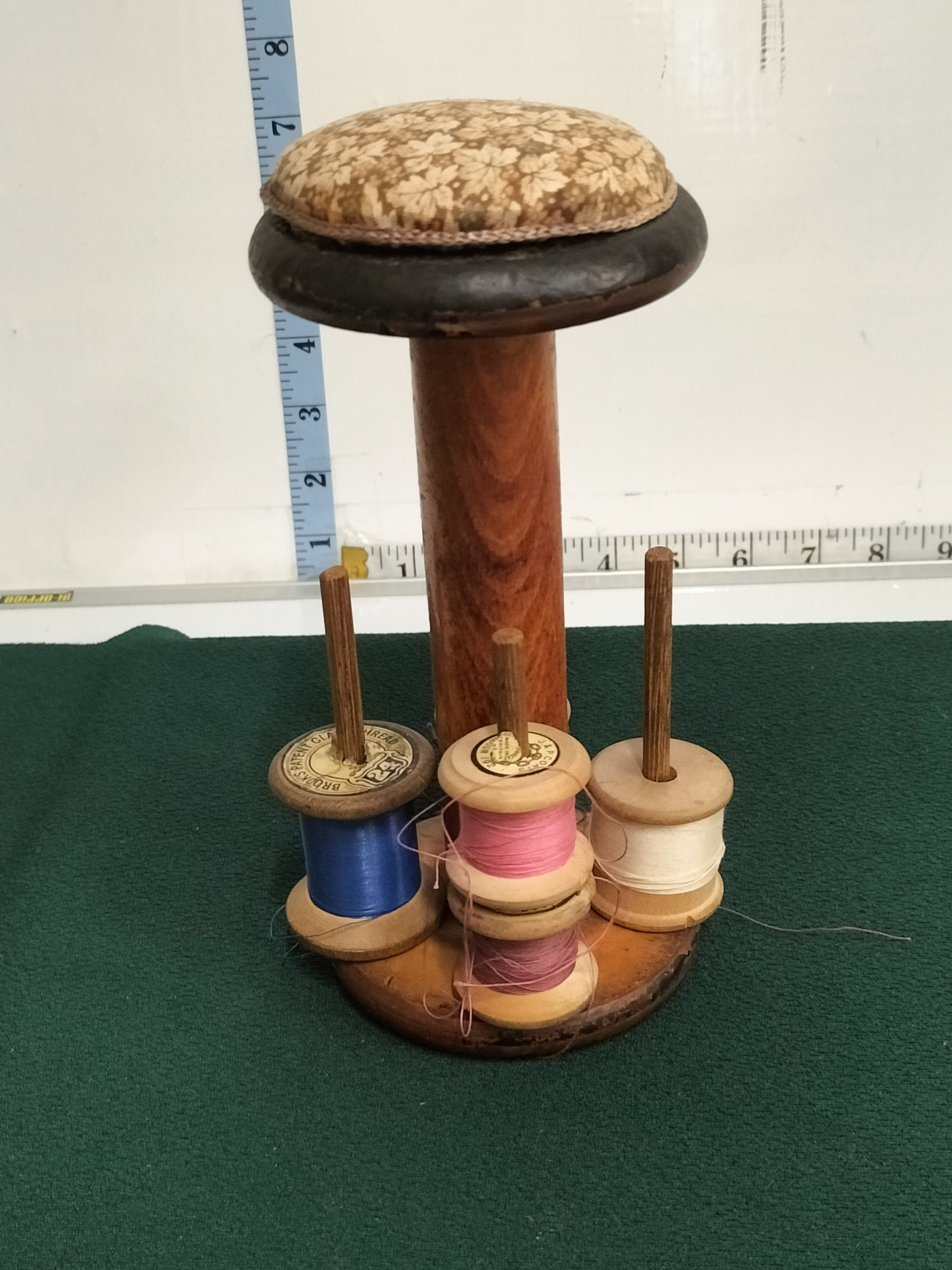 Antique Victorian Oak sewing stand with pin cushion