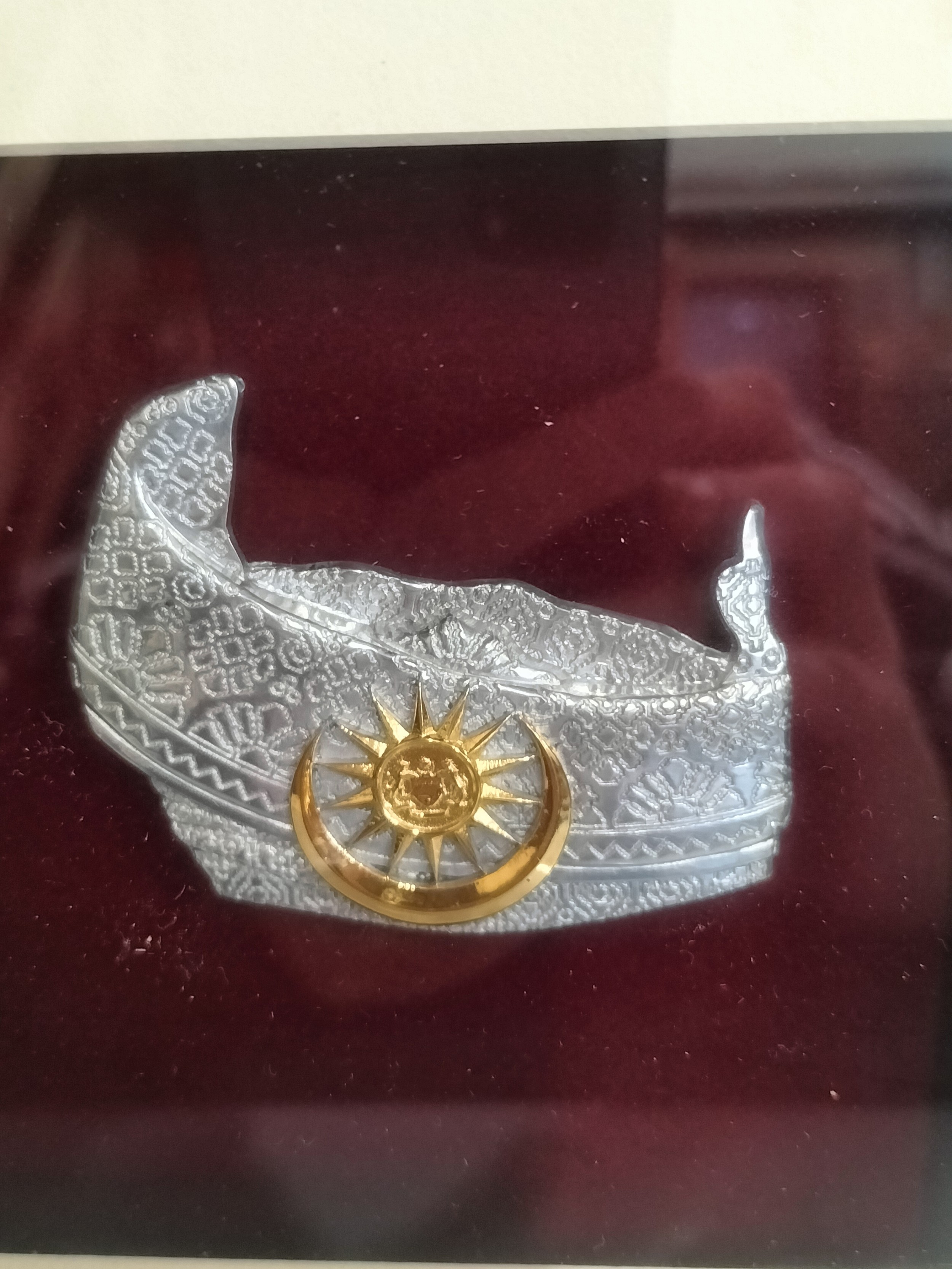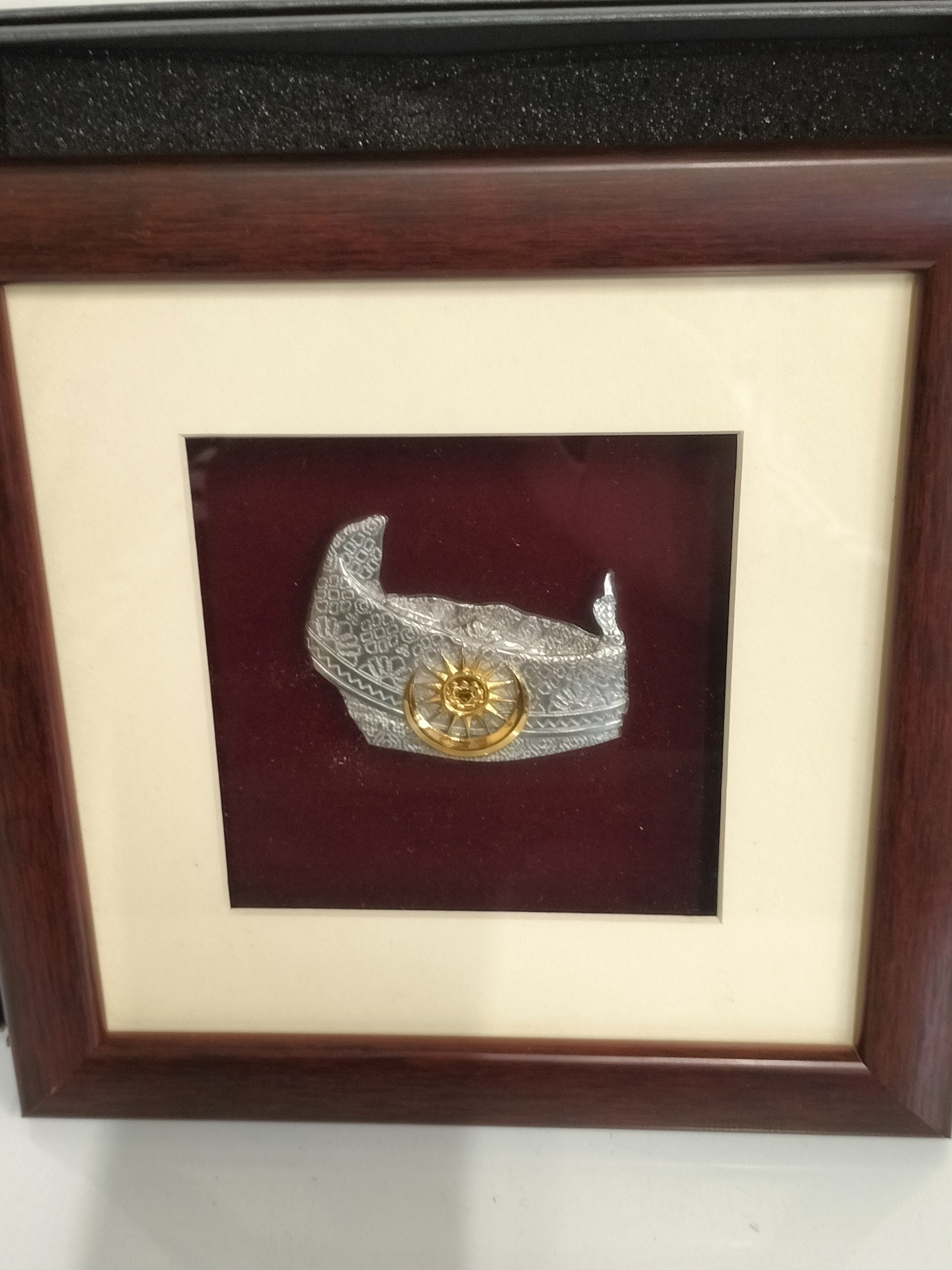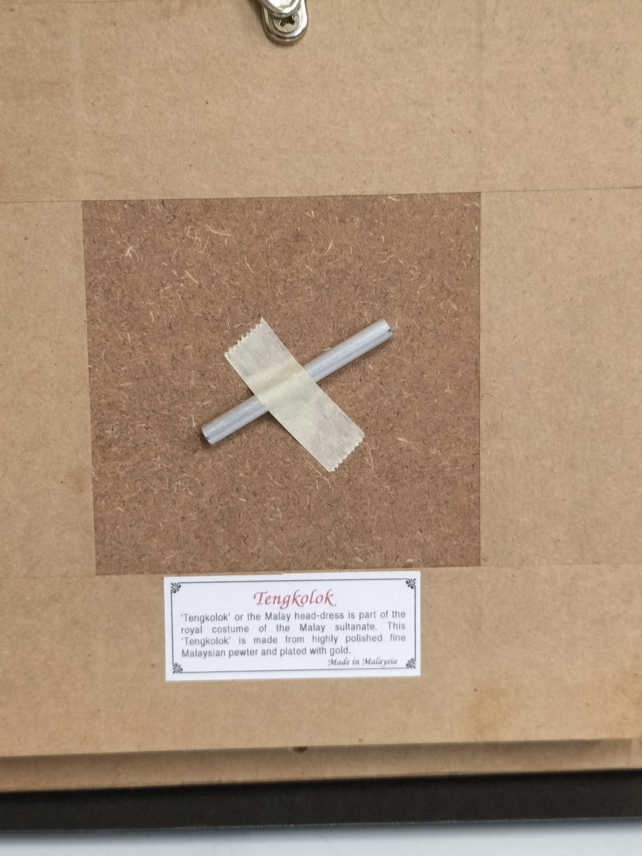 Gold Plated and pewter Tengkolok worn for ceremonious functions framed