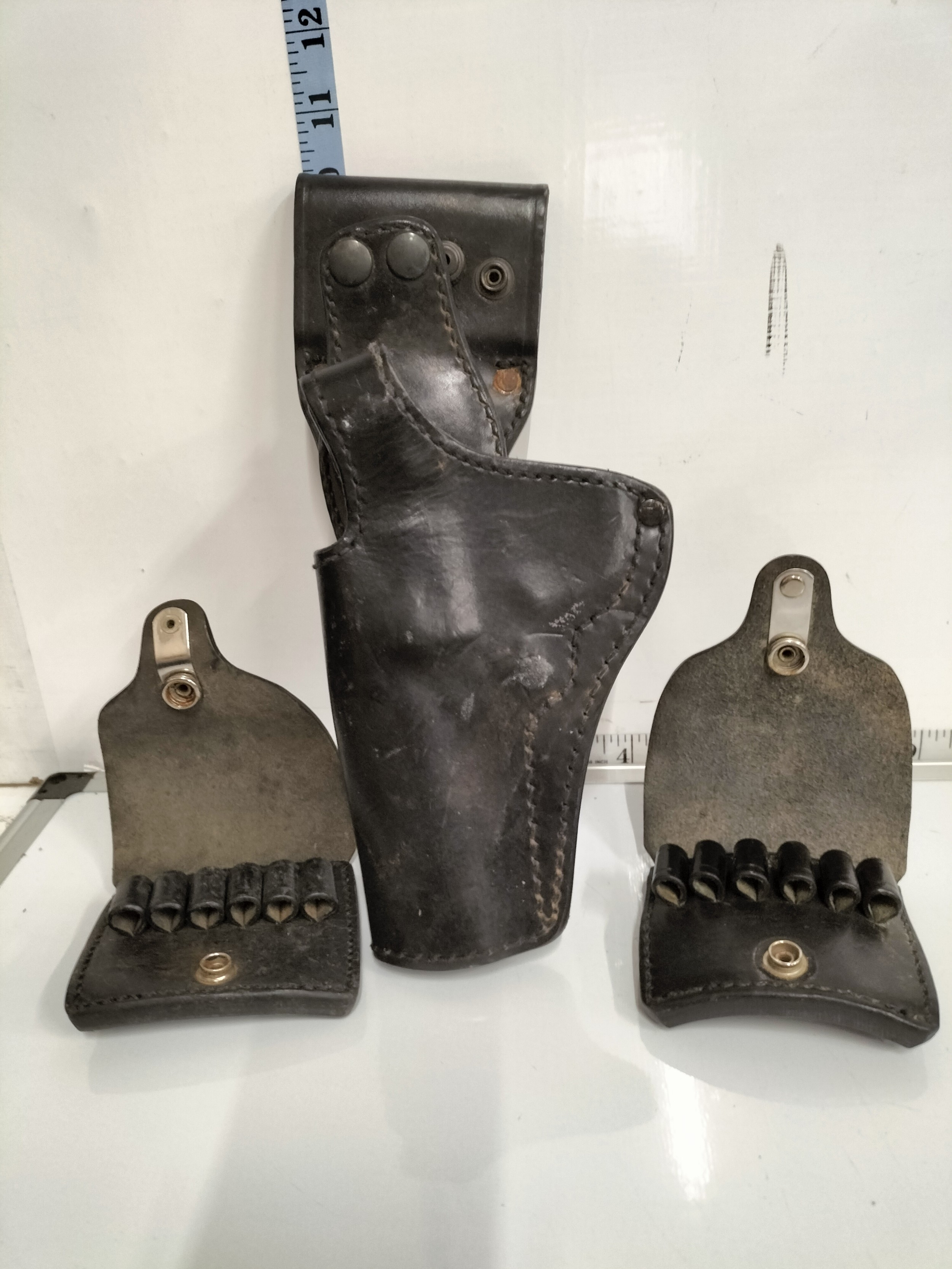 Vintage Leather Gun Holster and Two leather Amo pouches