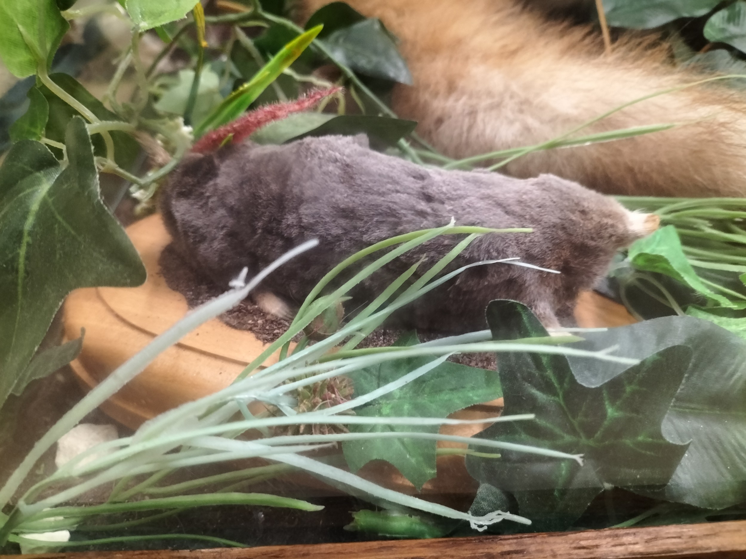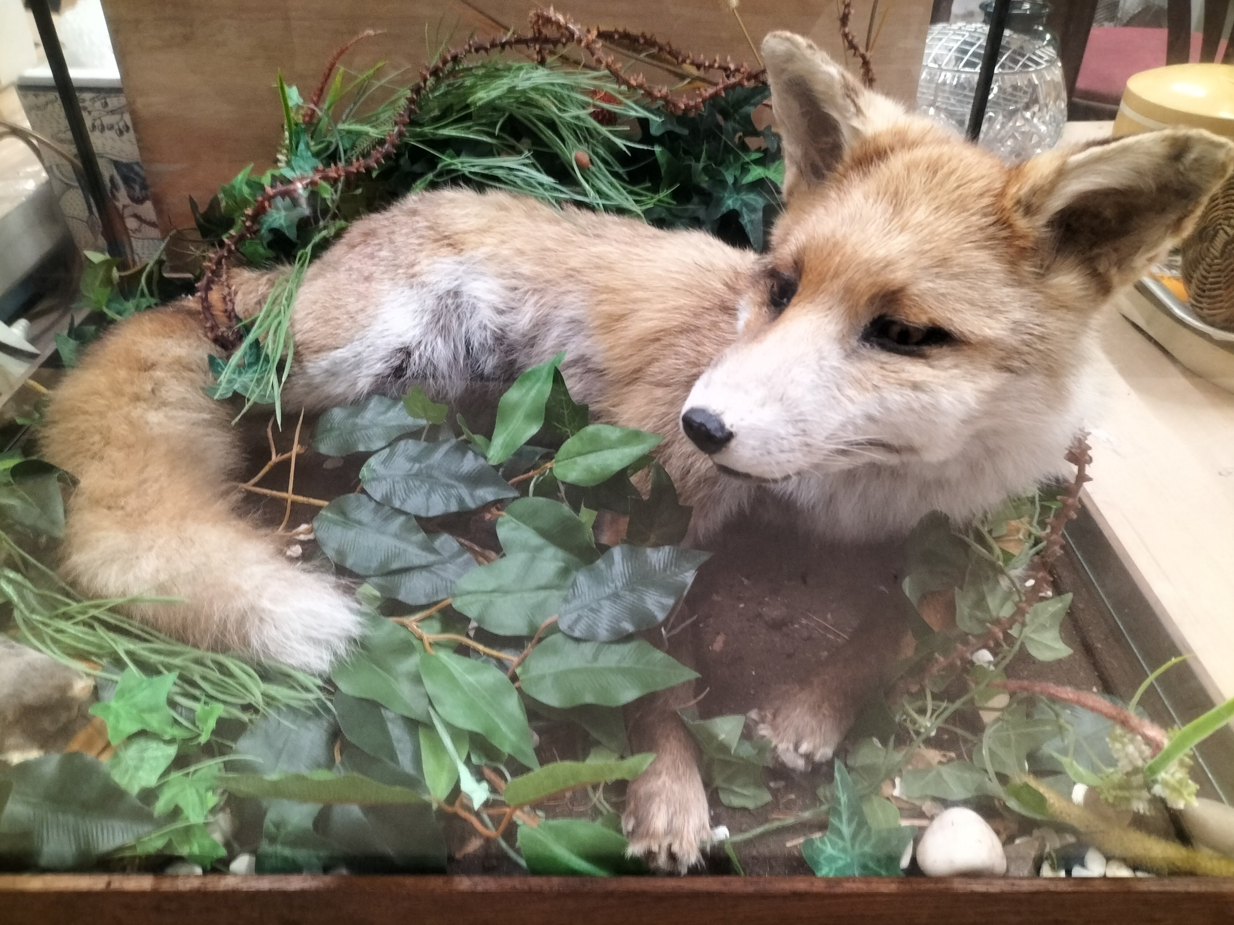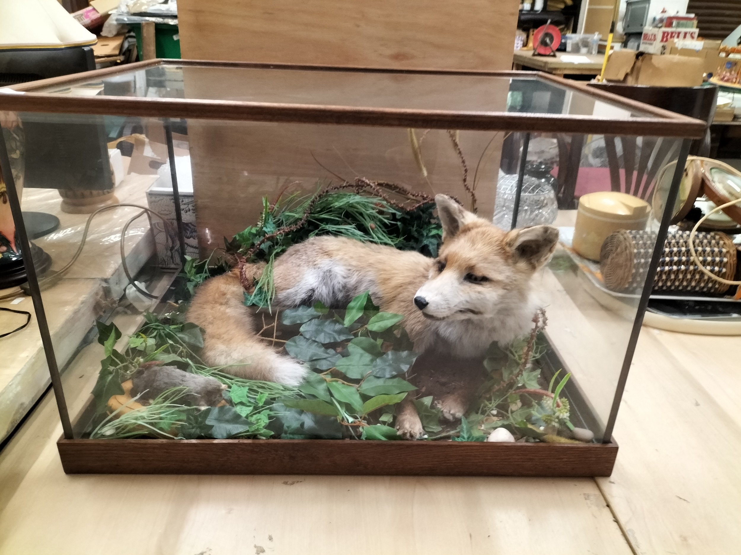 Antique Taxidermy fox and Mole in case