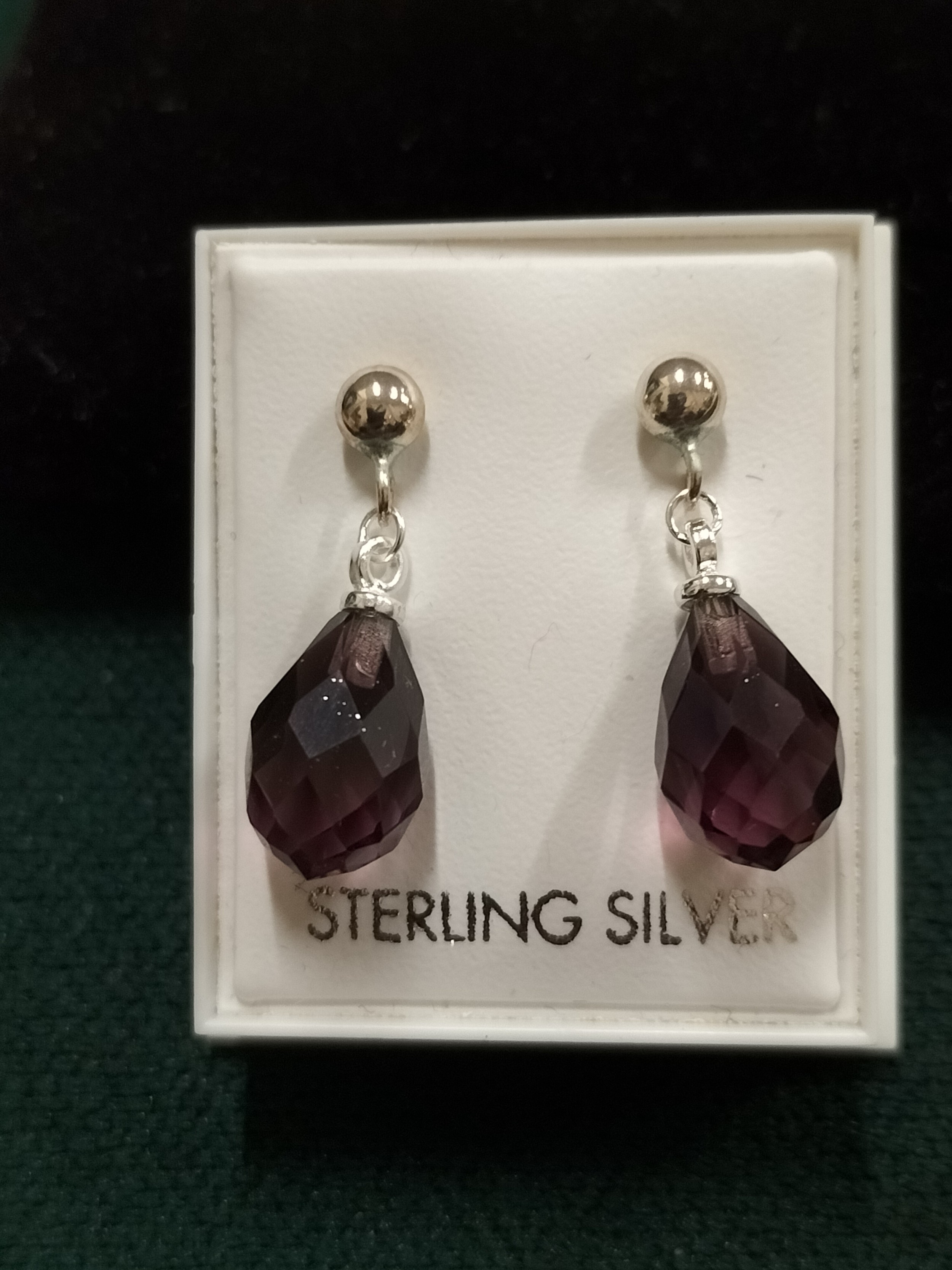 Silver and Red stone Droplet Earrings