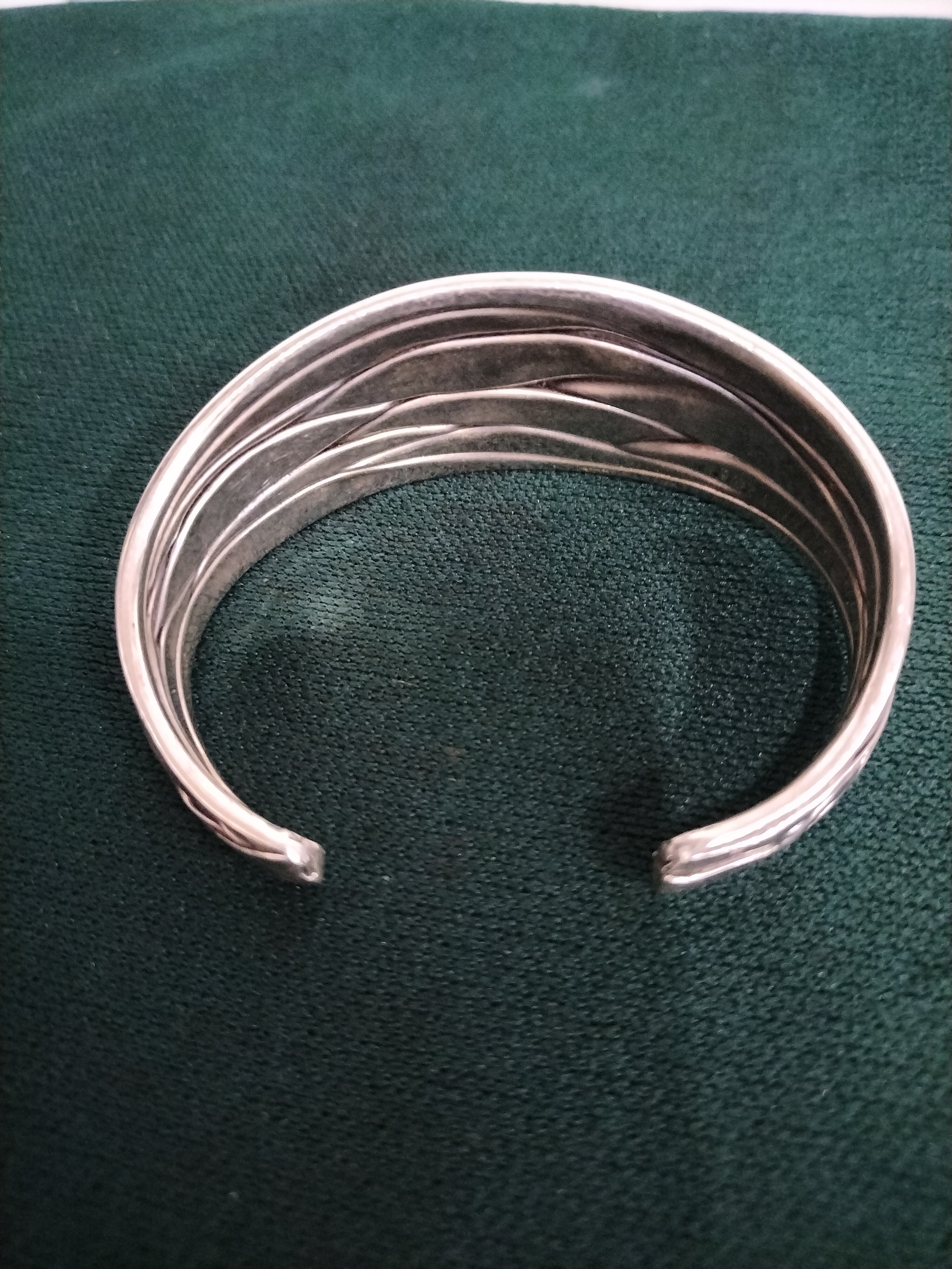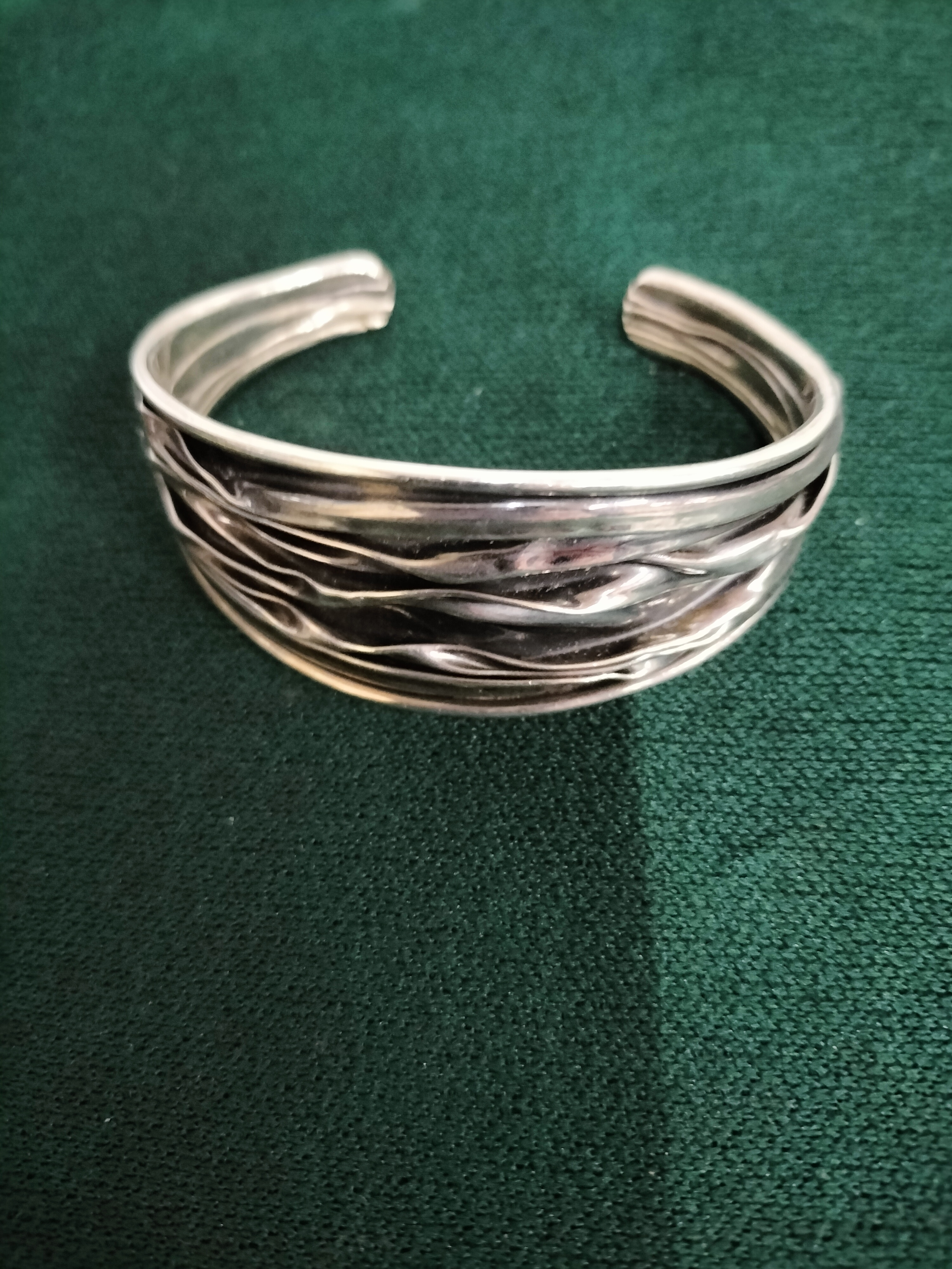 Oxidised Sterling Silver Wide Corrugated Cuff Bangle
