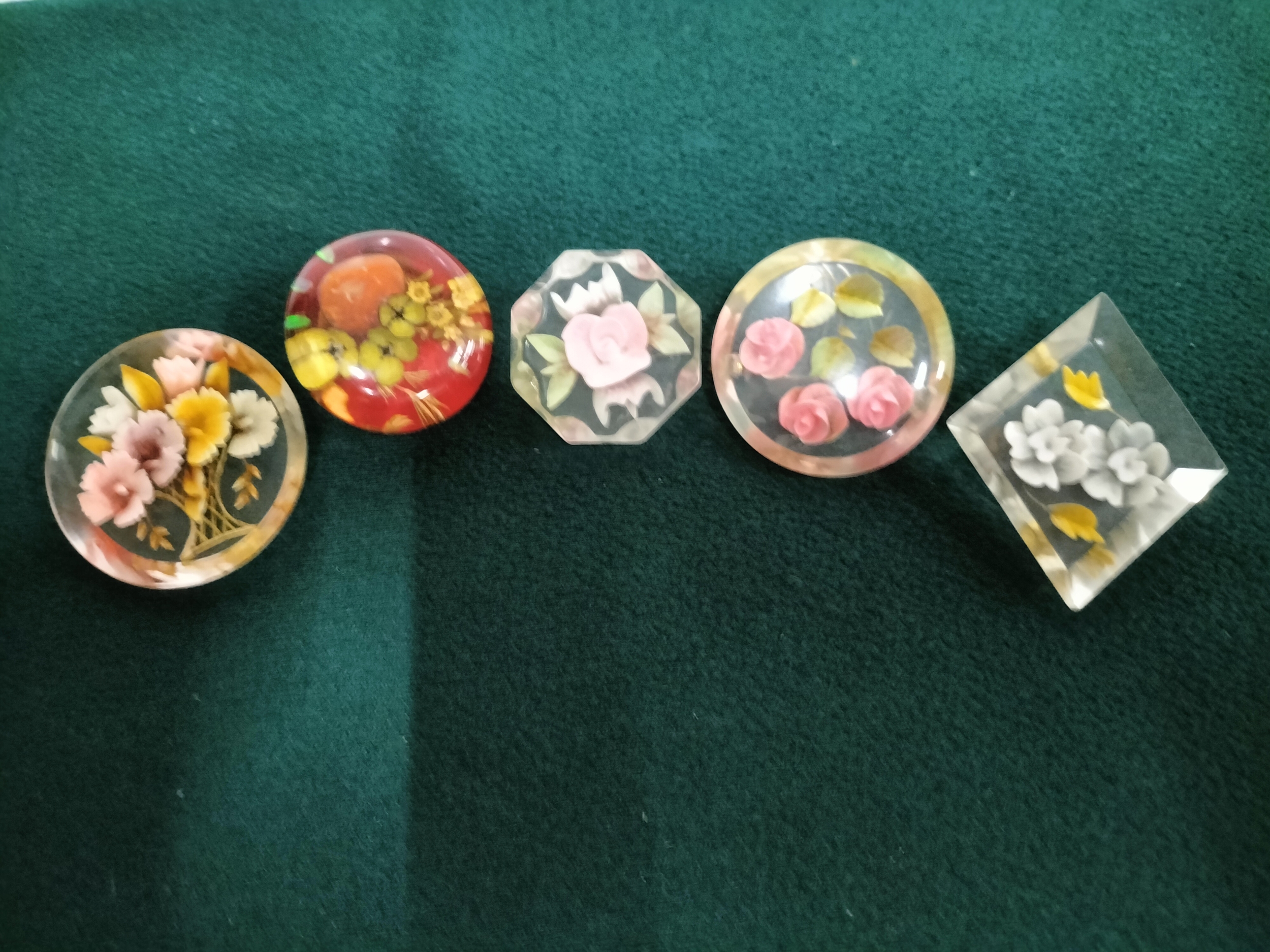 Selection of Vintage Reversed Carved Lucite Floral Brooches