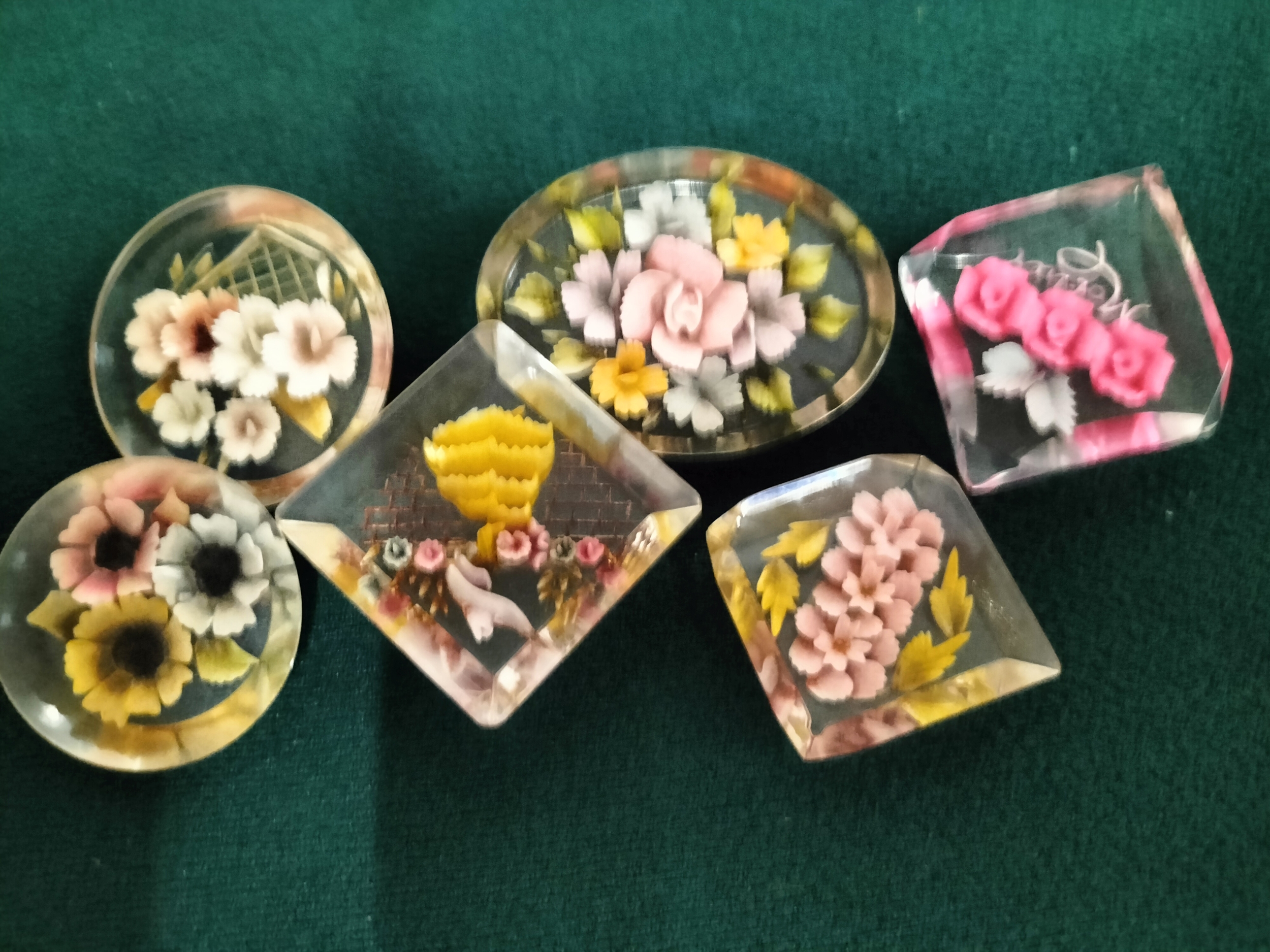 Selection of Vintage Reversed Carved Lucite Floral Brooches