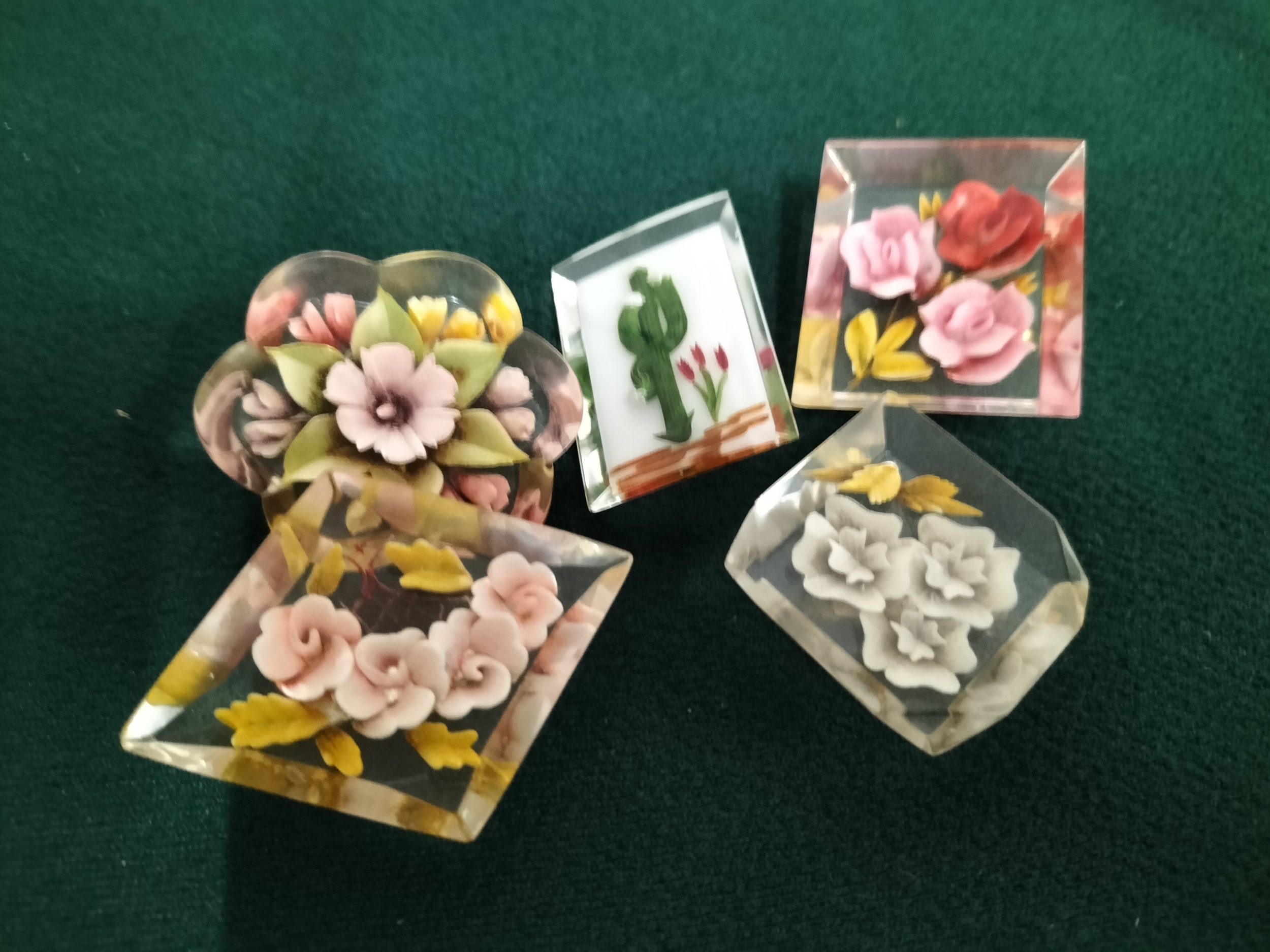 Selection of Vintage Reversed Carved Lucite Floral Brooches