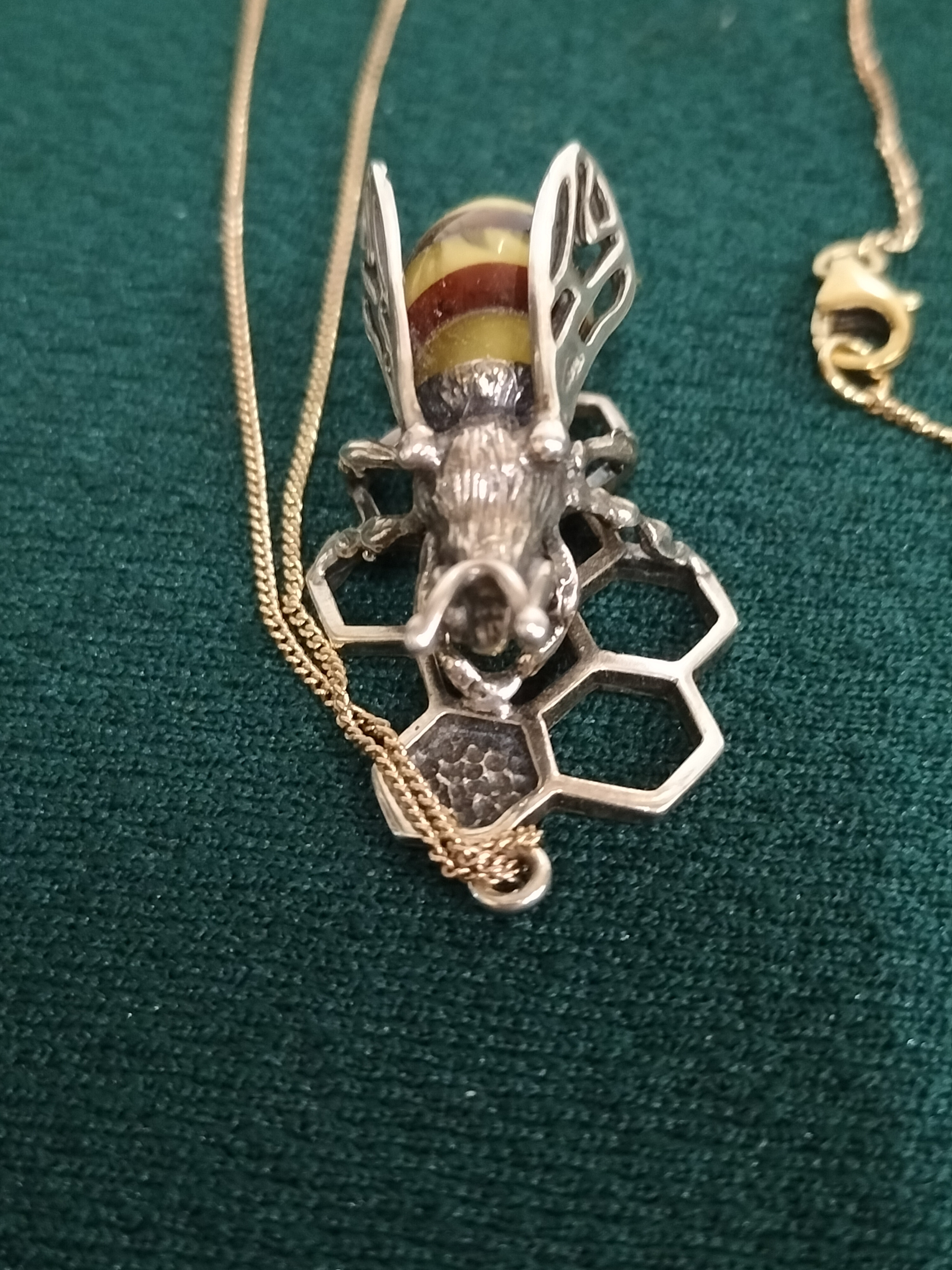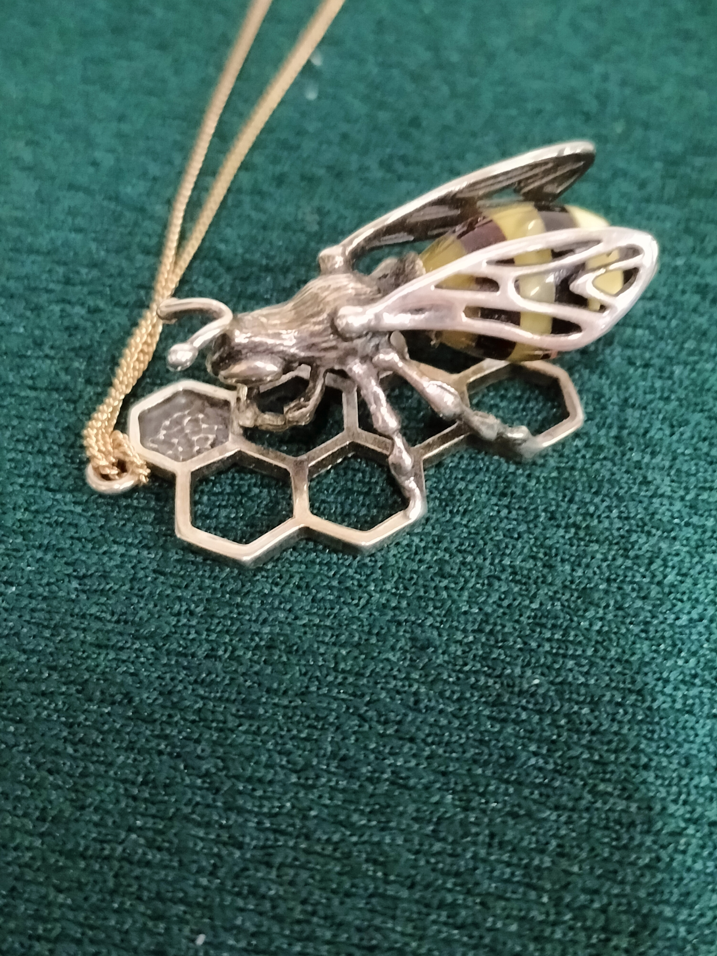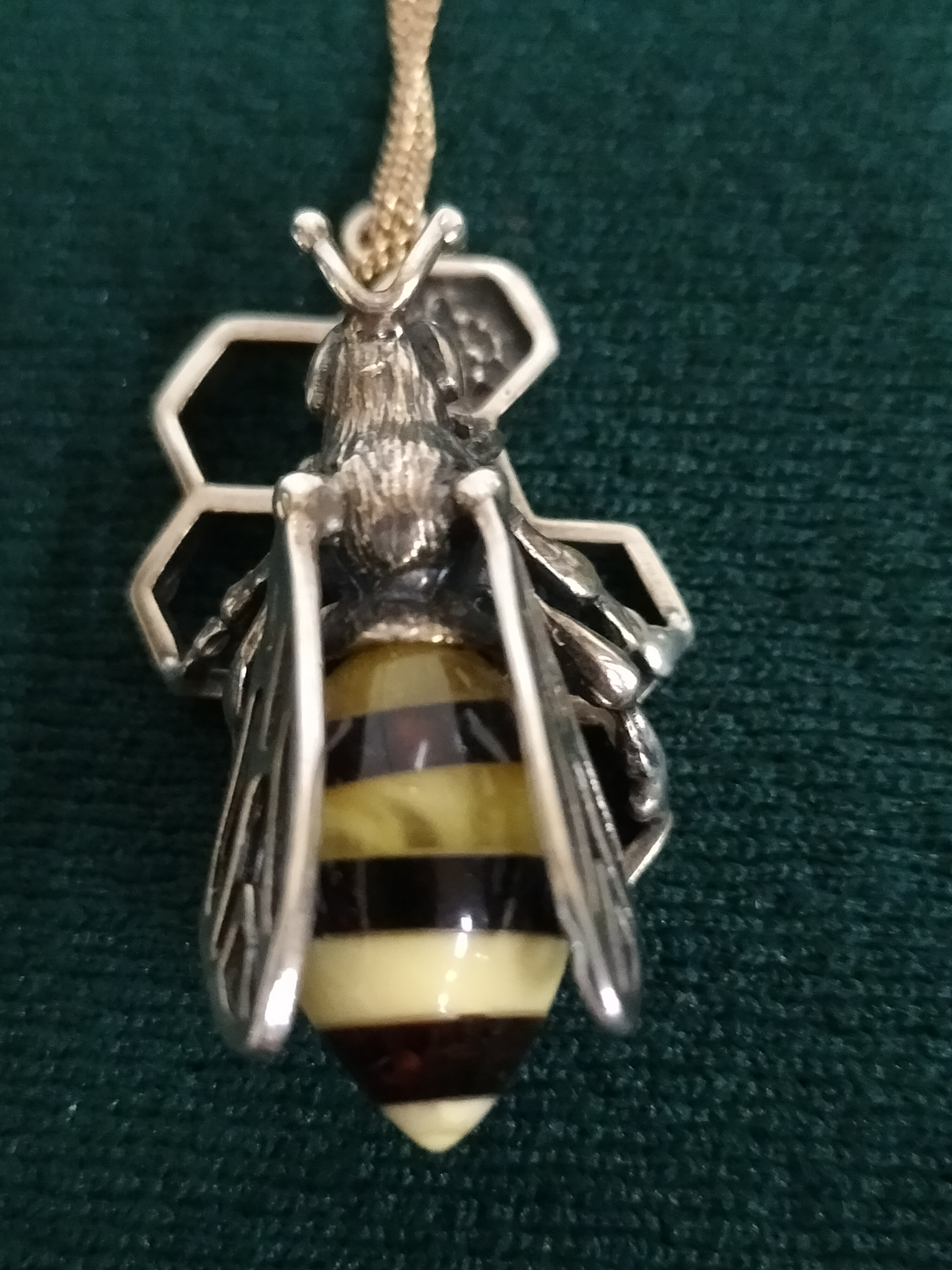 Gold on Silver Chain with Silver Amber Bumble Bee
