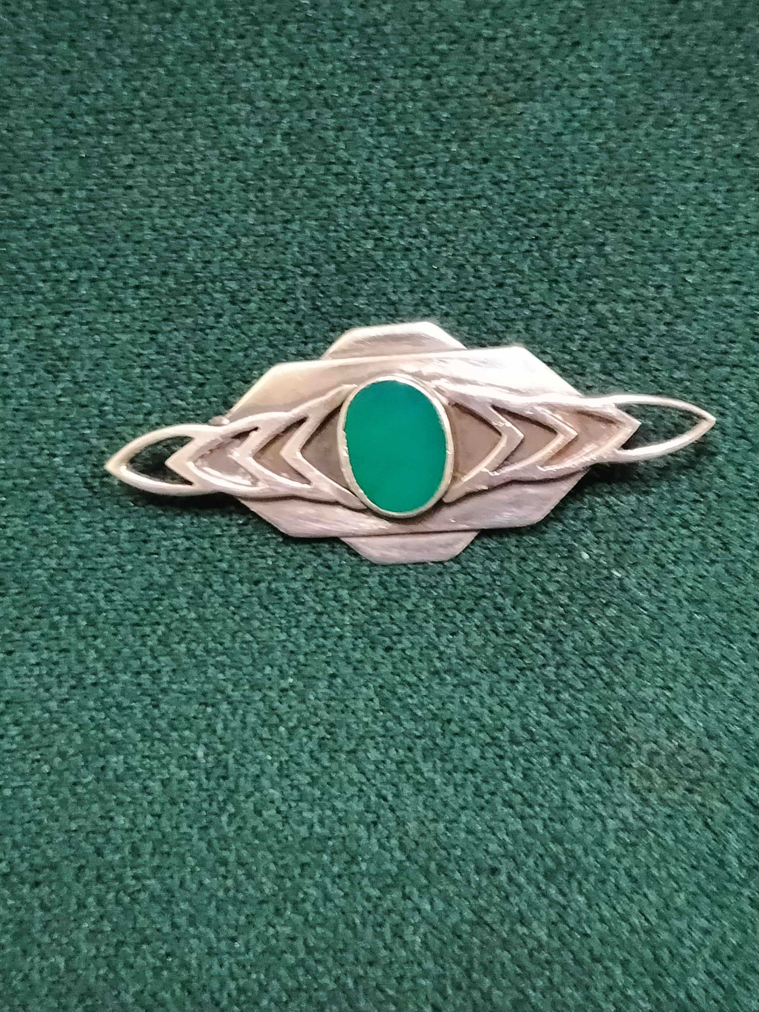 Tested for Silver Brooch with Green Stone
