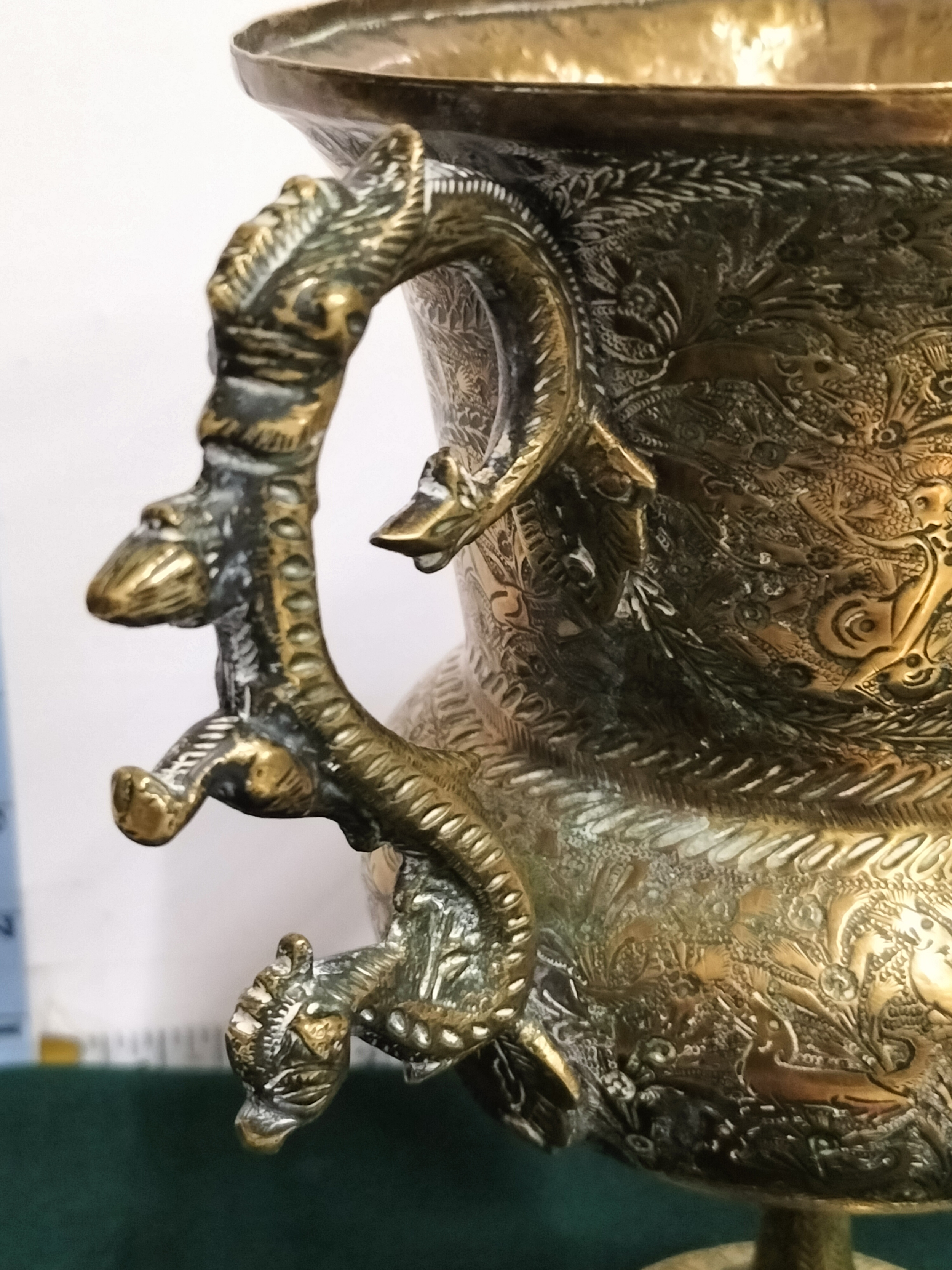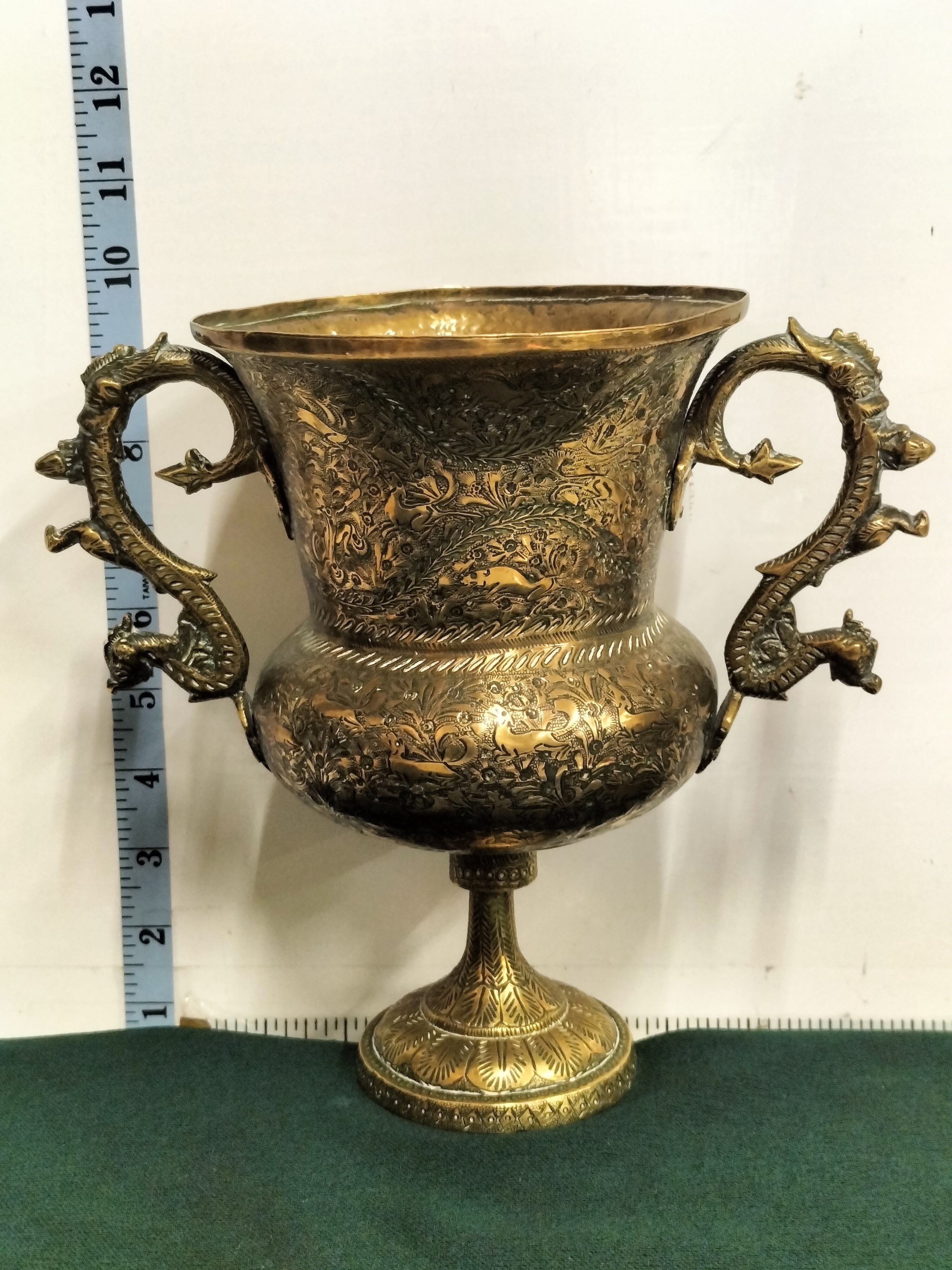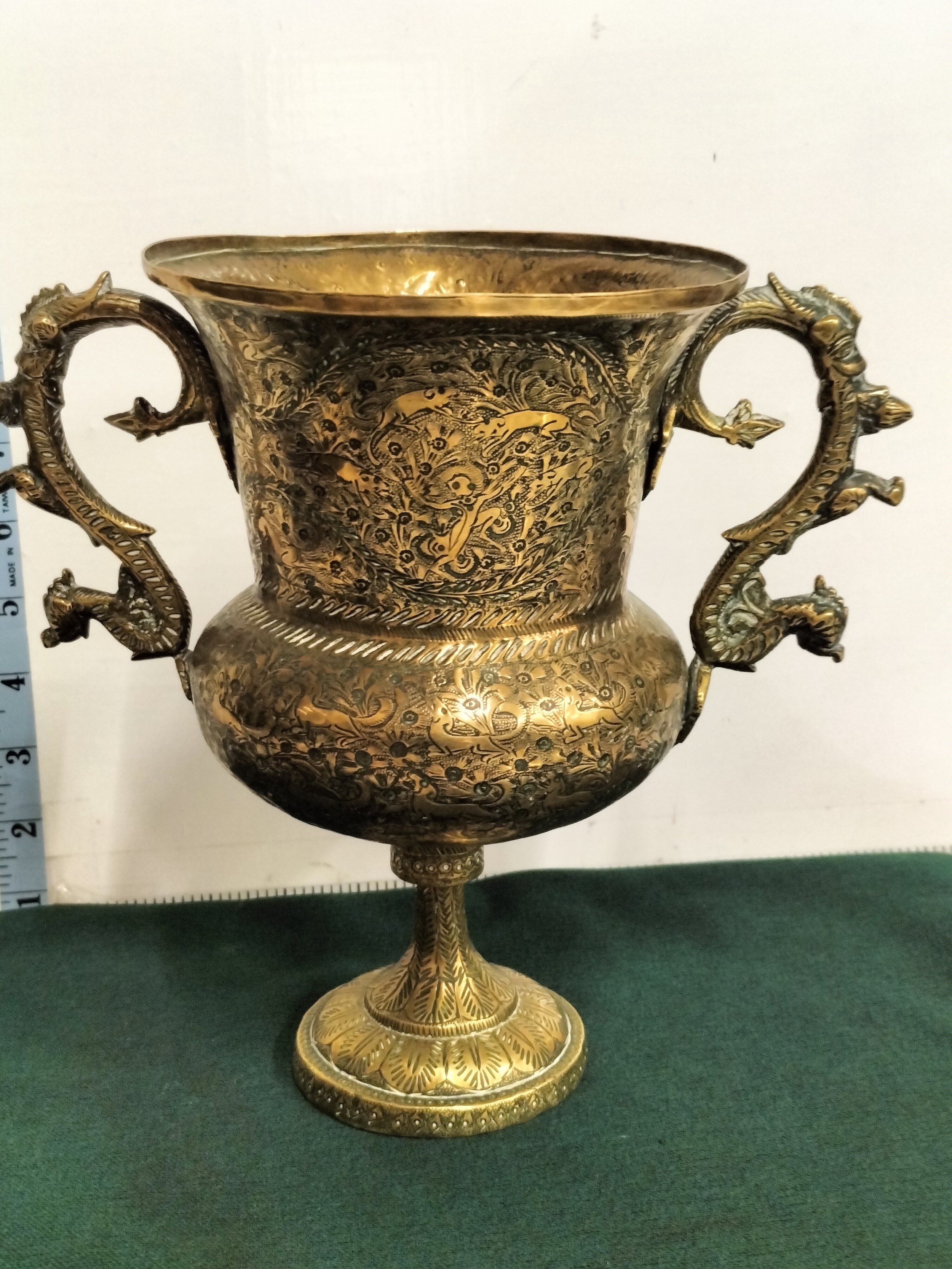 Antique Persian 2 Handled Metal Cup/Vase with Chased Decoration
