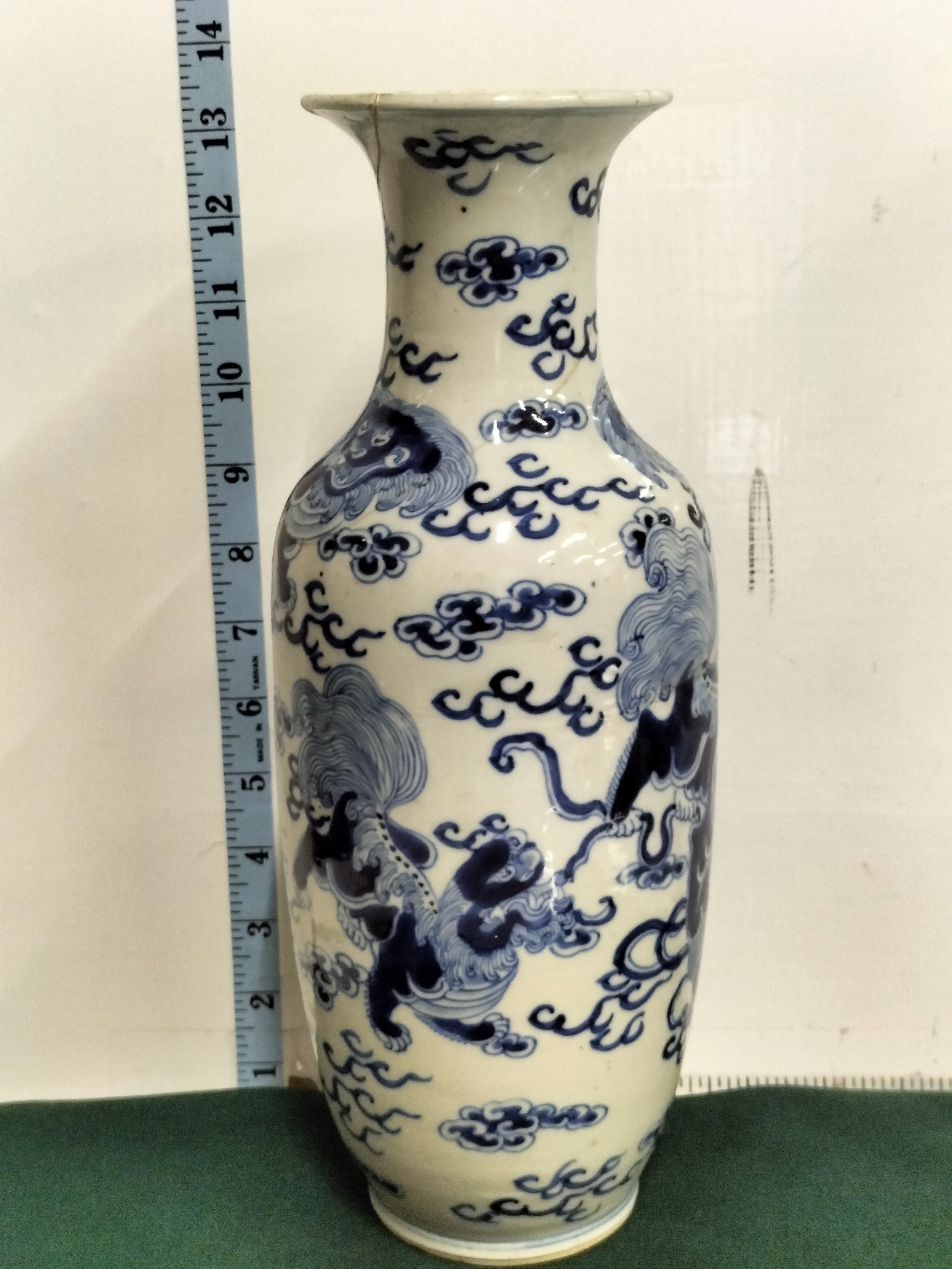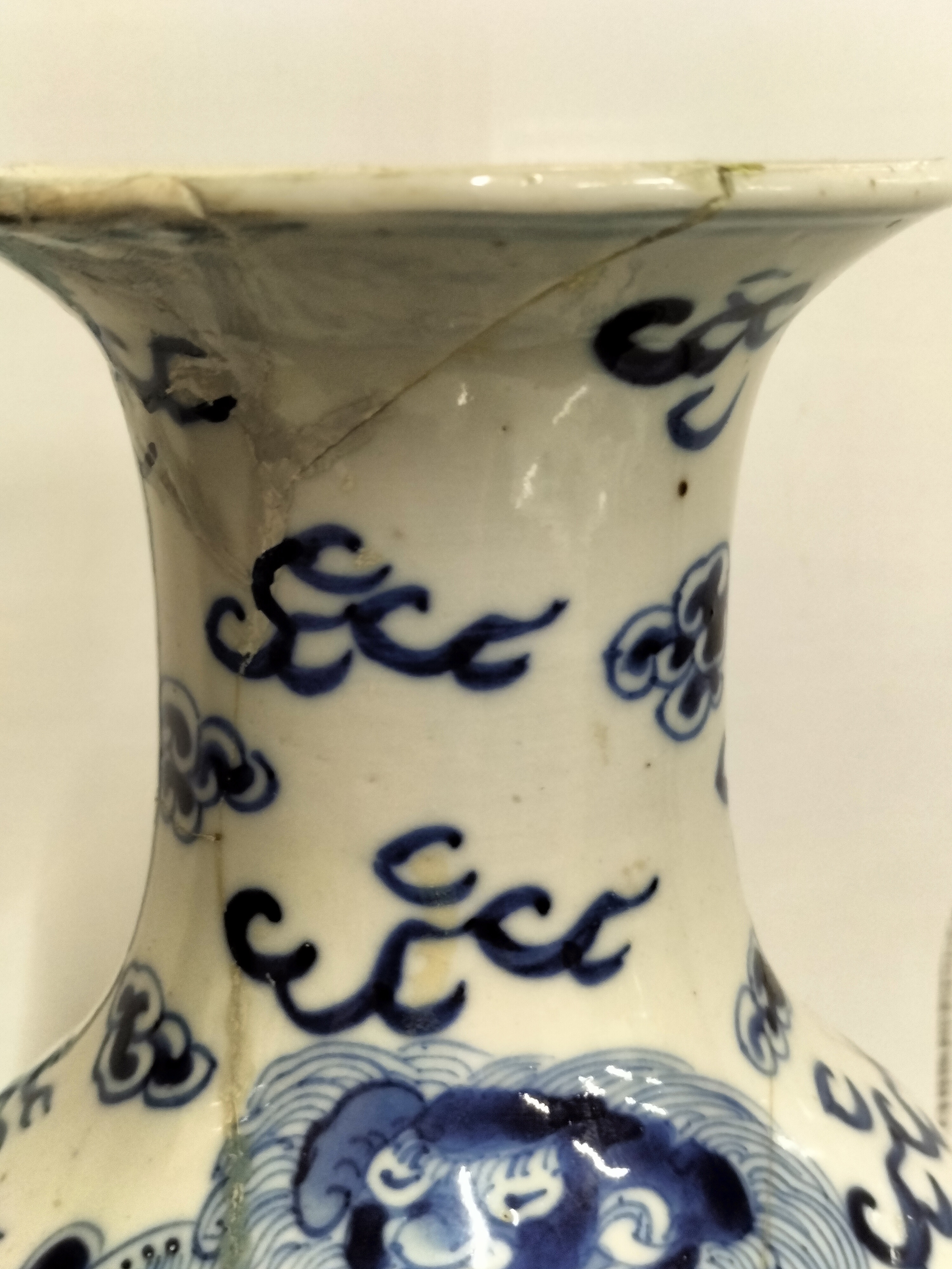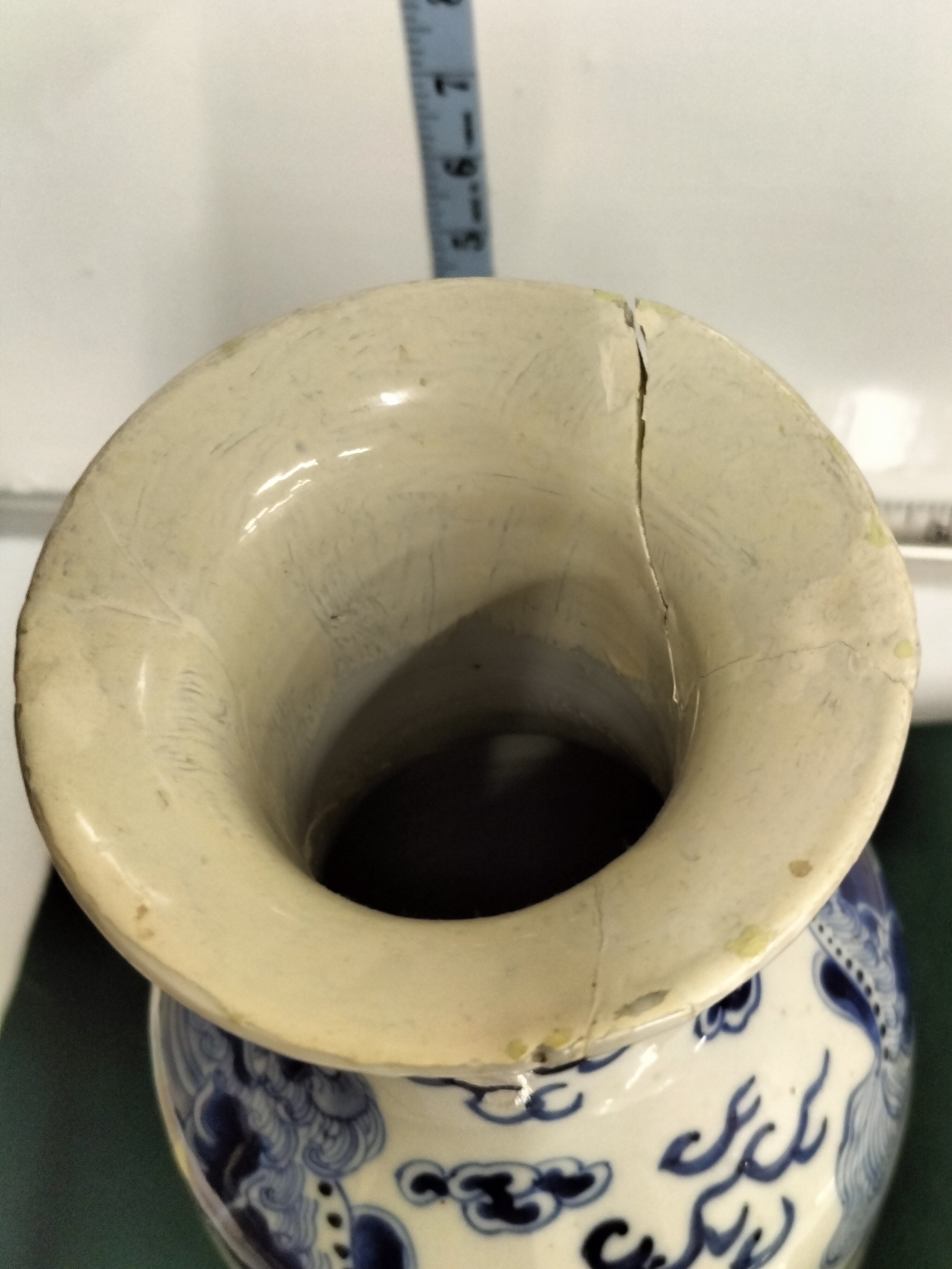 Very Early Blue and White Chinese Vase with Early Repair. Marks to Base
