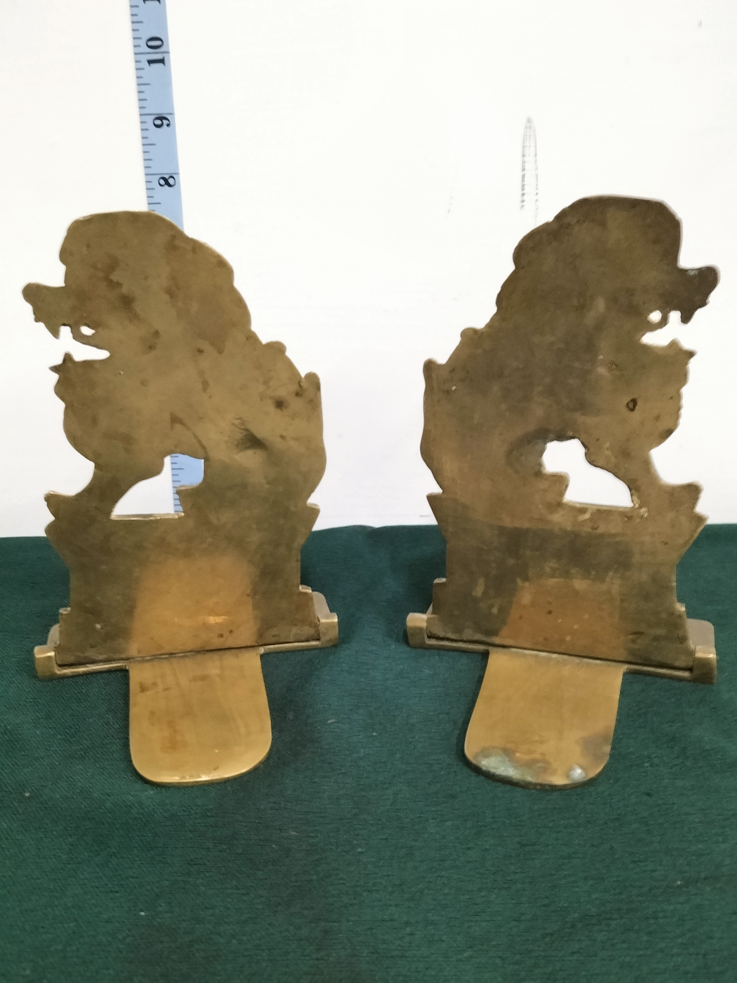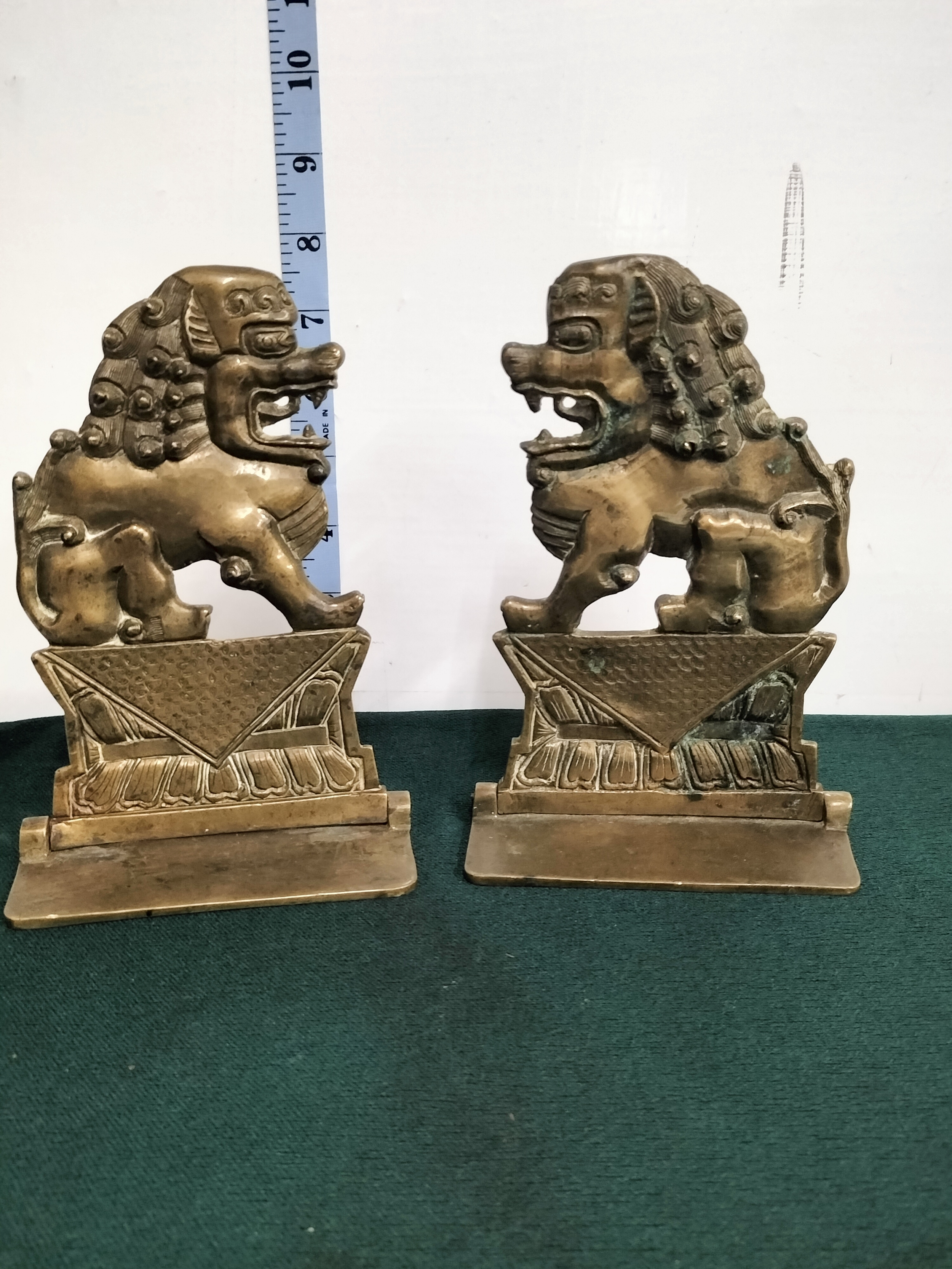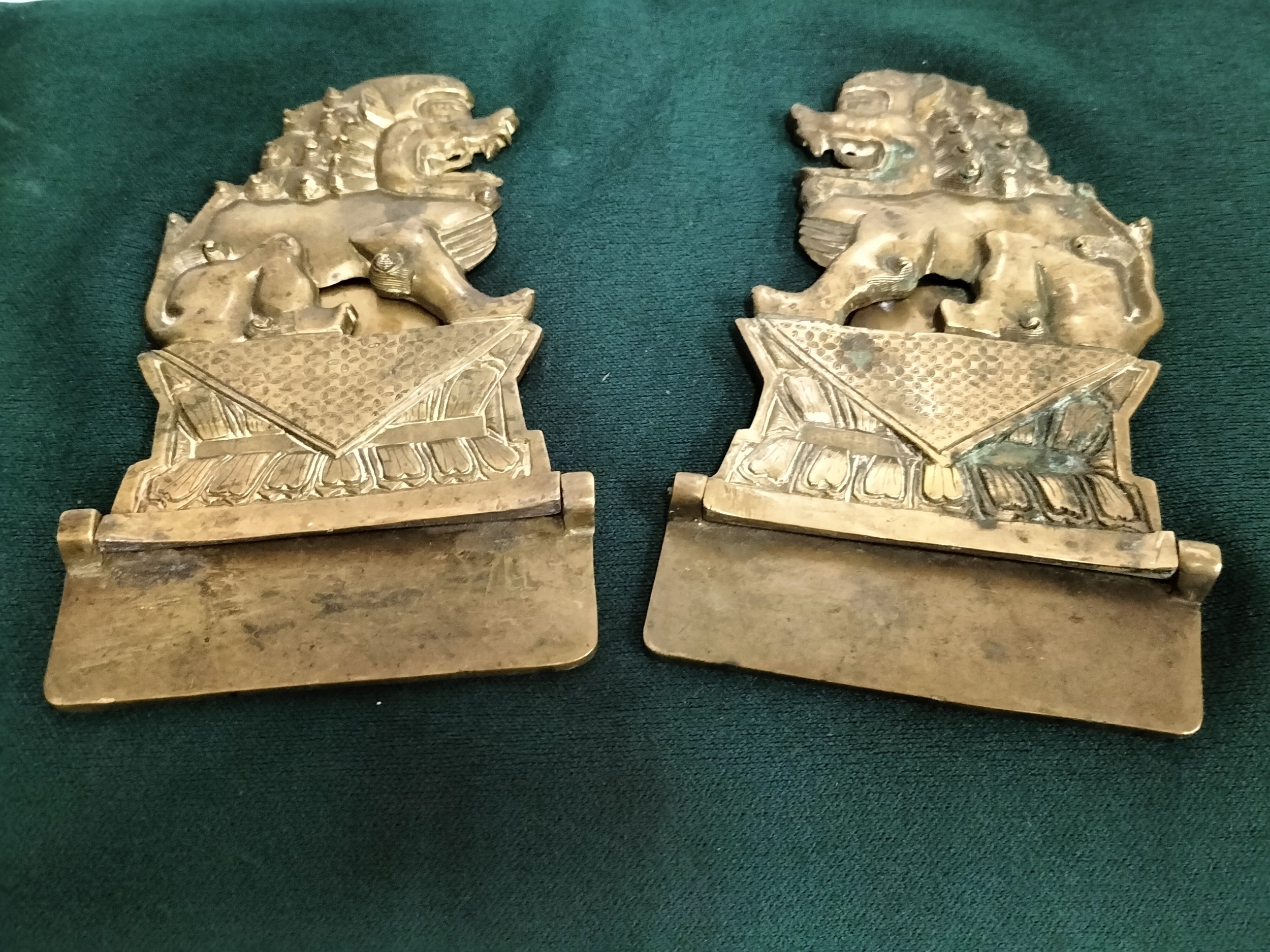A Pair of Bronze/ Brass Foo Dogs Chinese Guardian Lions Book Ends