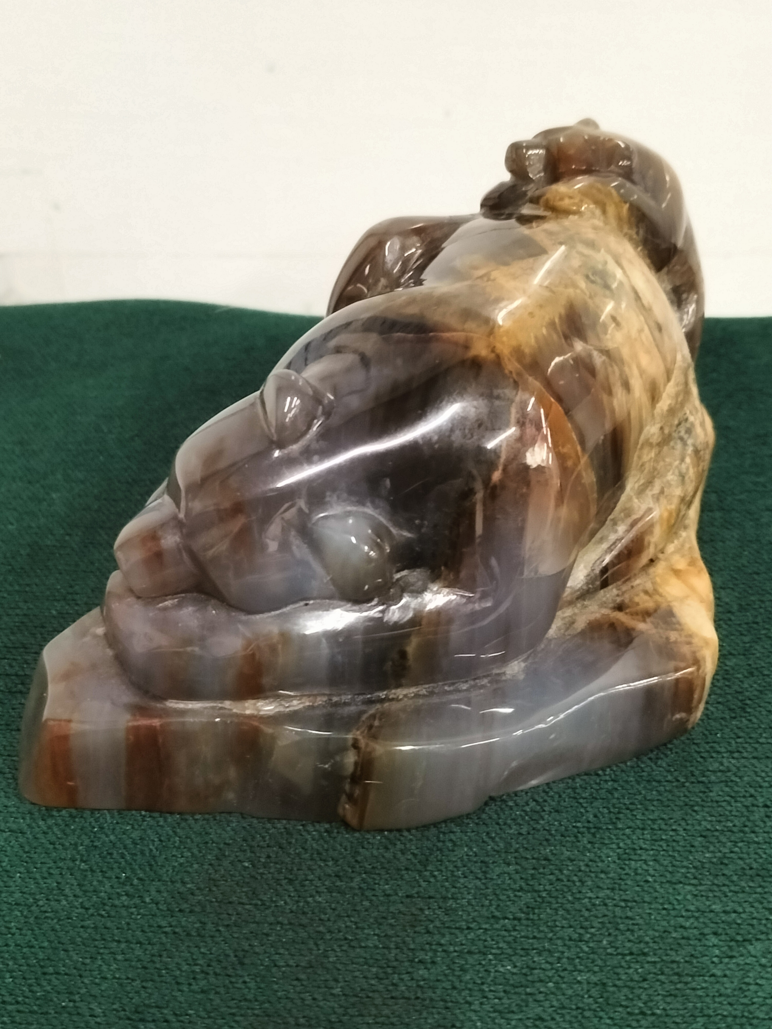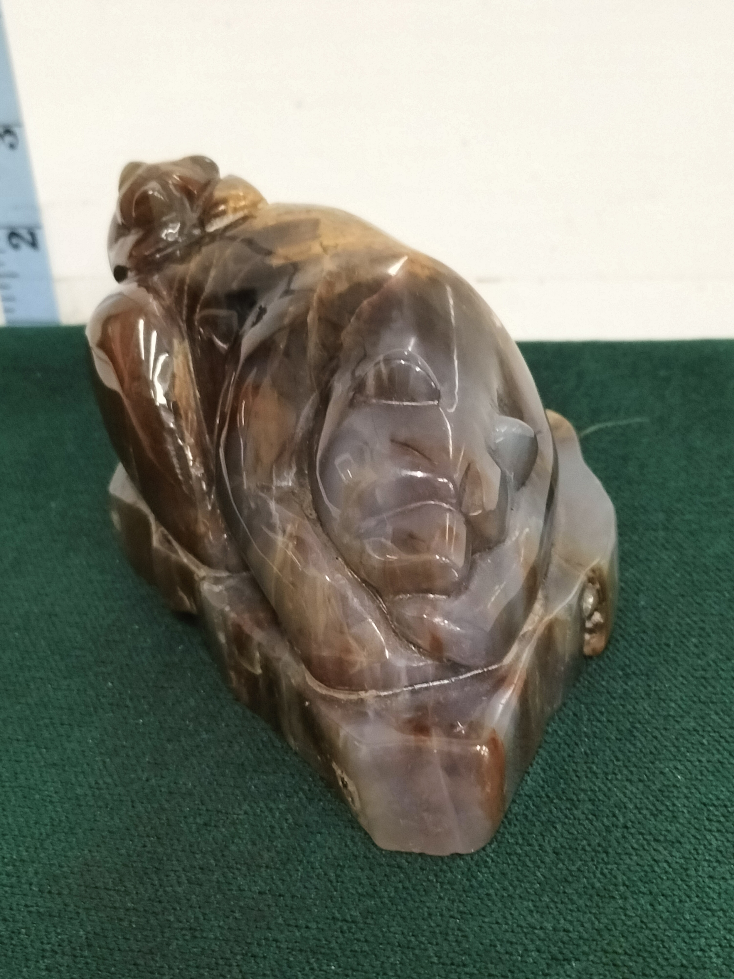 Carved Agate Crystal Bear with Cub, made from natural Agate Geode Stone with Polished finish. Signed