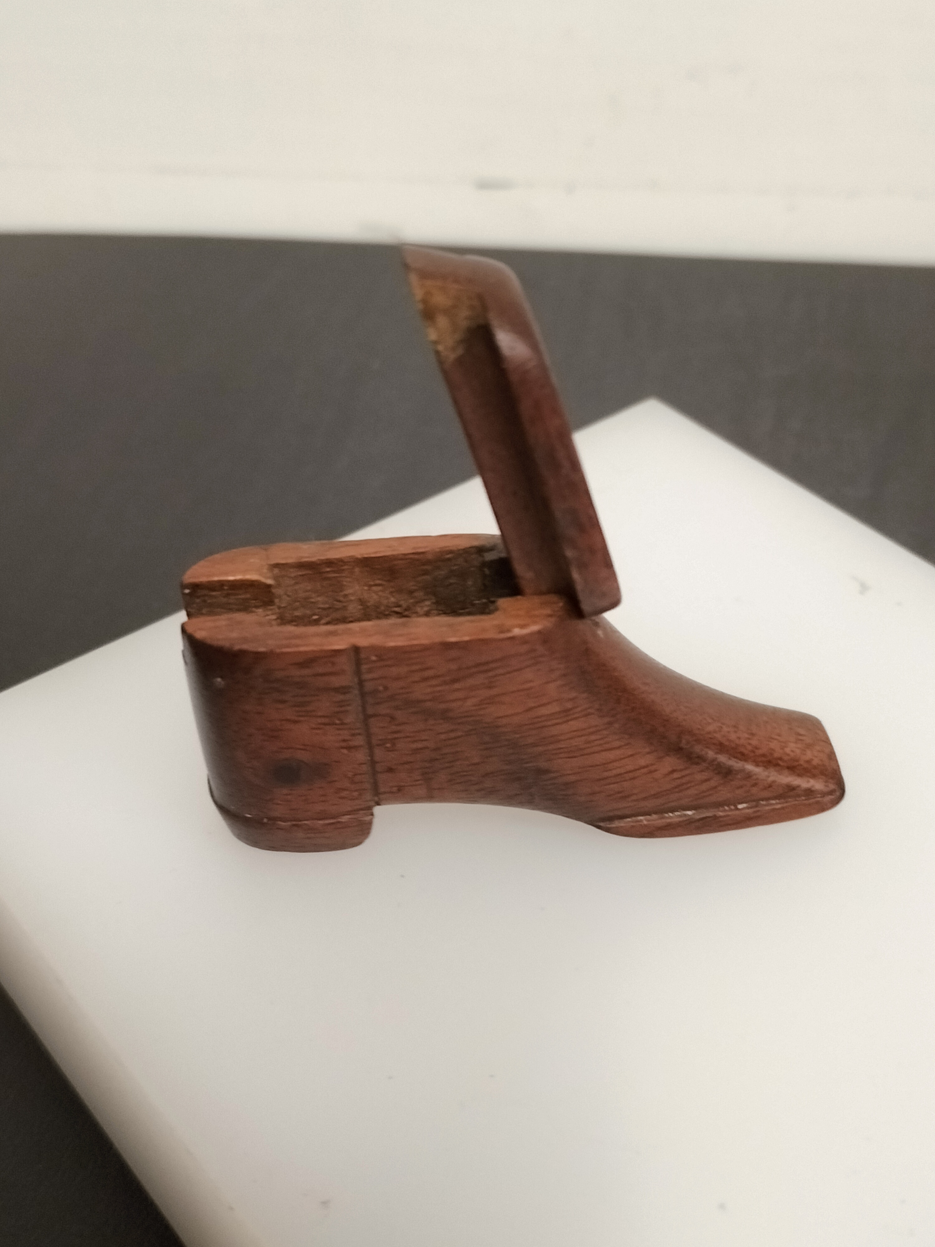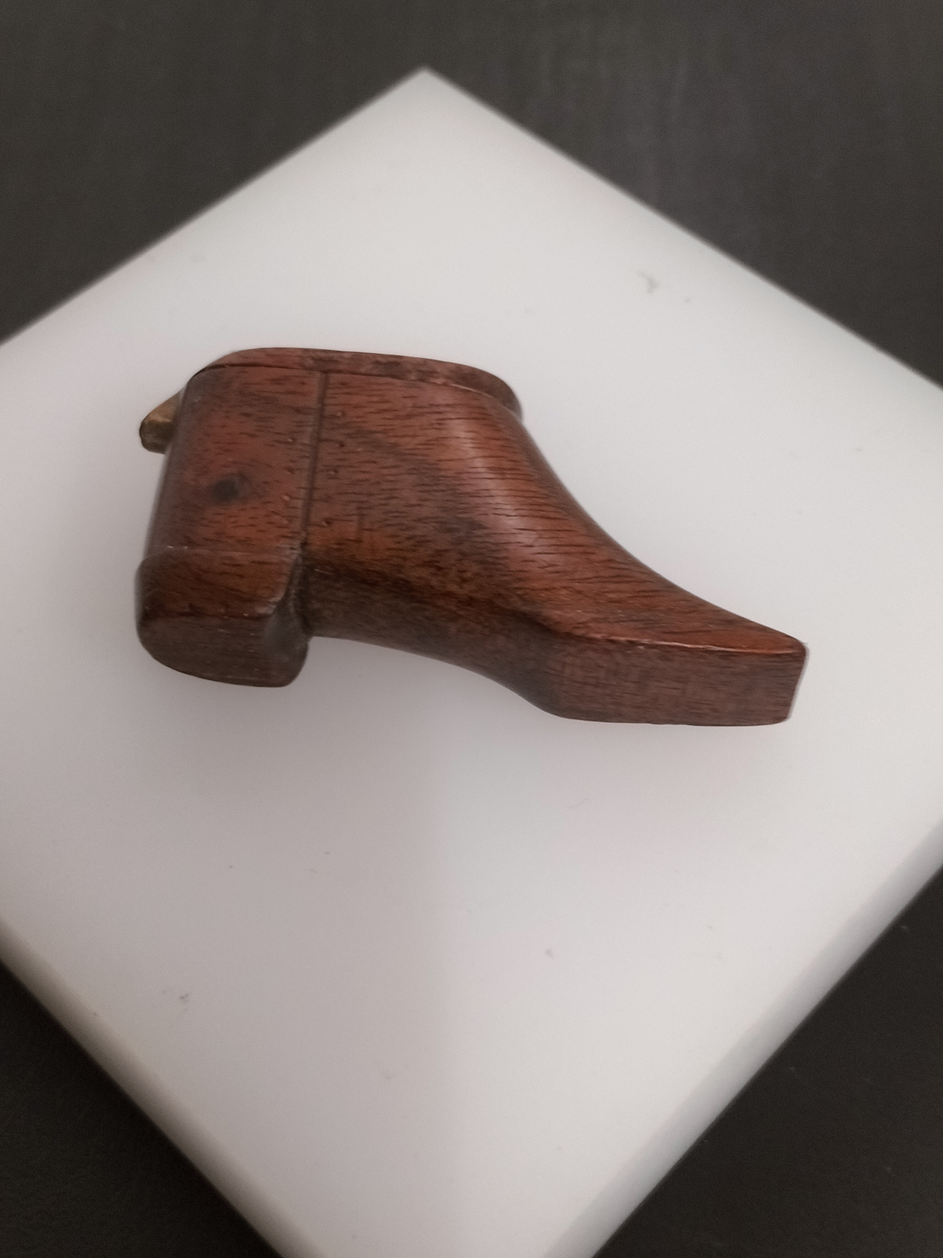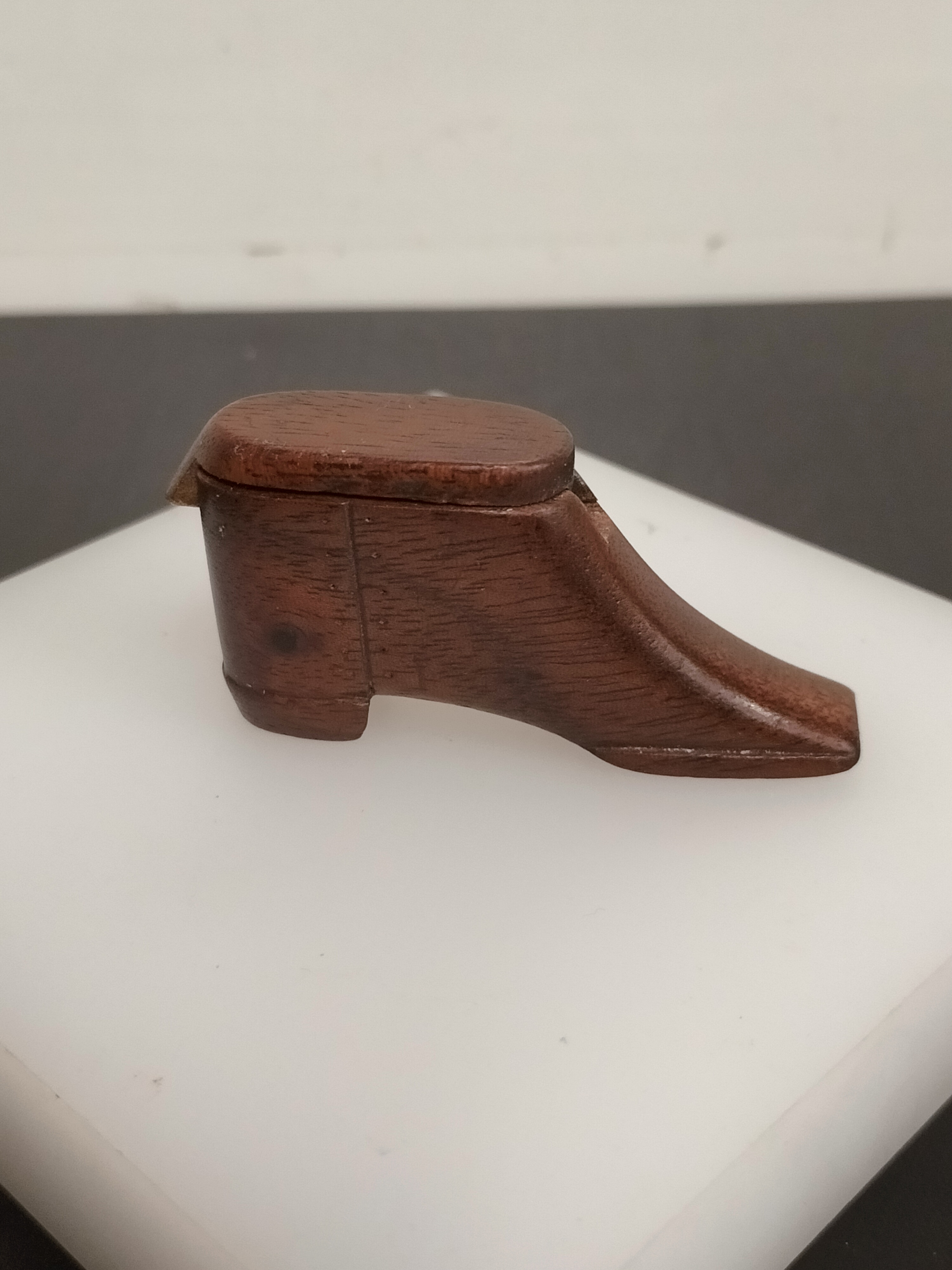 Beautiful Treen Shoe Snuff Holder with Lid. Beautiful Condition