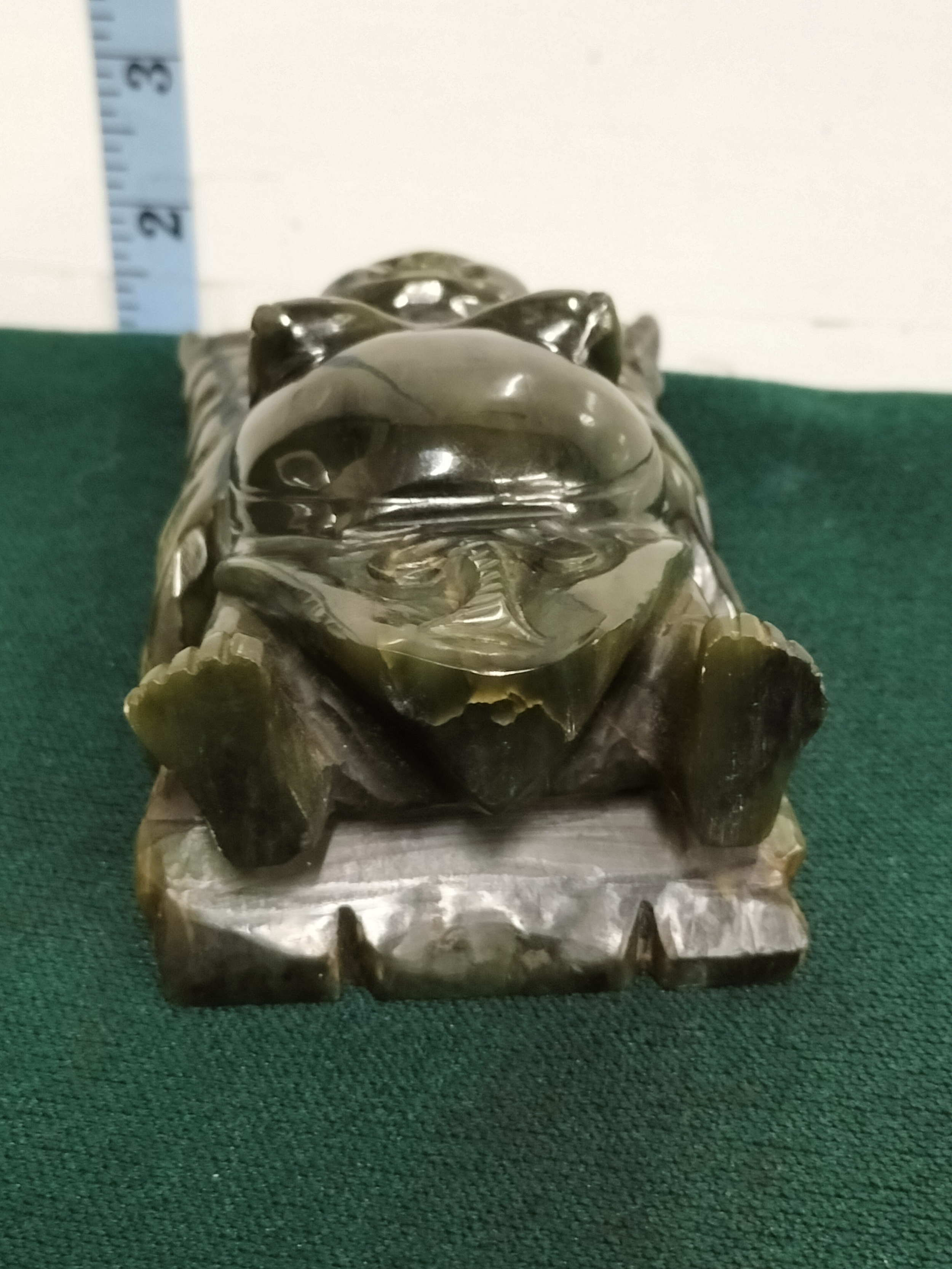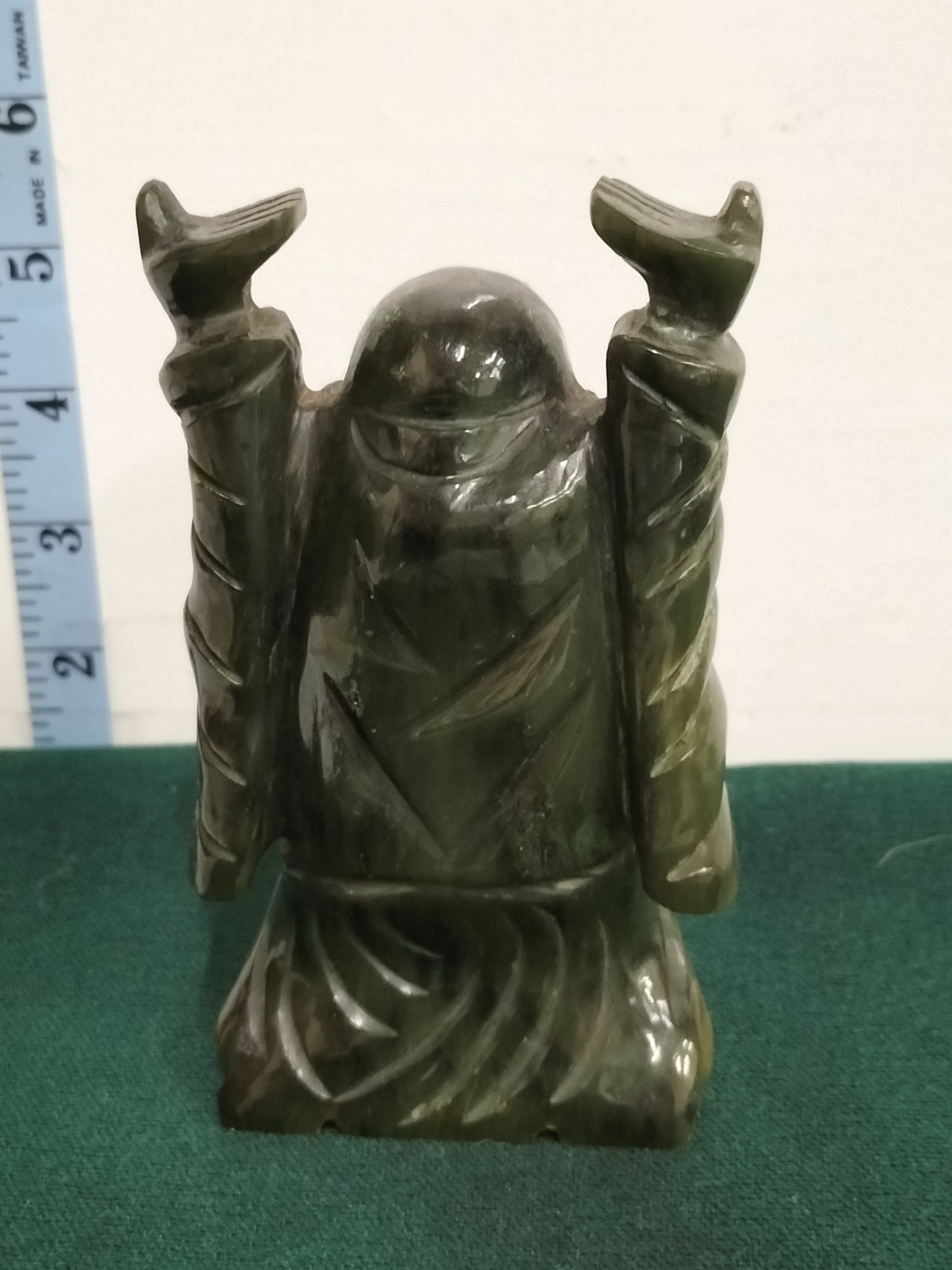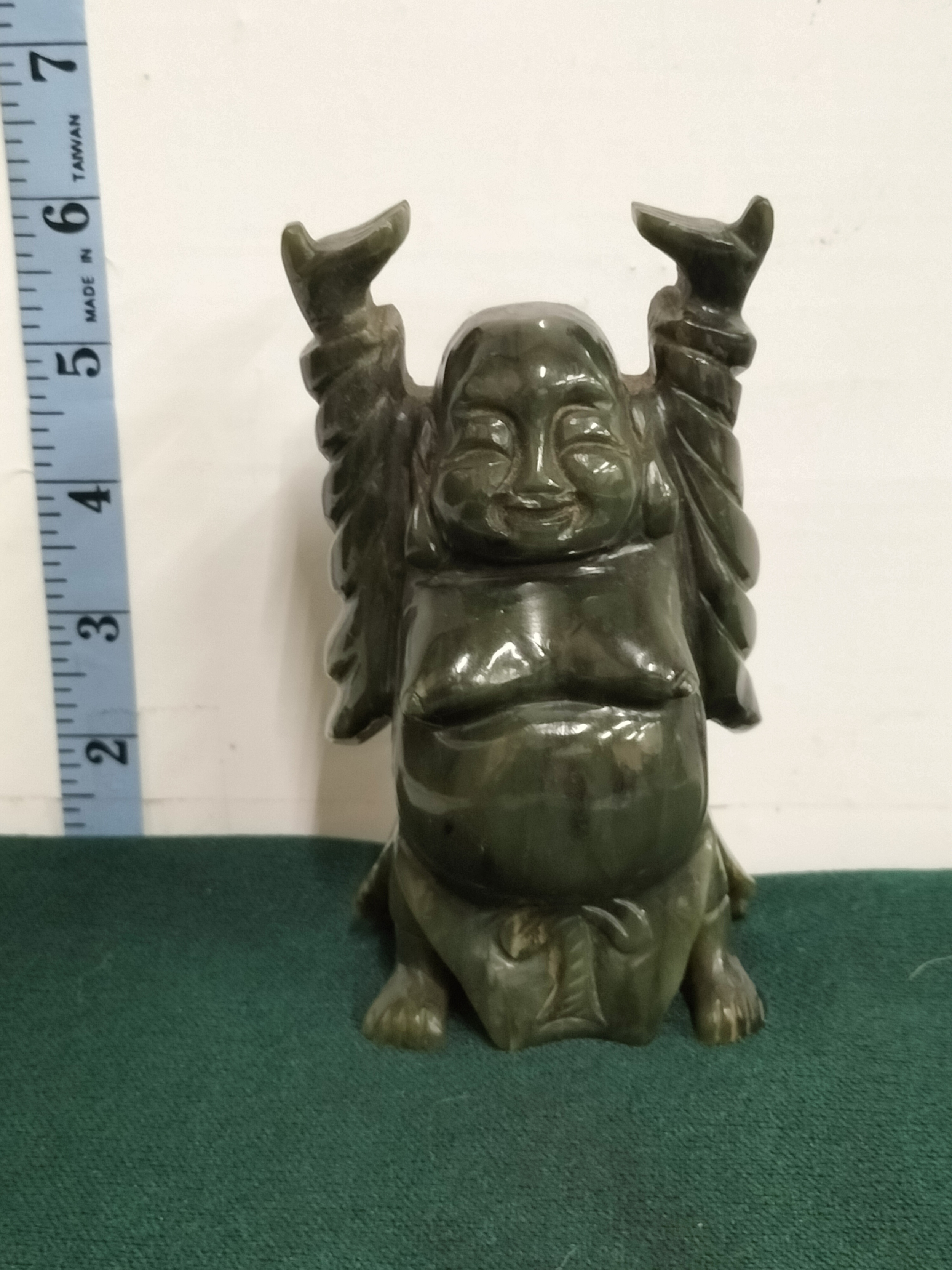 Early Green Jade Laughing Buddha Zen Monk. Depicts Budai a Chinese Symbol of Prosperity Statue.