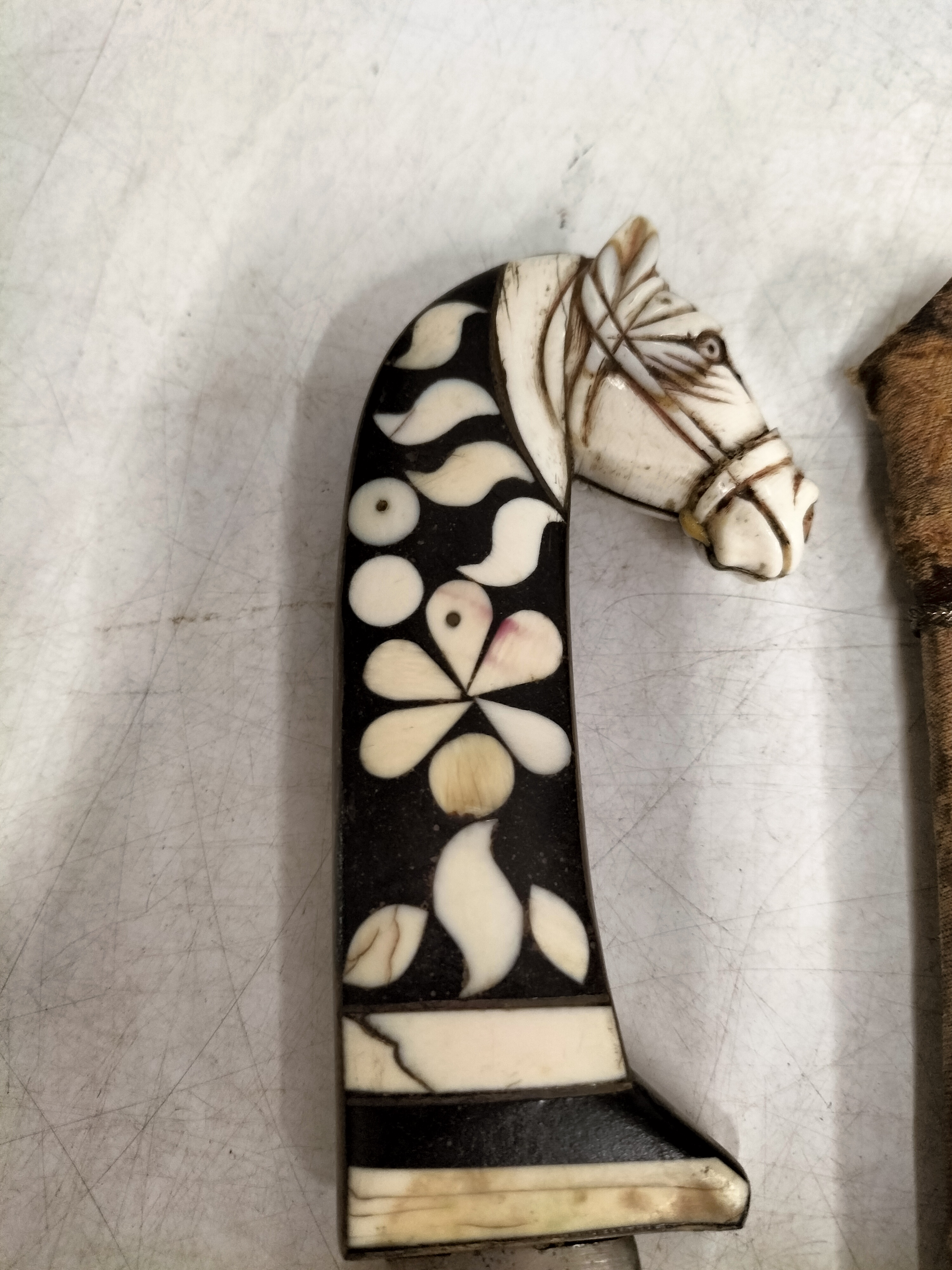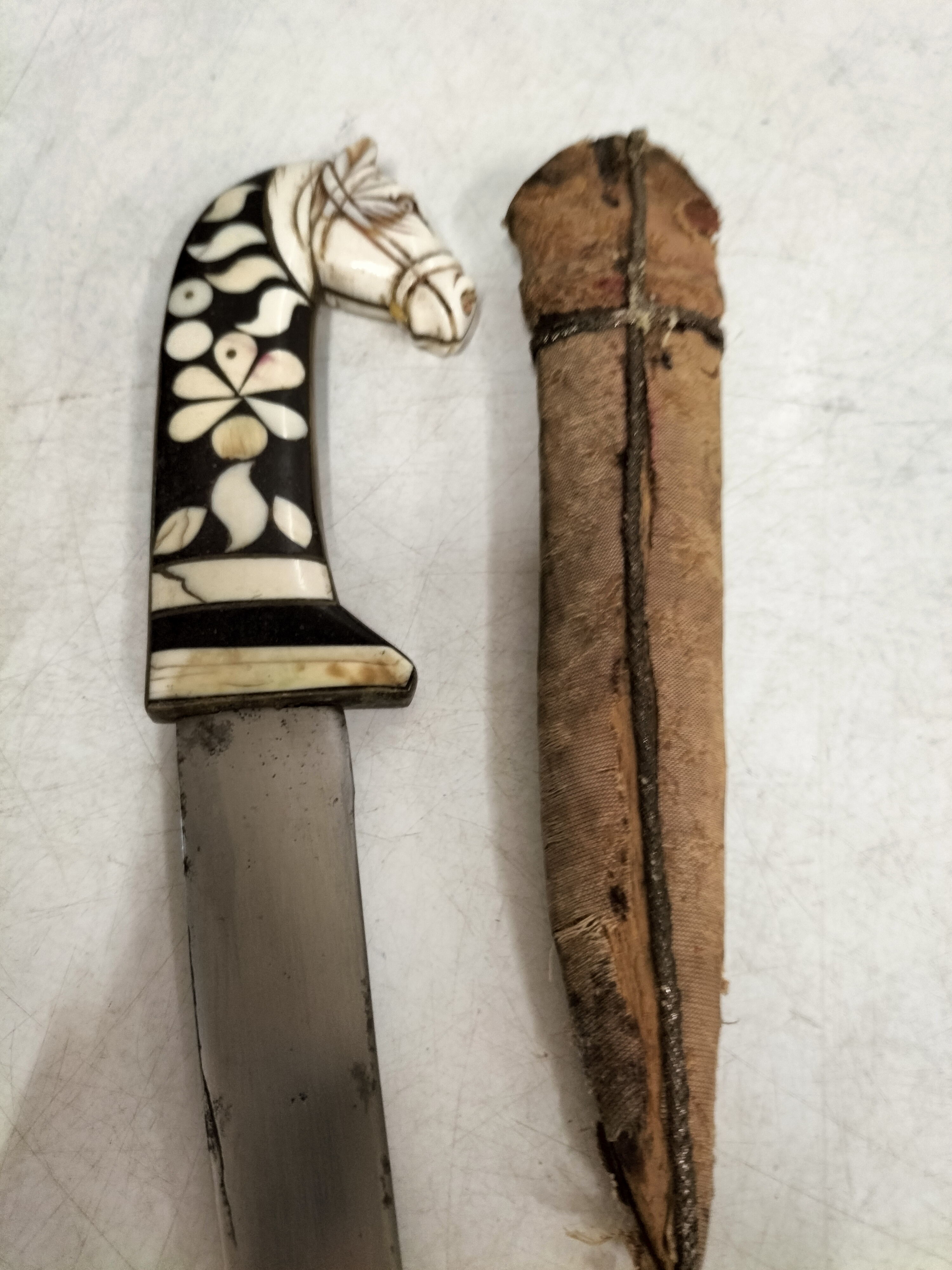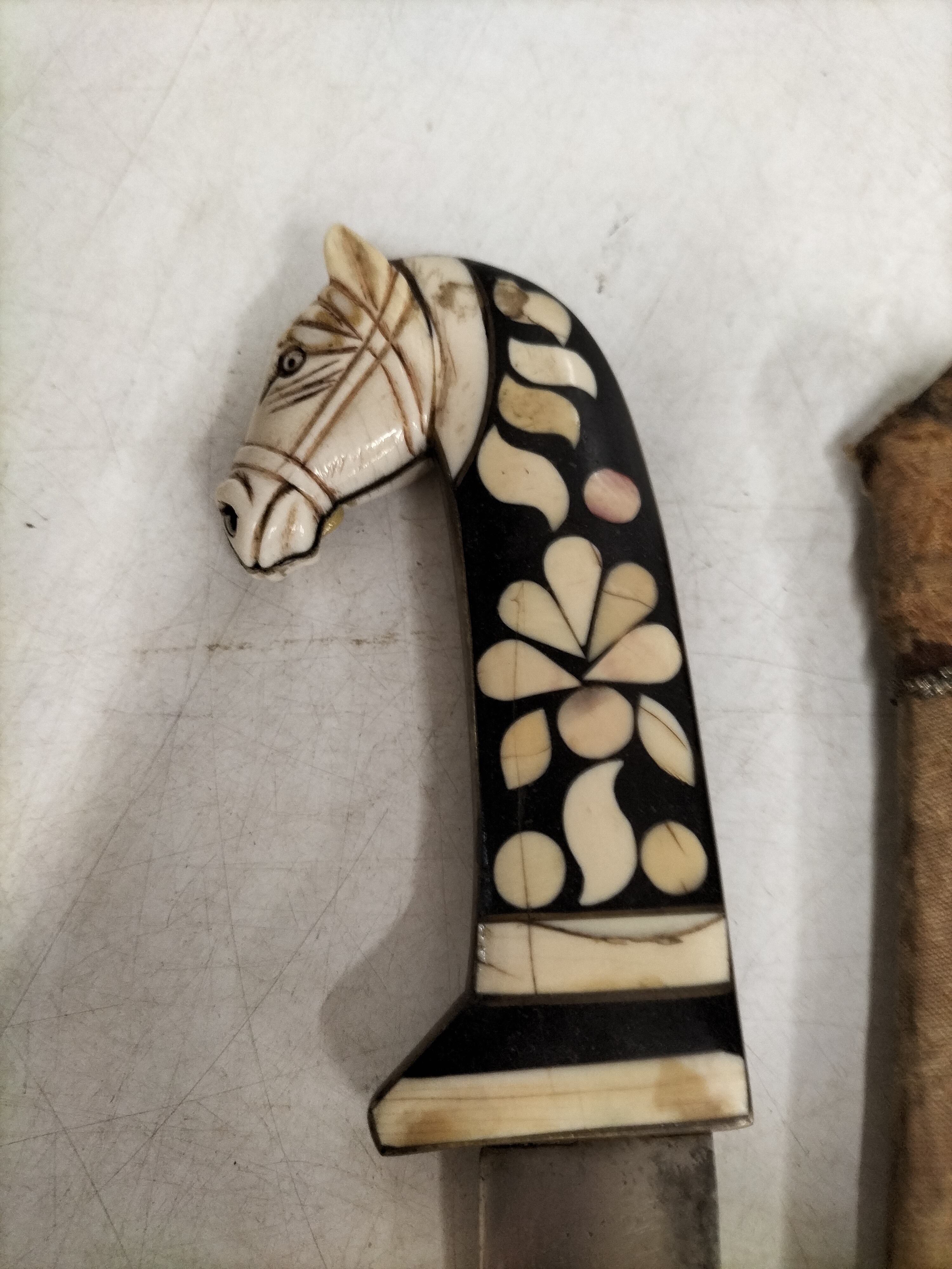 Vintage Hindu Dagger in Bone and Ebony, with Bone Marquetry 19c with Horse Pummel