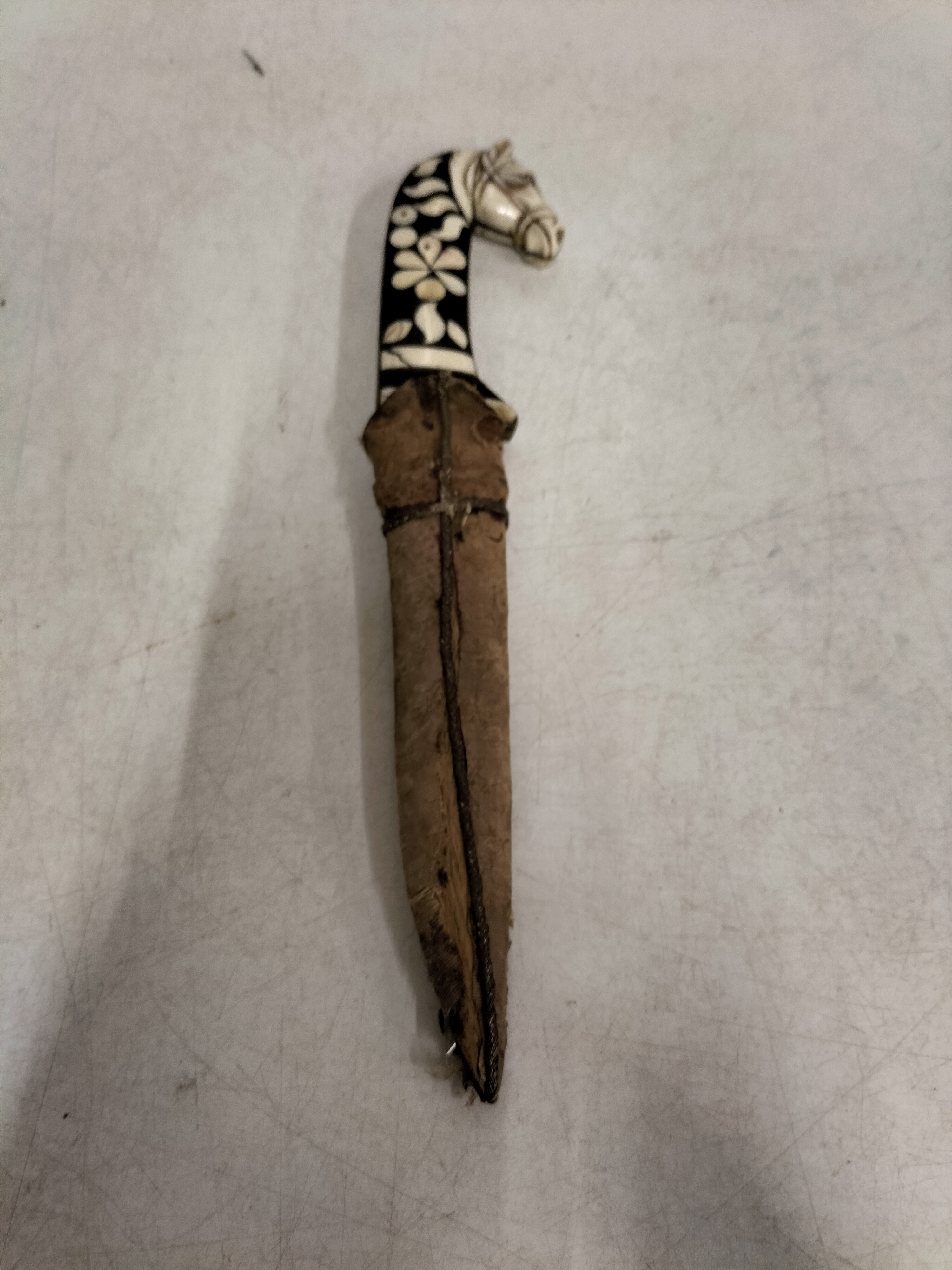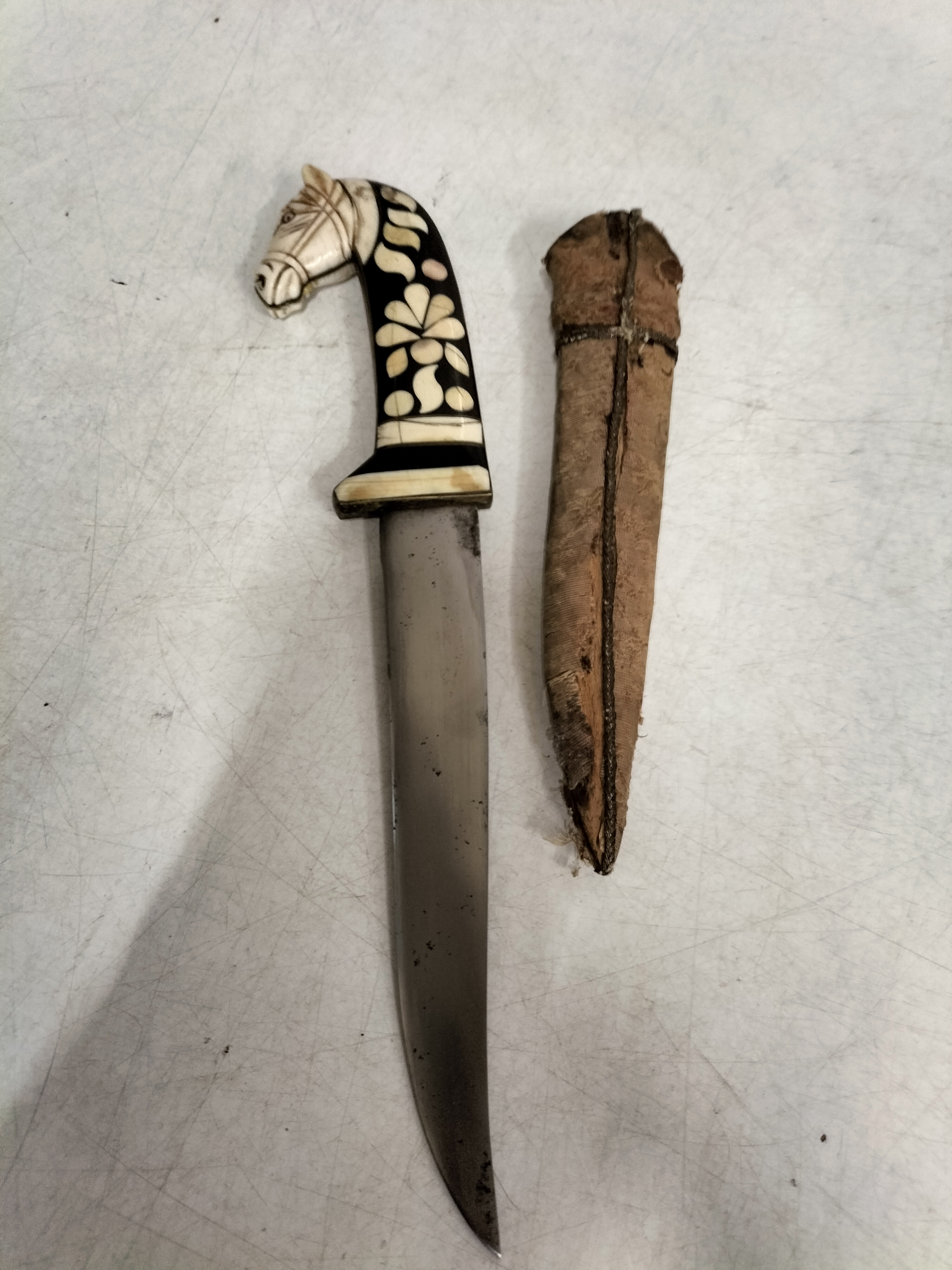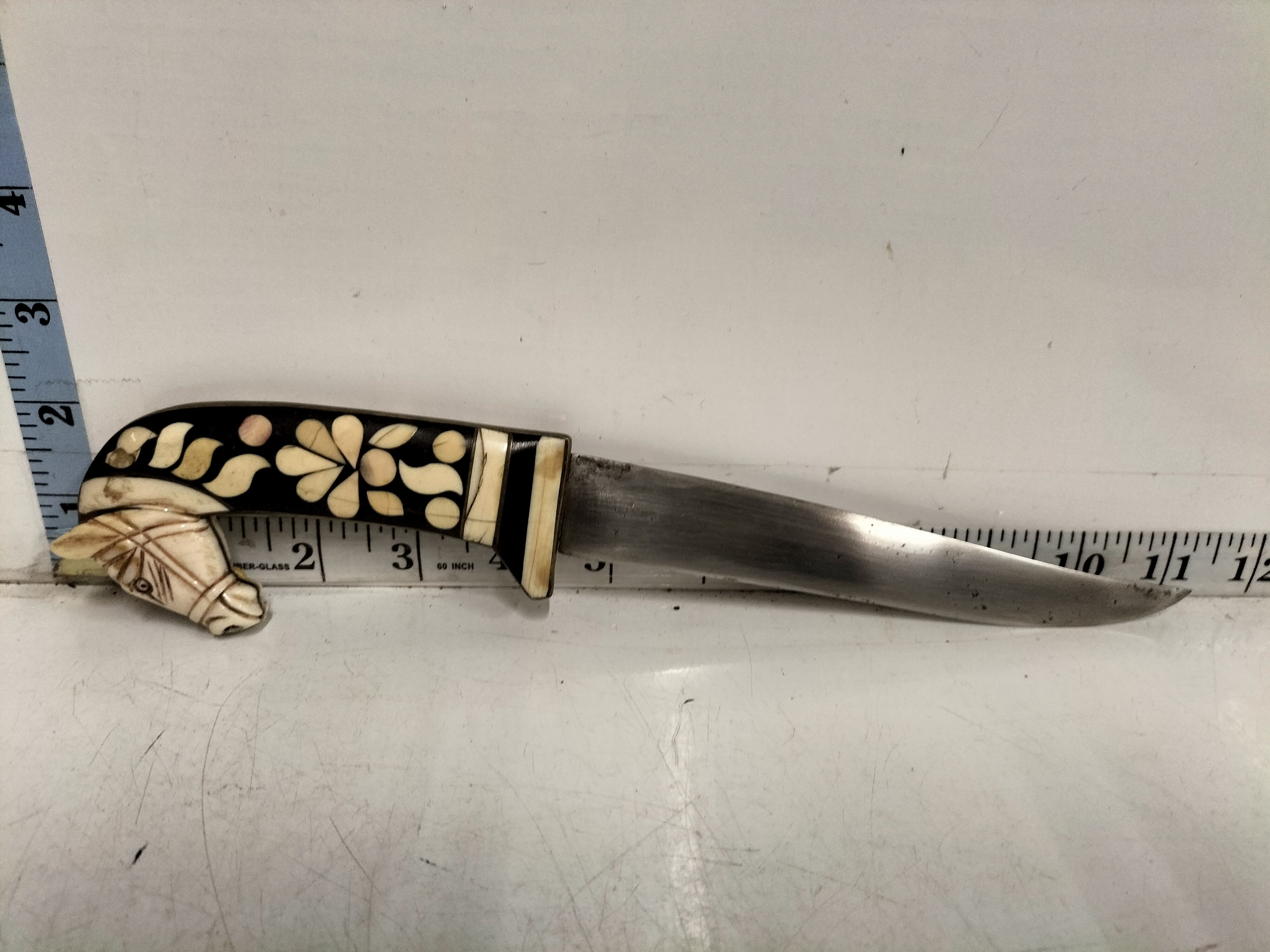Vintage Hindu Dagger in Bone and Ebony, with Bone Marquetry 19c with Horse Pummel