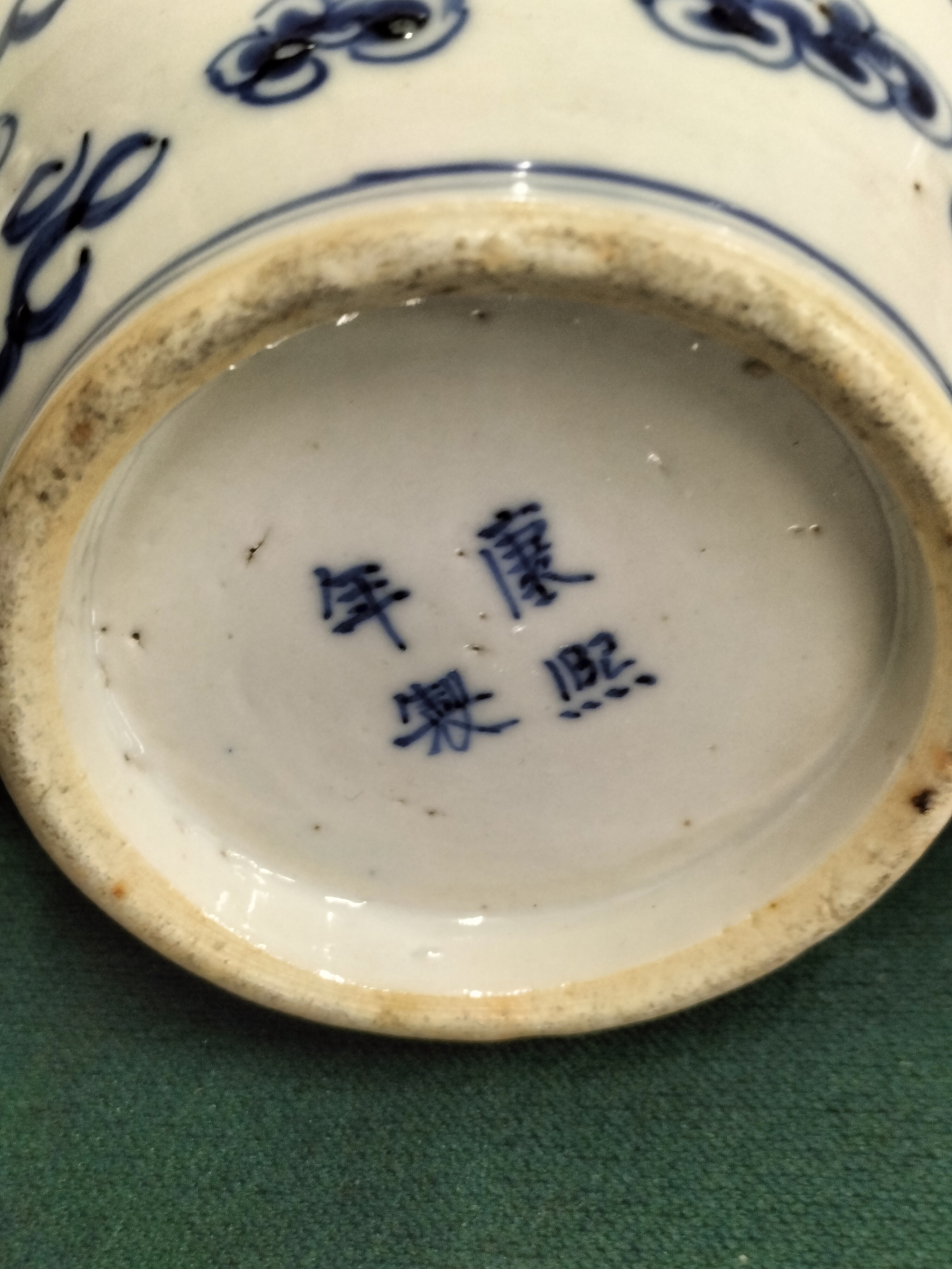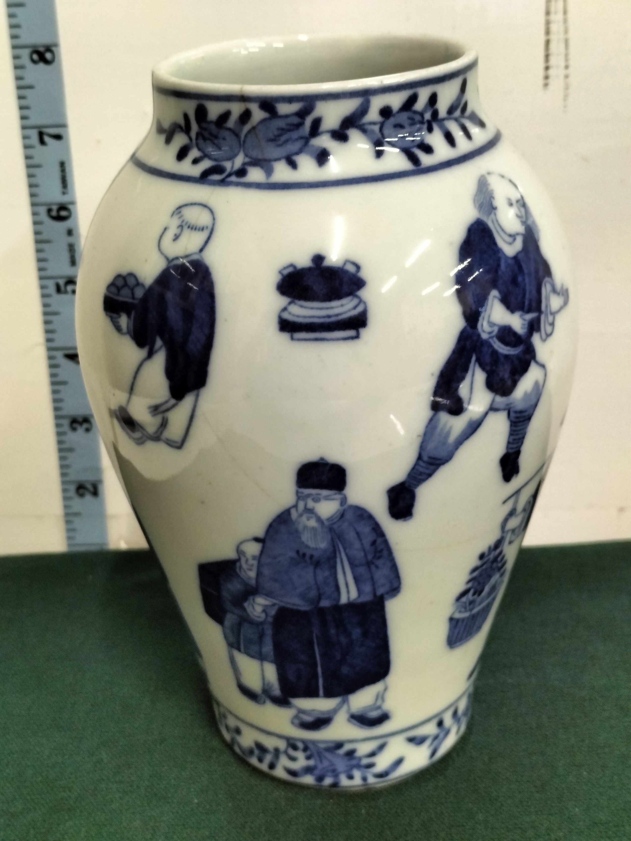 Very Early Blue and White Chinese Vase with Early Repair. Marks to Base