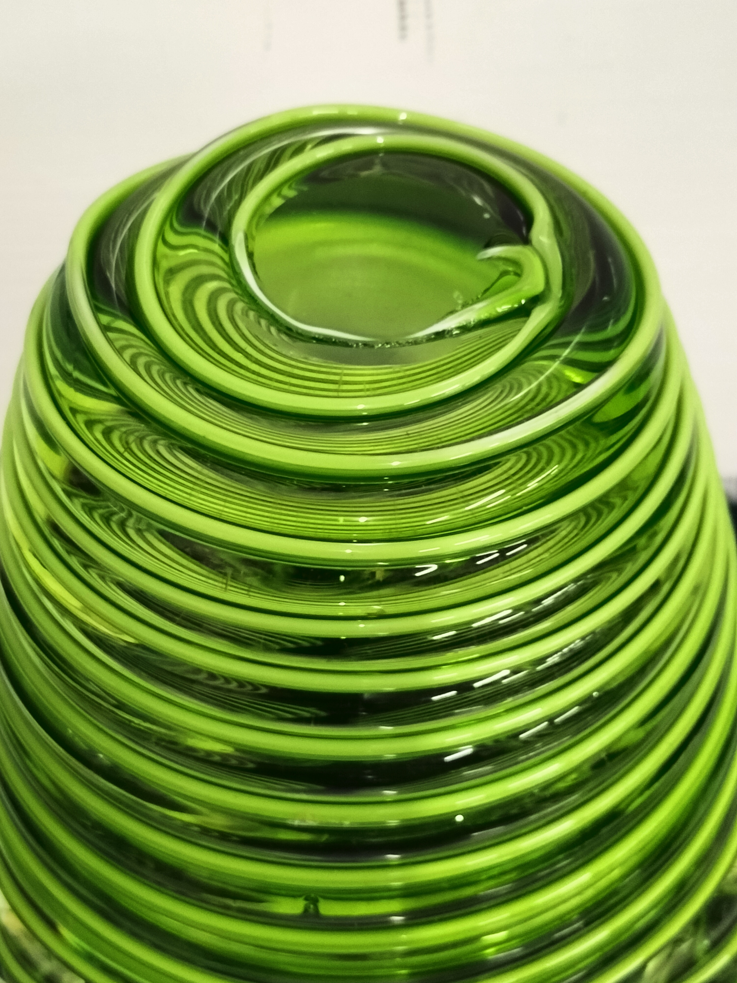 1960’s Green Folded stripped Glass Handkerchief Vase