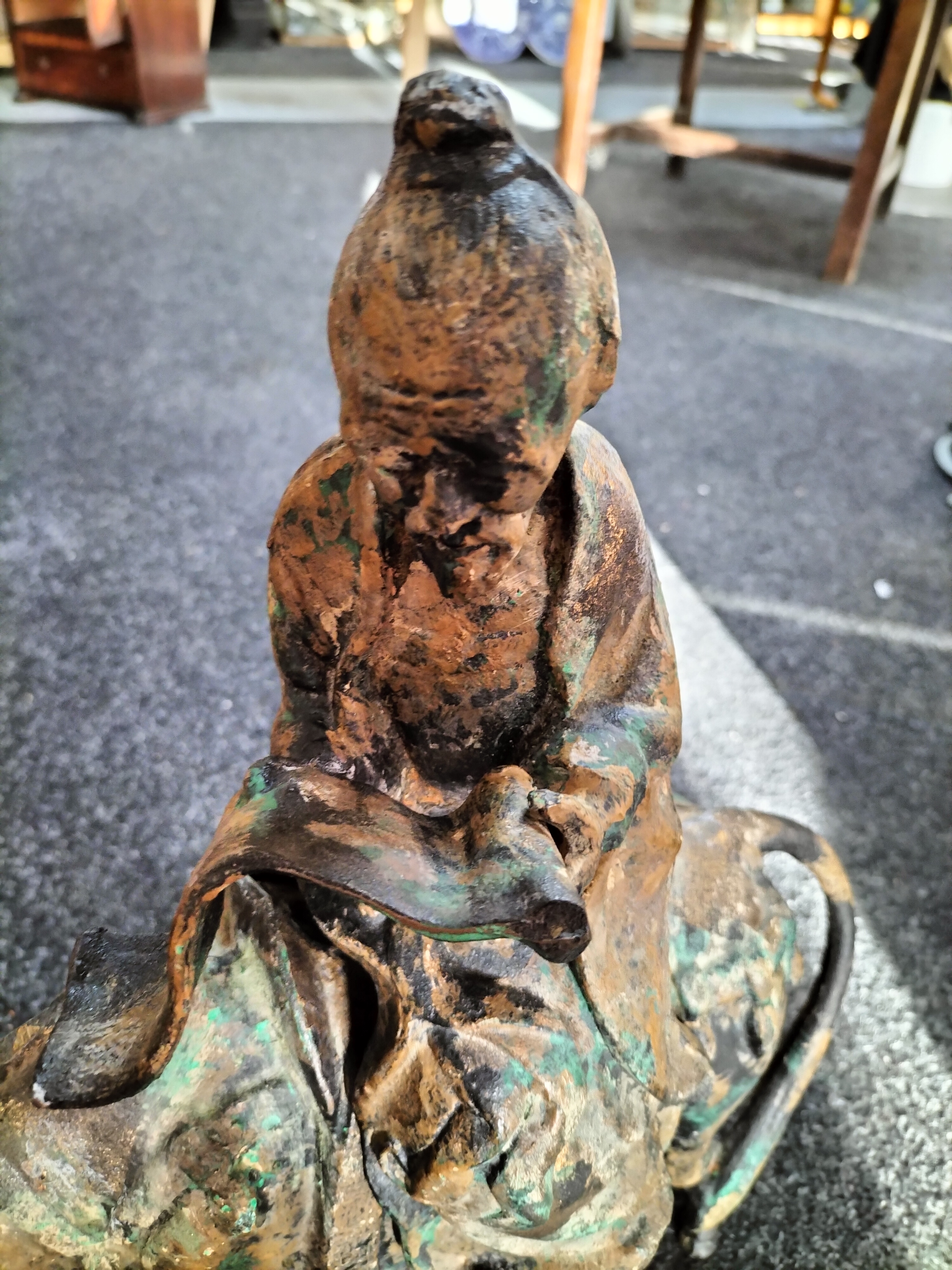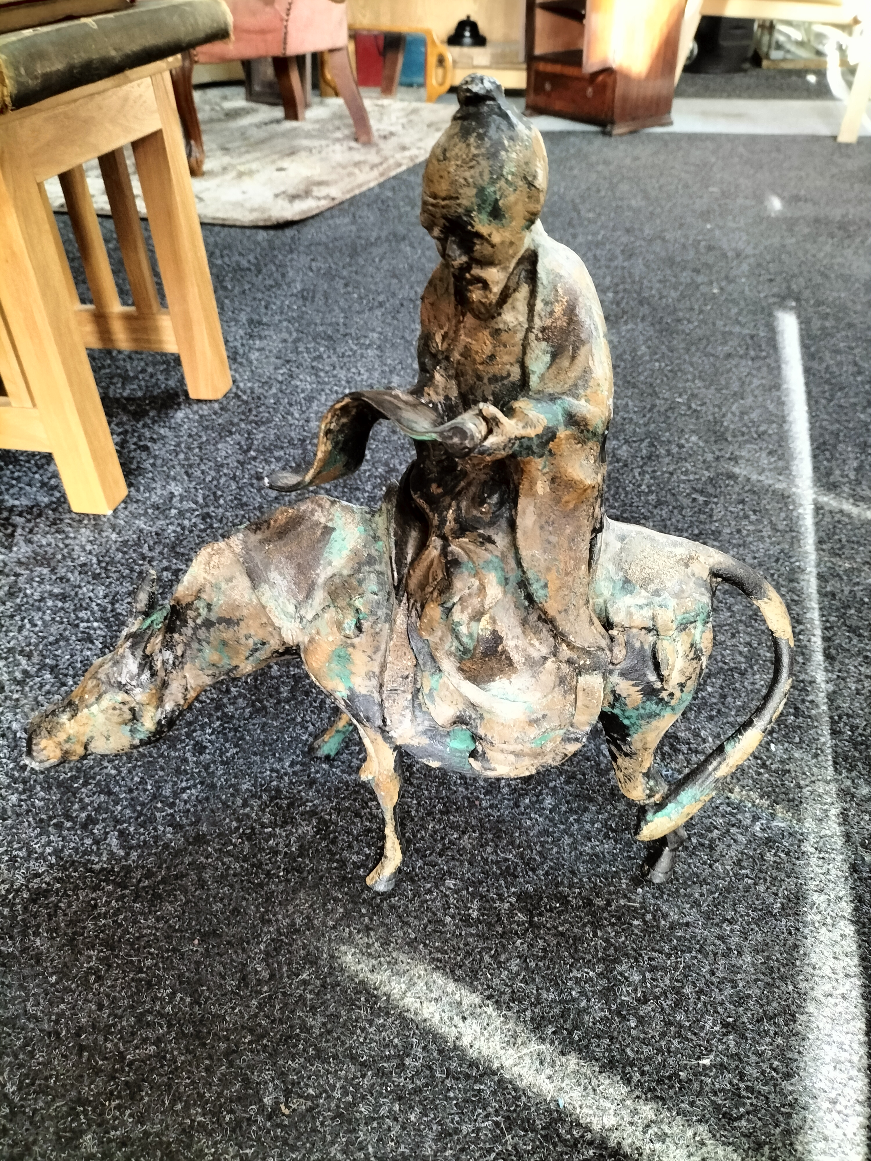 vintage Very Heavy Cast Statue depicting a figure riding a horse