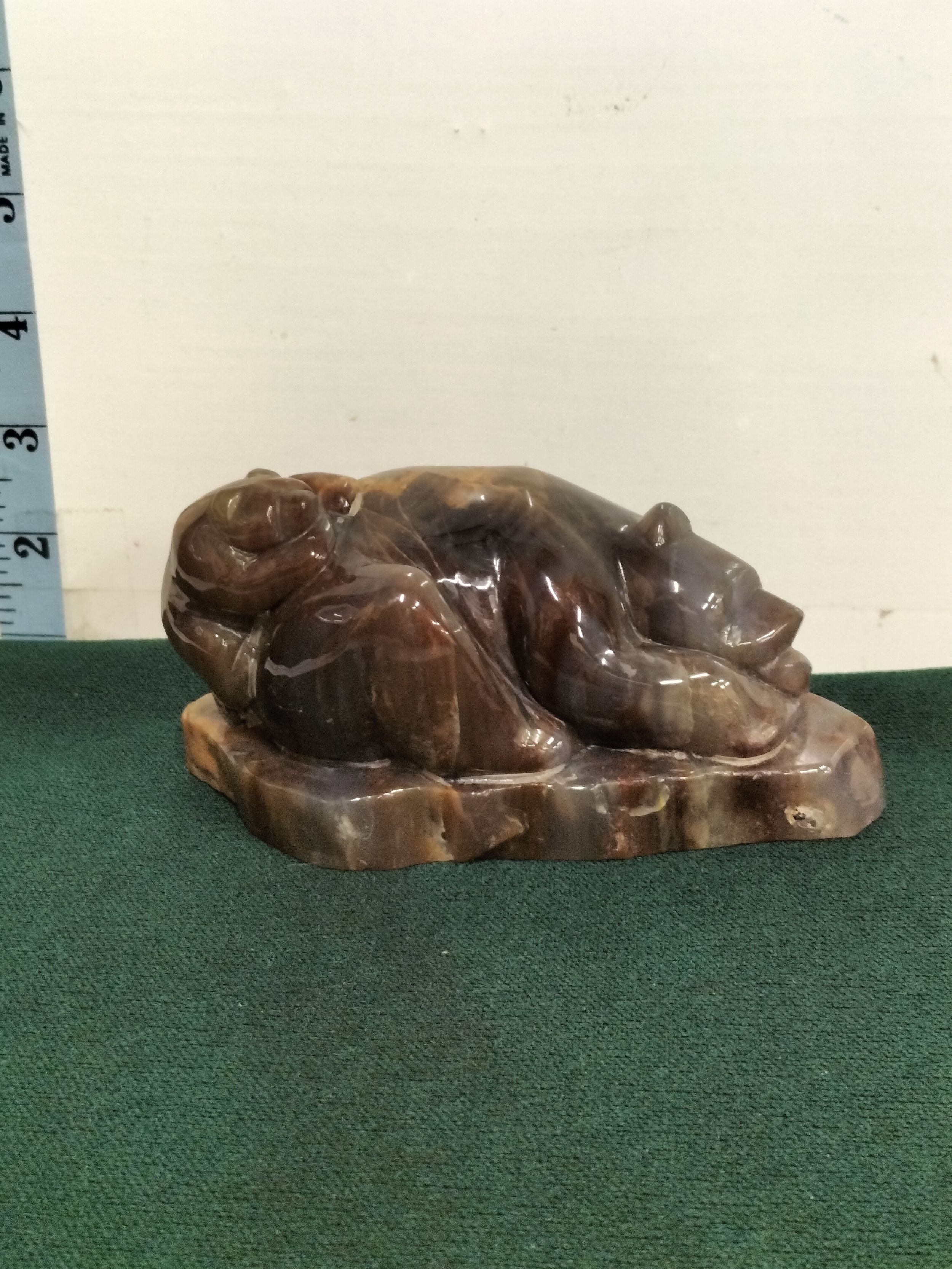 Carved Agate Crystal Bear with Cub, made from natural Agate Geode Stone with Polished finish. Signed