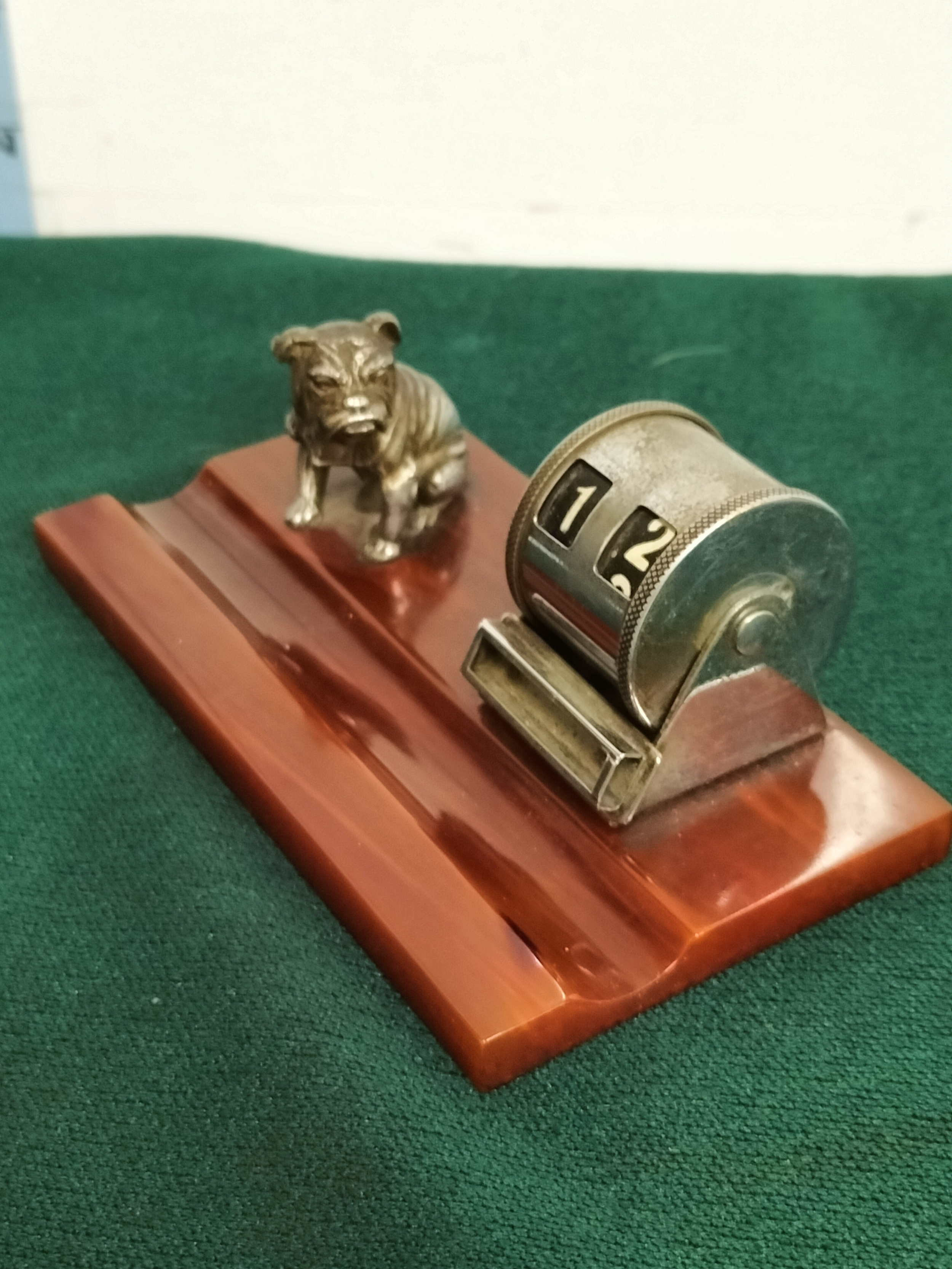 Art Deco Perpetual Desk Calendar with Bulldog on Base