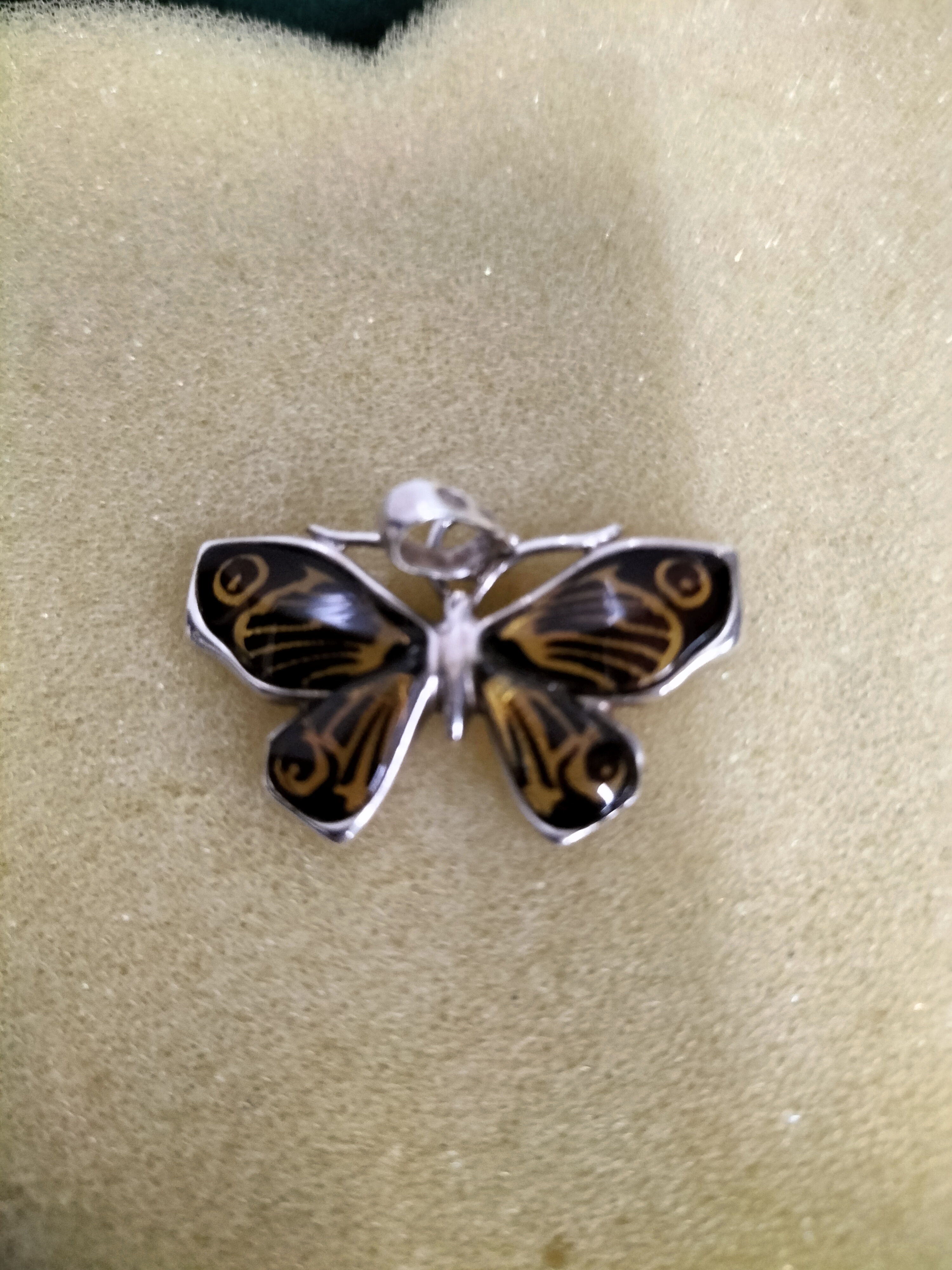 Silver and Amber Pendant in the shape of a butterfly