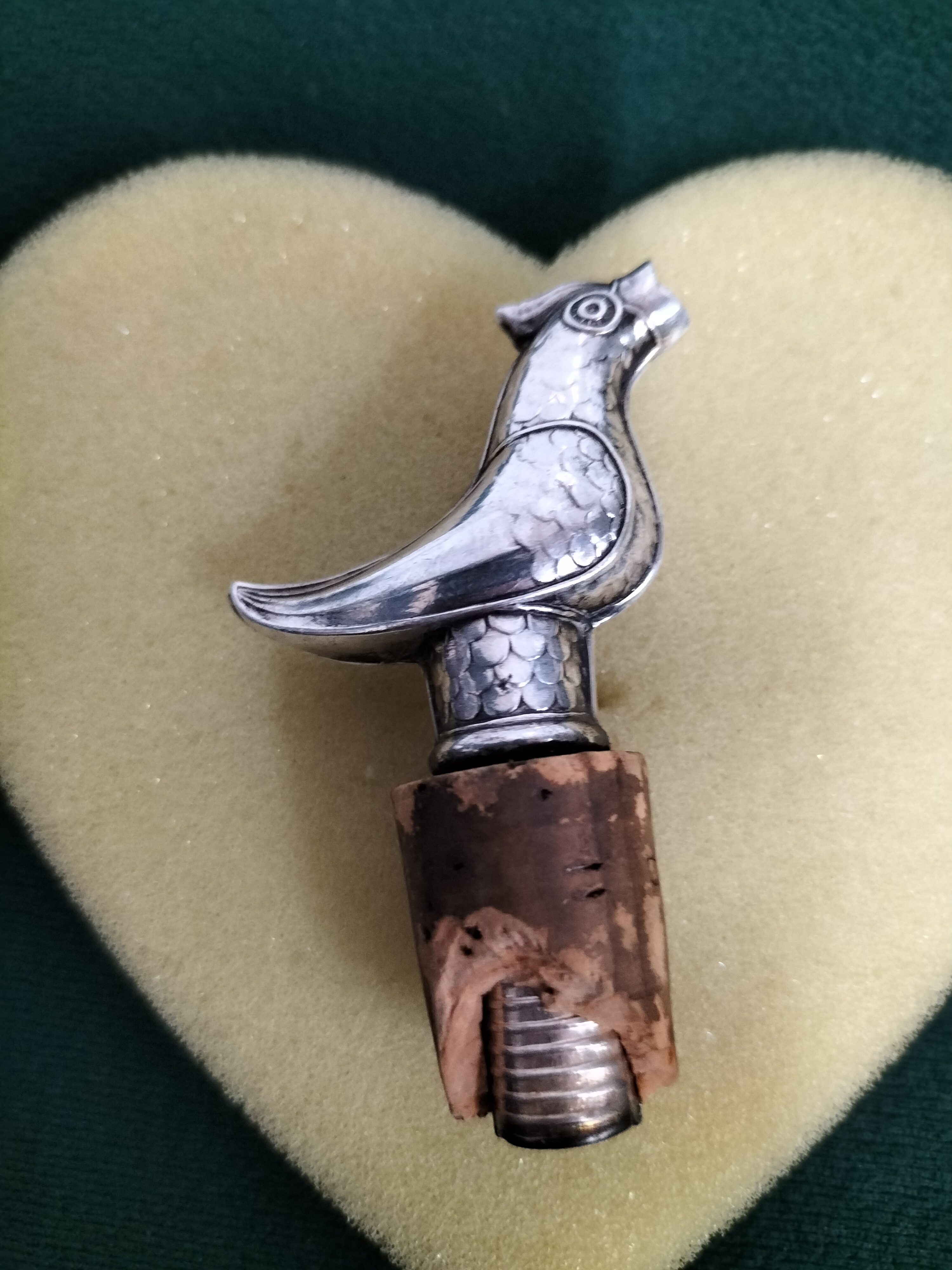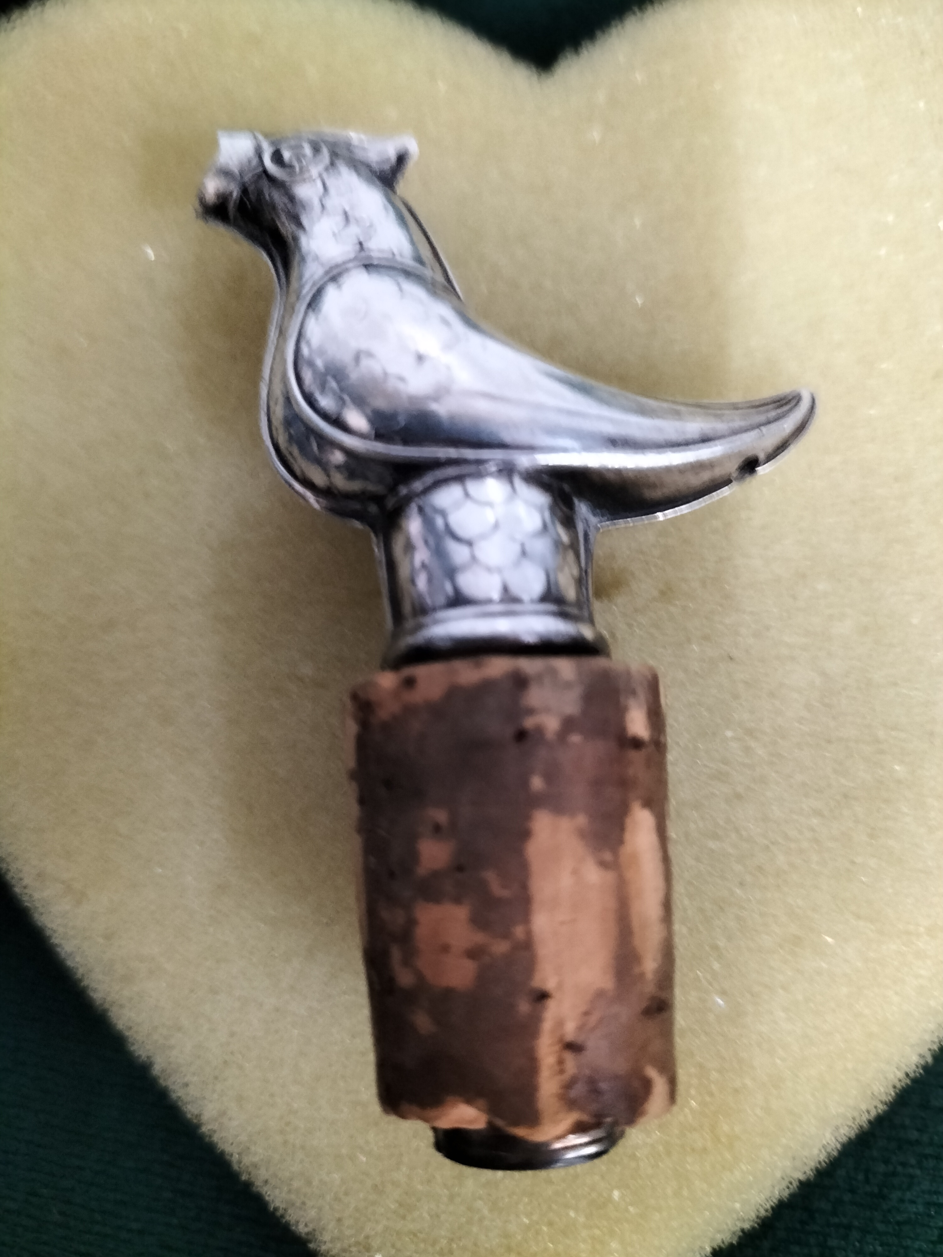 Silver Tone Duck Stopper Bottle Pourer with Cork base